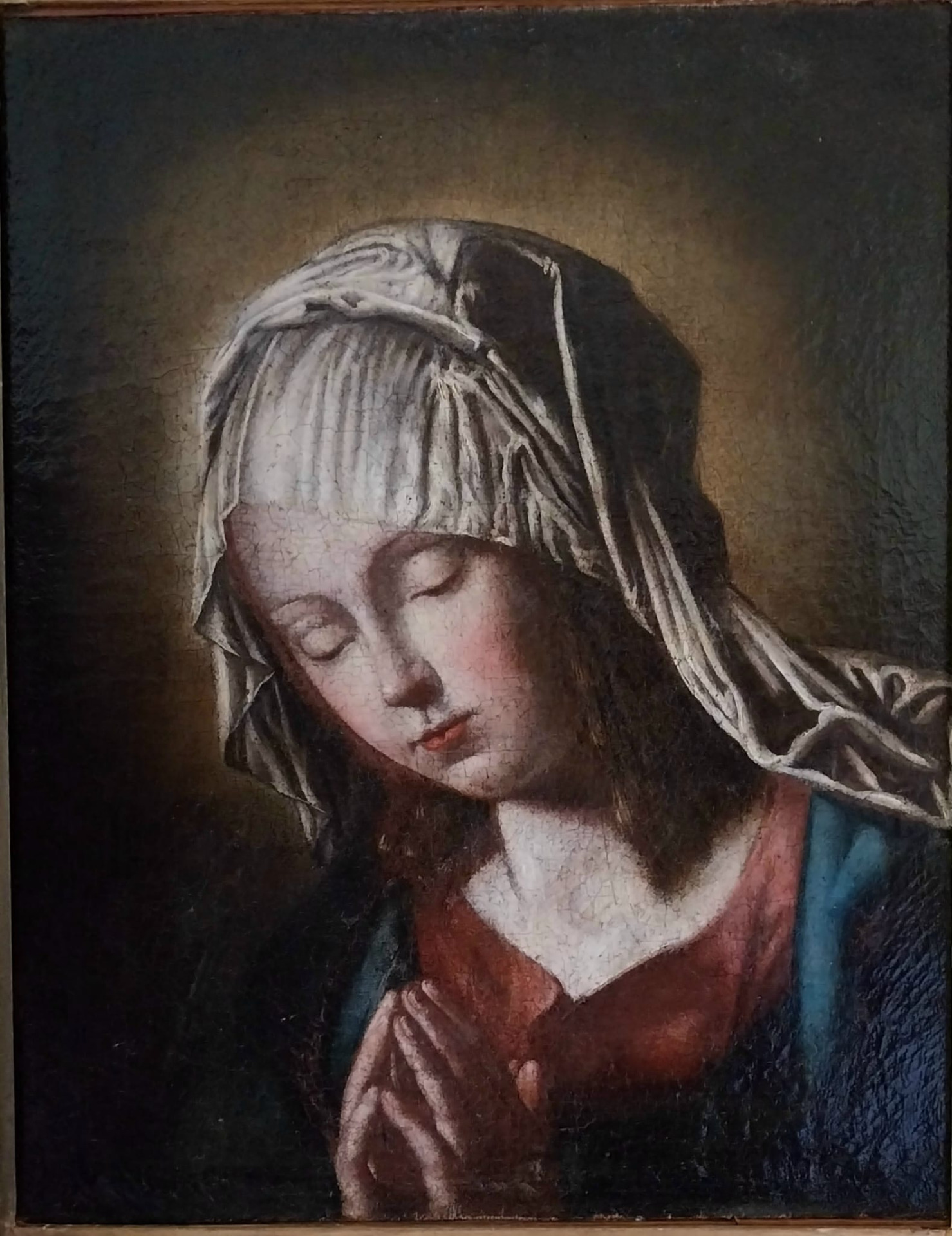 Madonna in preghiera, ambito di Giovan Battista Salvi detto il Sassoferrato, XVII secolo, olio su tela, misure 50x39.5 cm, con cornice del XIX secolo 79x66 cm.