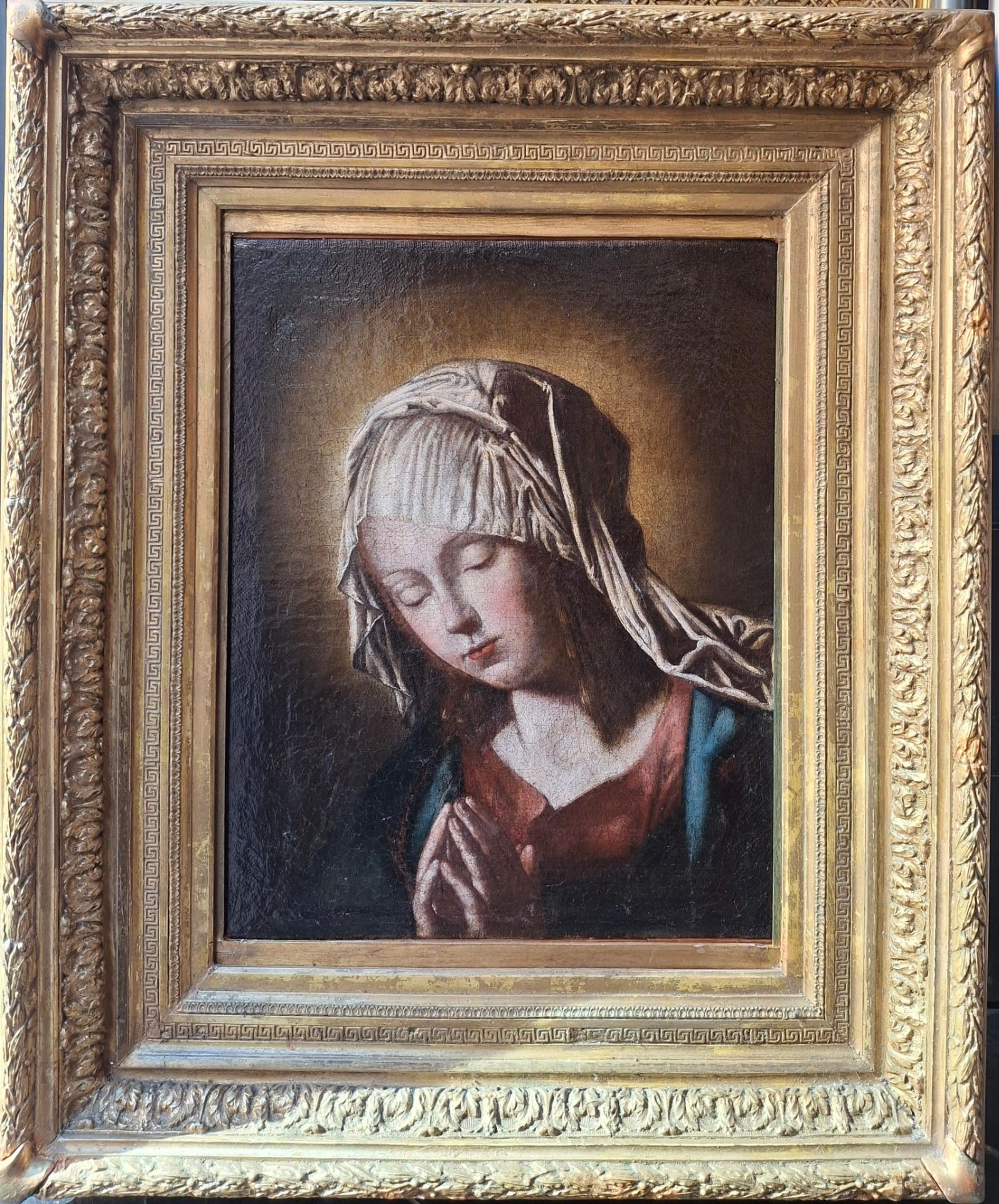 Madonna in preghiera, ambito di Giovan Battista Salvi detto il Sassoferrato, XVII secolo, olio su tela, misure 50x39.5 cm, con cornice del XIX secolo 79x66 cm.