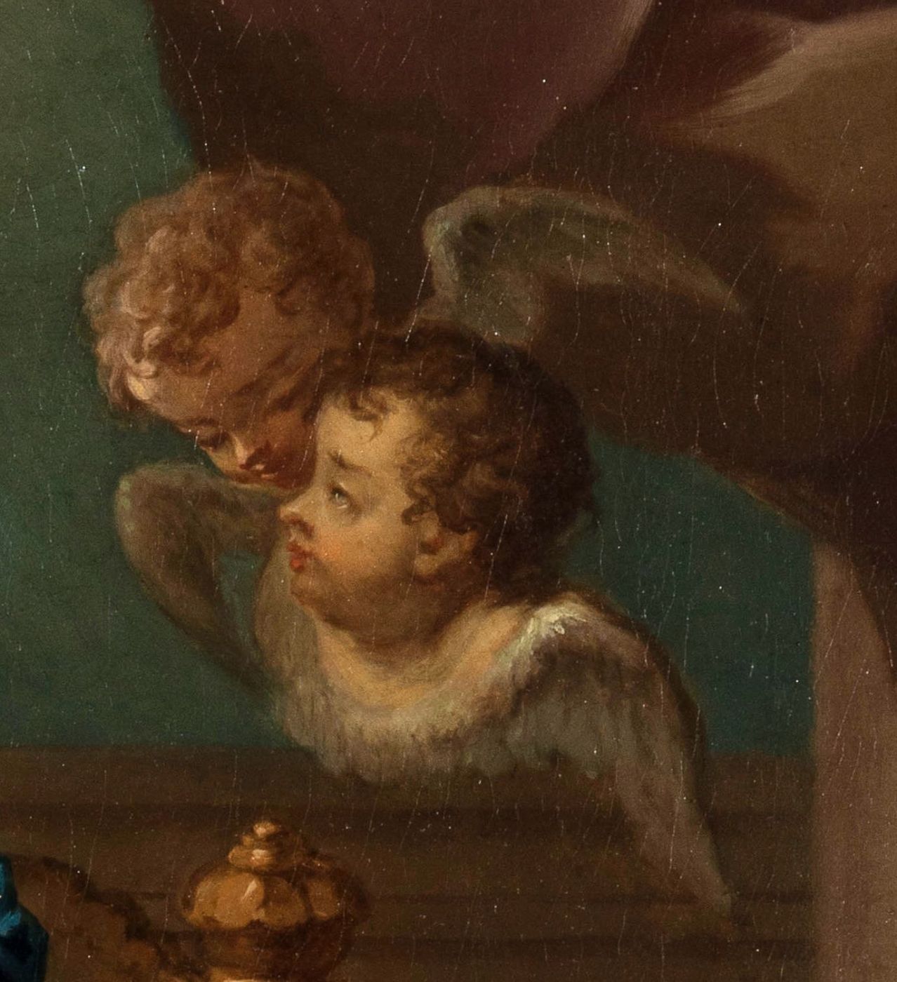 Scuola Romana del XVII secolo, Santa Cecilia con angeli in concerto, dipinto olio su tela