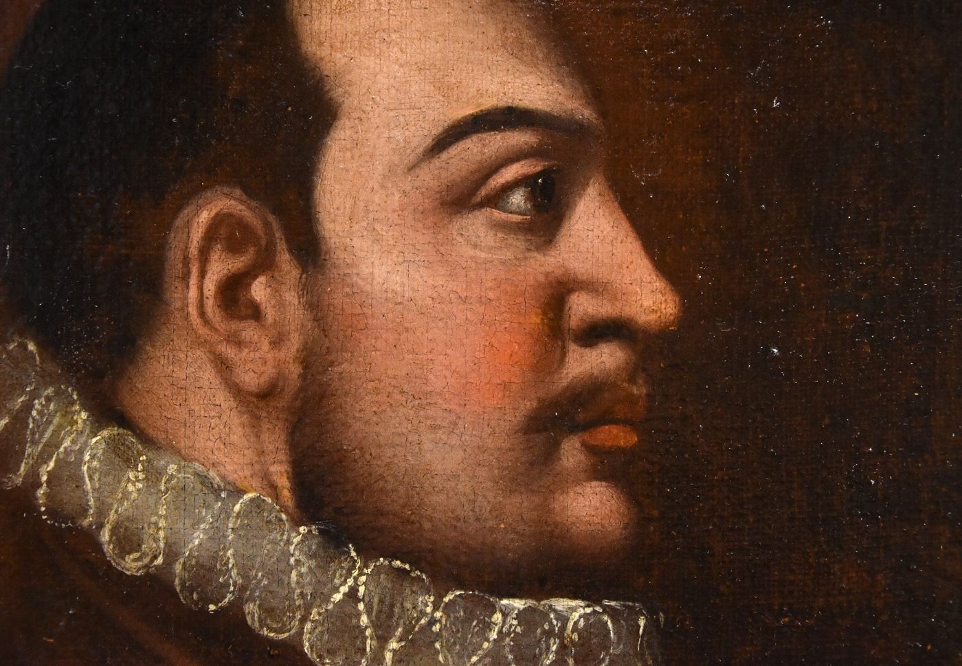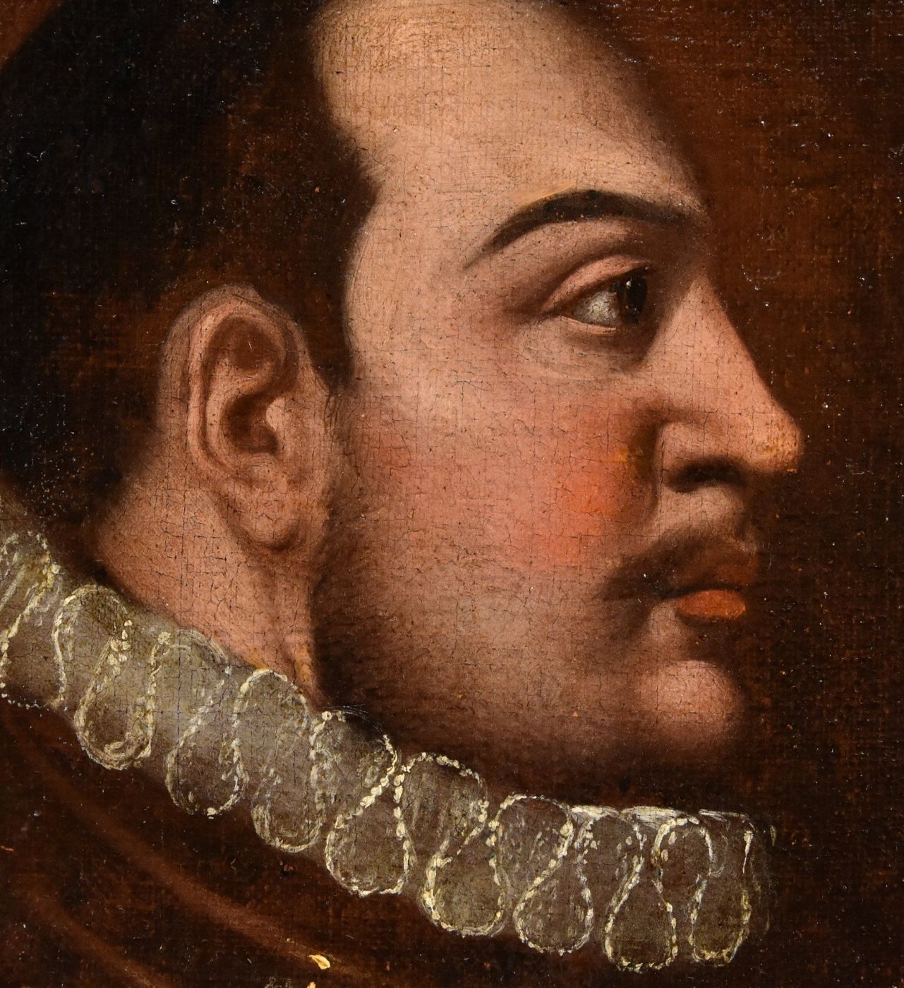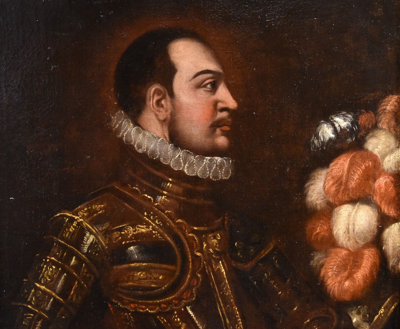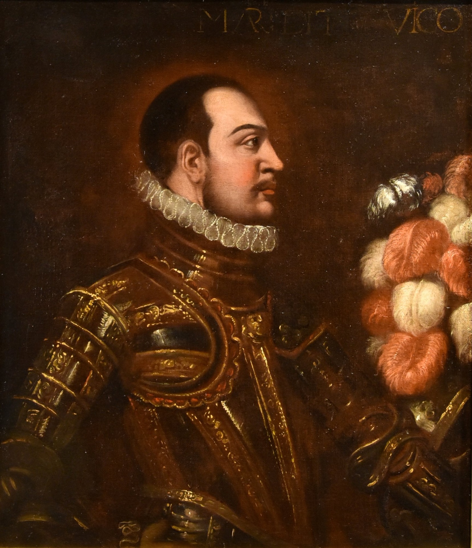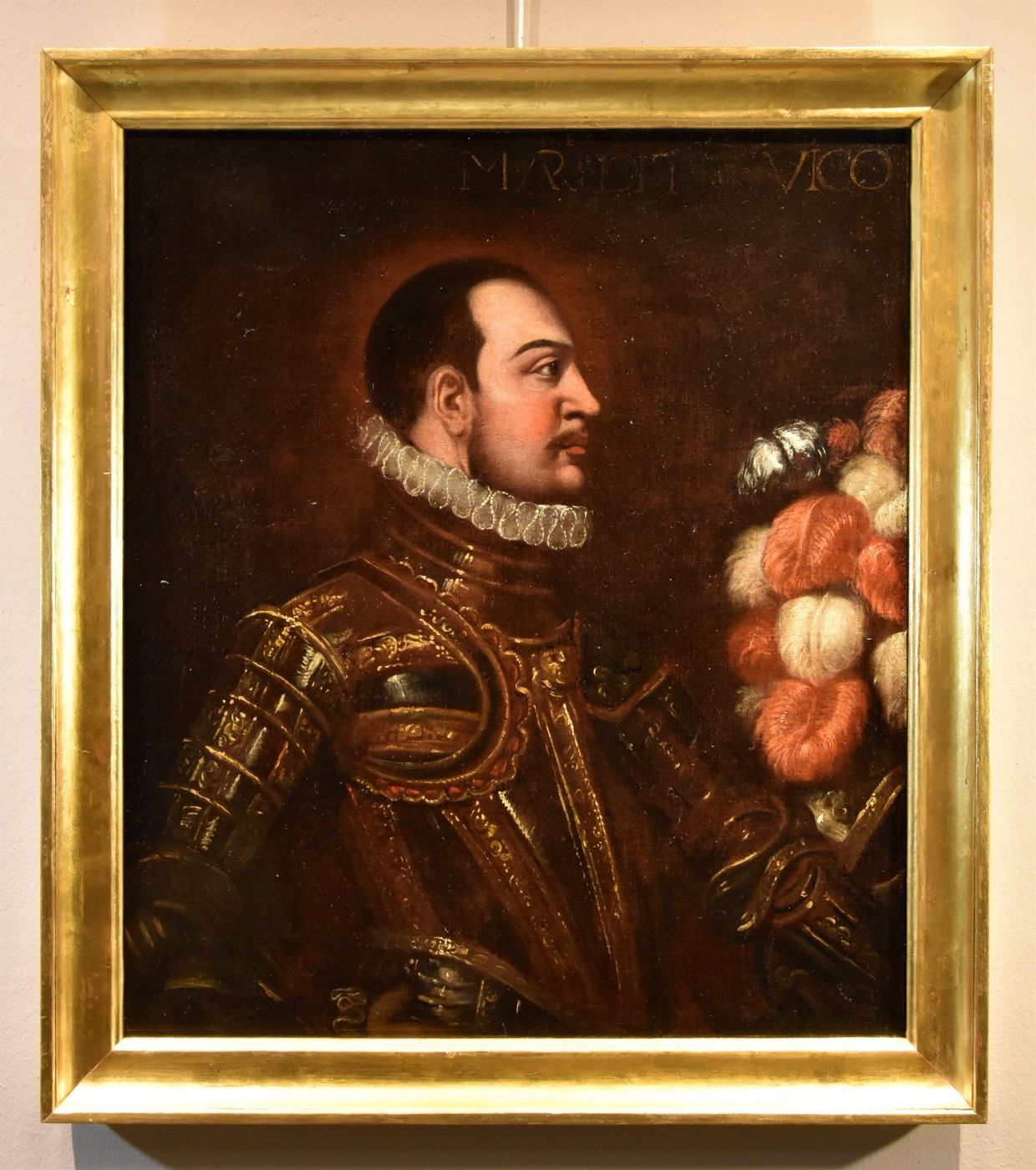 Un affascinante gentiluomo con la sua armatura, immortalato in atteggiamento autoritario e fiero, è il soggetto del nostro ritratto, di buona qualità e realizzato da un autore appartenente alla cultura nord italiana, veneta, degli inizi del Seicento.