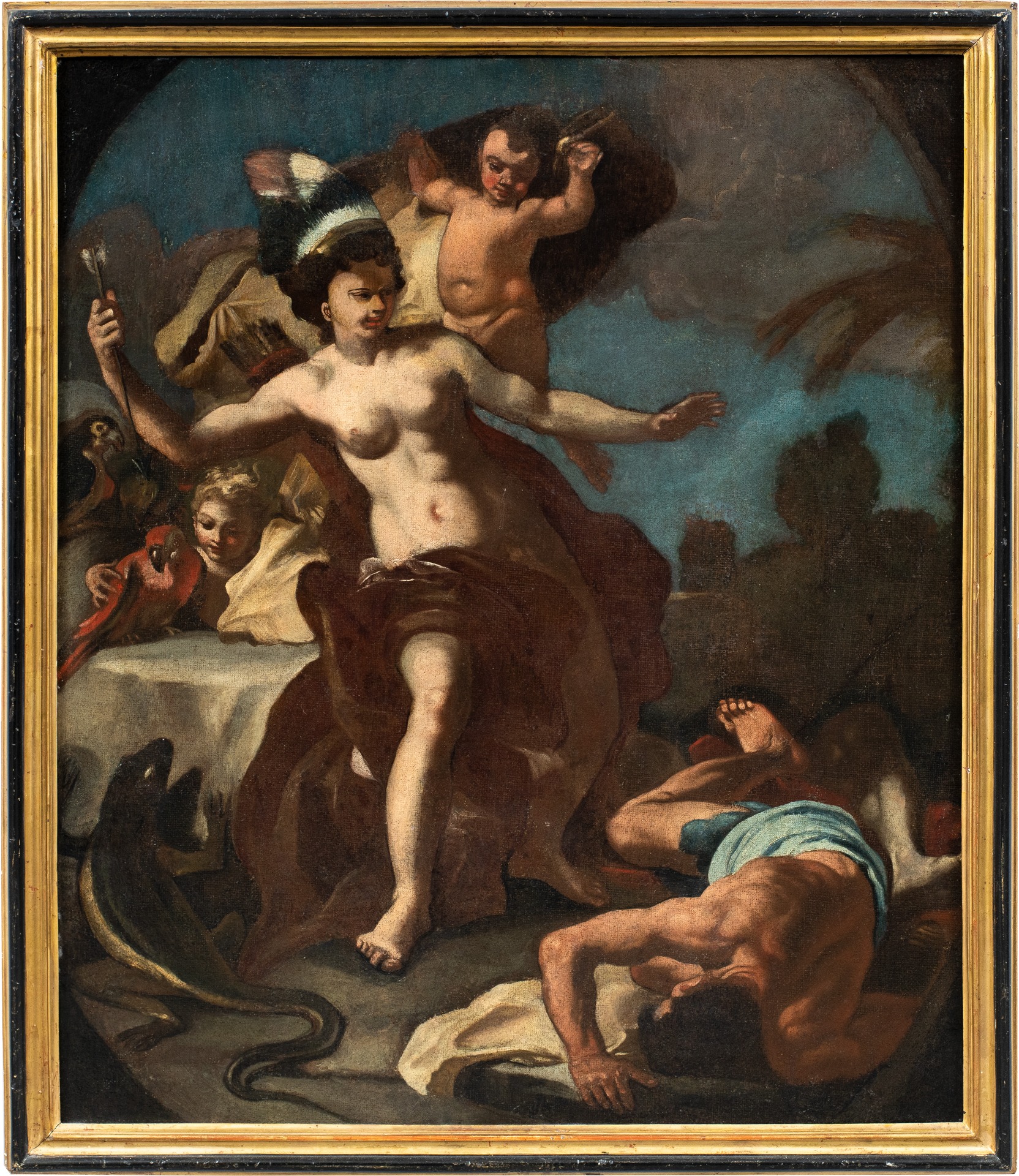 Francesco Solimena (Canale di Serino 1657 - Barra 1747) bottega di - Allegoria dell’America.
