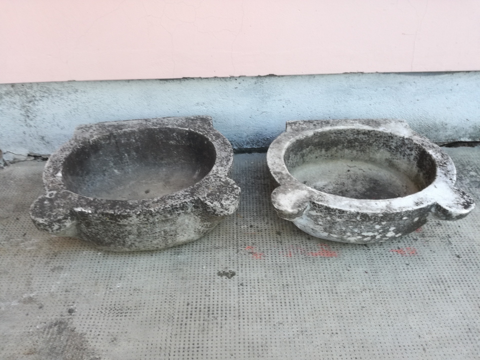 Coppia di acquasantiere antiche con orecchie.Mi: H cm 20 P cm 40 L. Cm 50