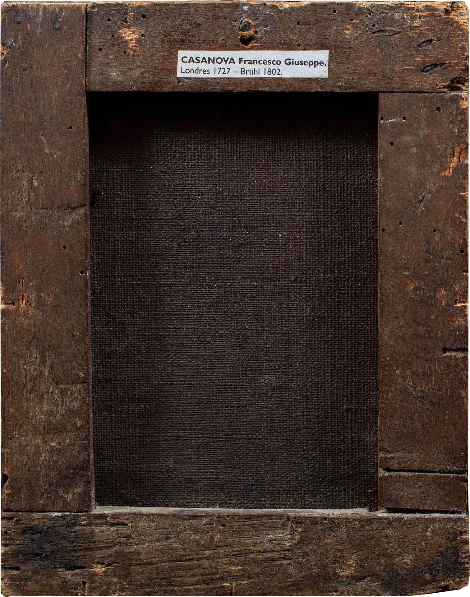 Francesco Casanova (Londra 1727 – Mödling 1803) attribuito a - Scena di battaglia a cavallo. 22.5 x 17.5 cm. Olio su tela, senza cornice. - Reca etichetta: “CASANOVA Francesco Giuseppe Londres 1727 - Bruhl 1802”. Condition report: Tela originale. Buono stato di conservazione della superficie...