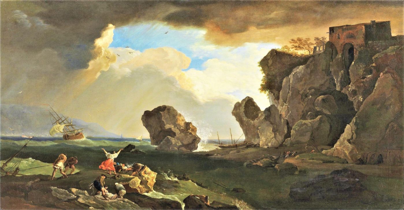 Lo splendido dipinto, di grande fascino e di effetto immediato e spettacolare, descrive una movimentata scena di naufragio illuminata da uno squarcio di cielo azzurro aperto tra le nubi fosche dopo la tempesta.