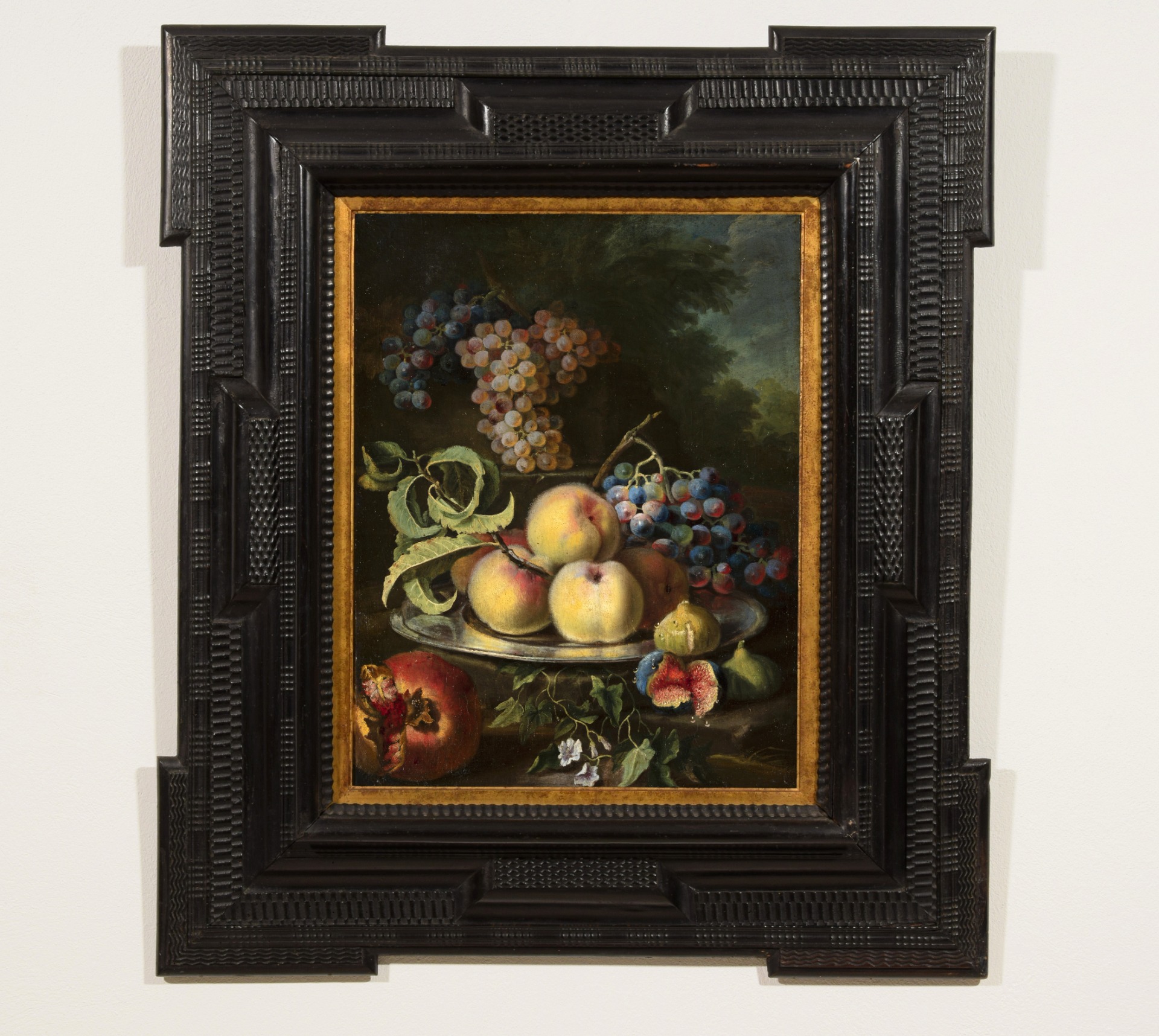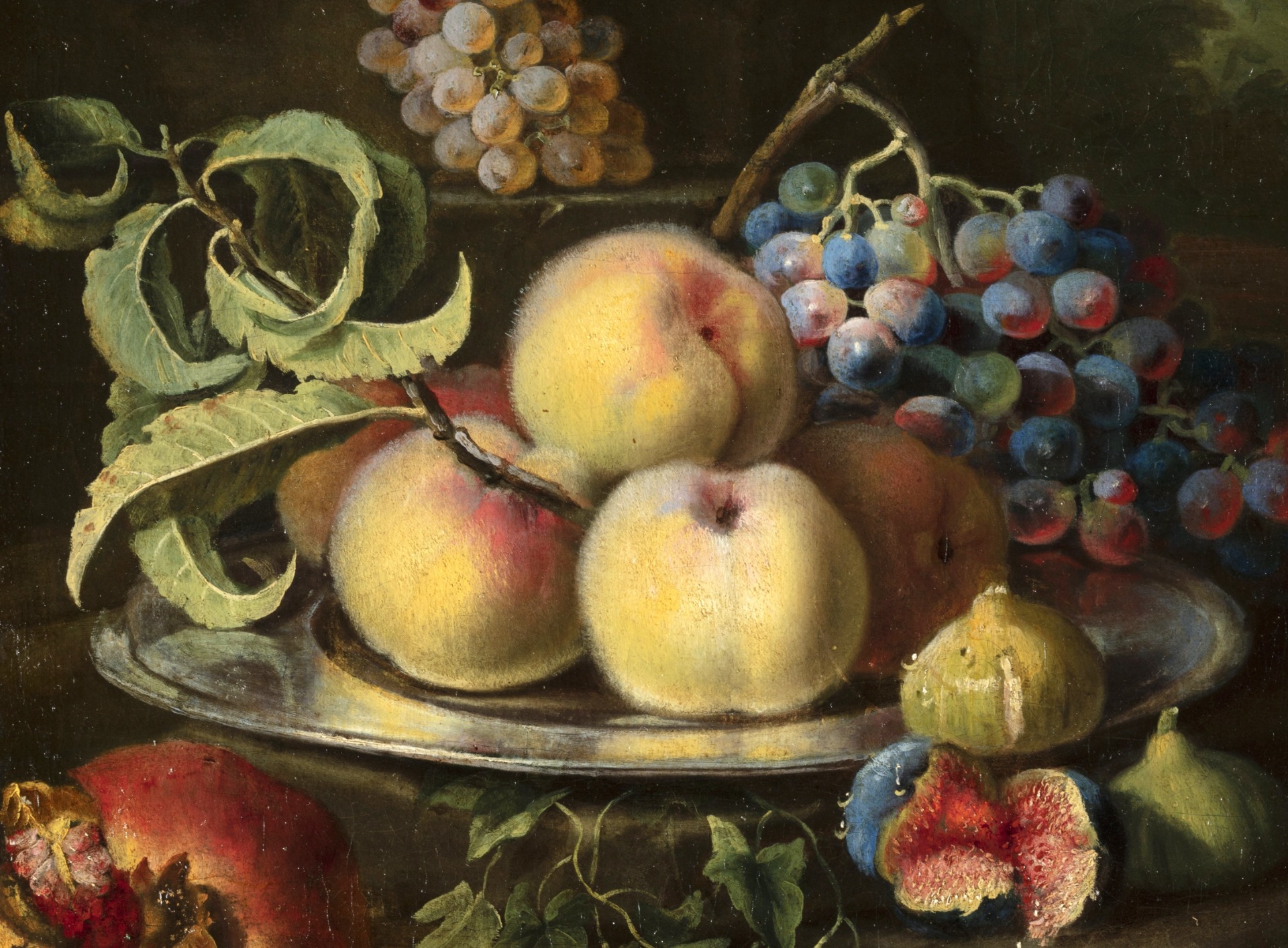 Natura morta con pesche, uva, fichi e melagrana