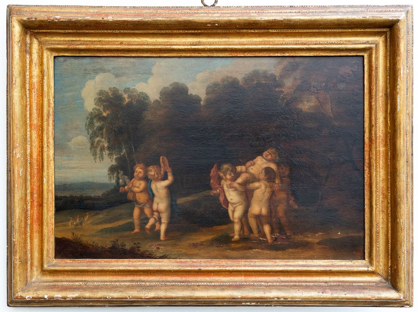 Olio su tavola Dimensioni: 42 × 29 cm (tavola) – 55 × 40 cm (con cornice) Epoca: 1700 Provenienza: Collezione privata, Parma Descrizione: Affascinante dipinto raffigurante un baccanale di putti, eseguito su tavola e riconducibile alla tradizione fiamminga, probabilmente ispirato a un modello di...