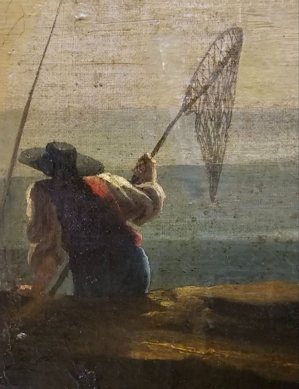 Di grande qualita' questo dipinto rappresentante paesaggio con pescatori da ricondurre alla mano di Charles Grenier De Marseille (1700-1782)