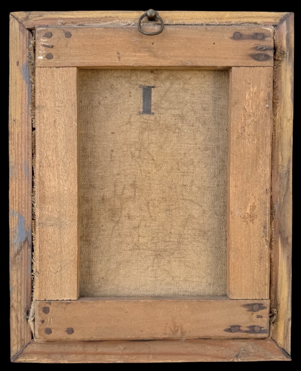 Dipinto olio su tela raffigurante San Carlo Borromeo.Cm 25x20.Tela:cm 21x16.