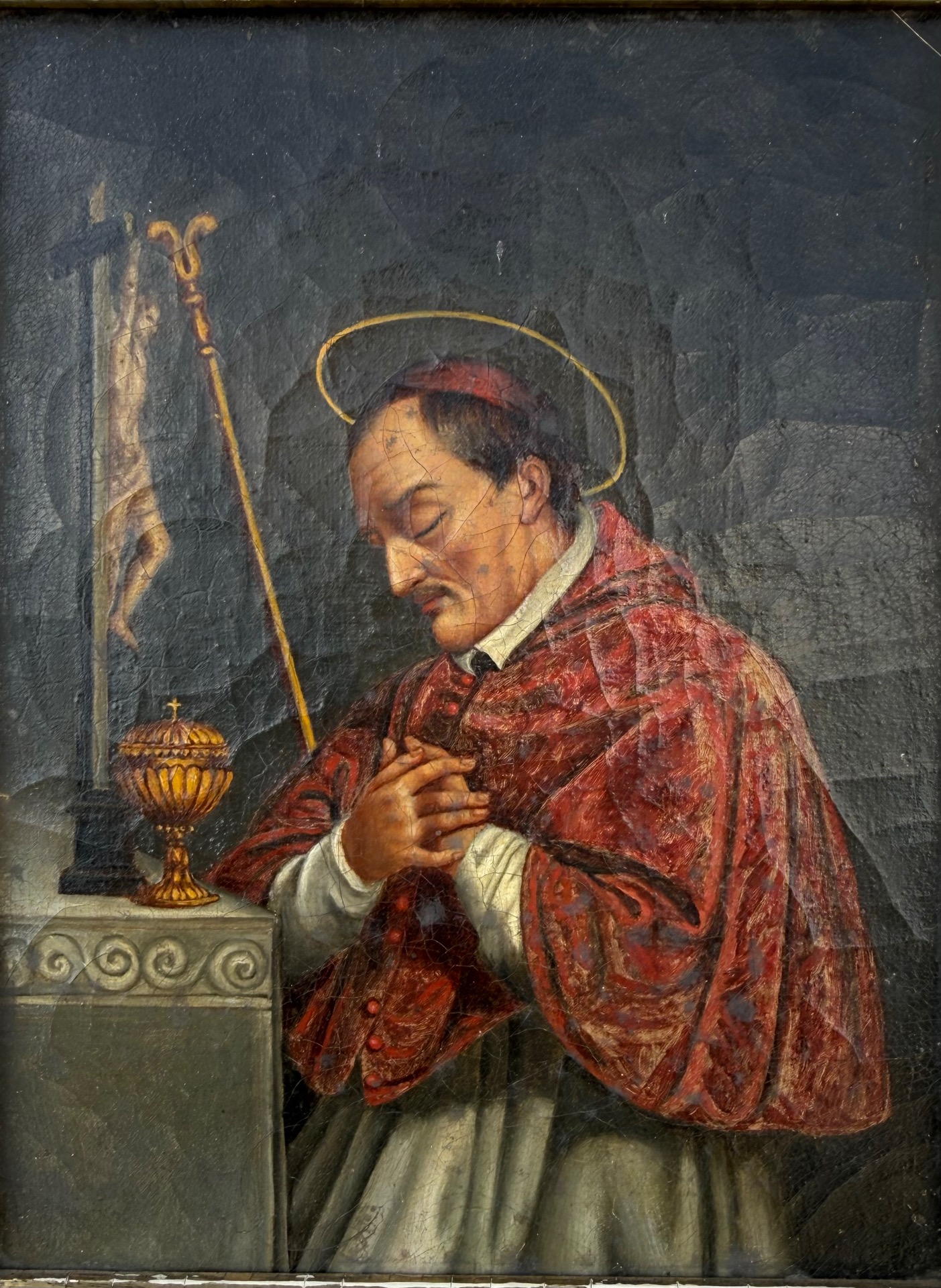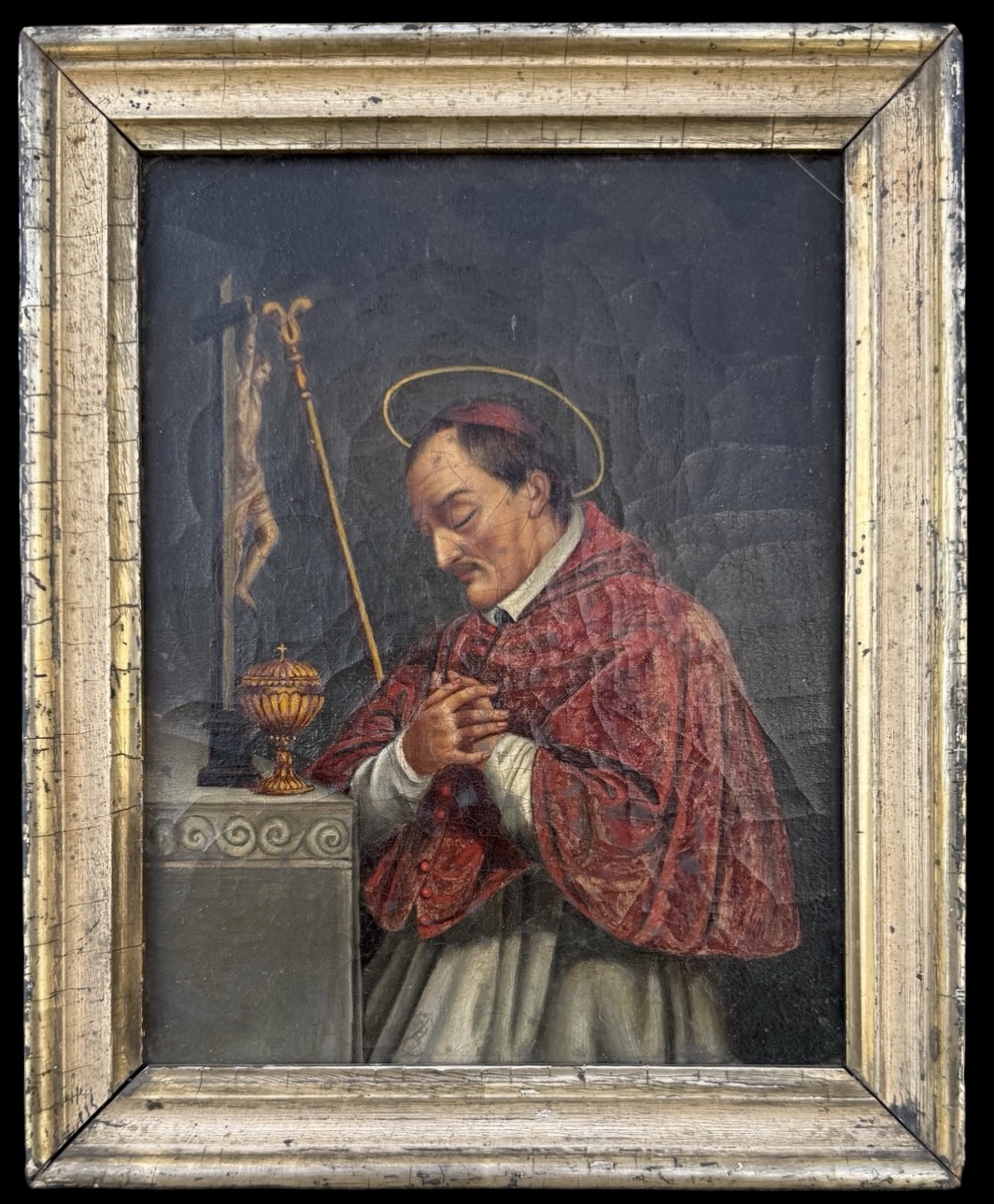 Dipinto olio su tela raffigurante San Carlo Borromeo.