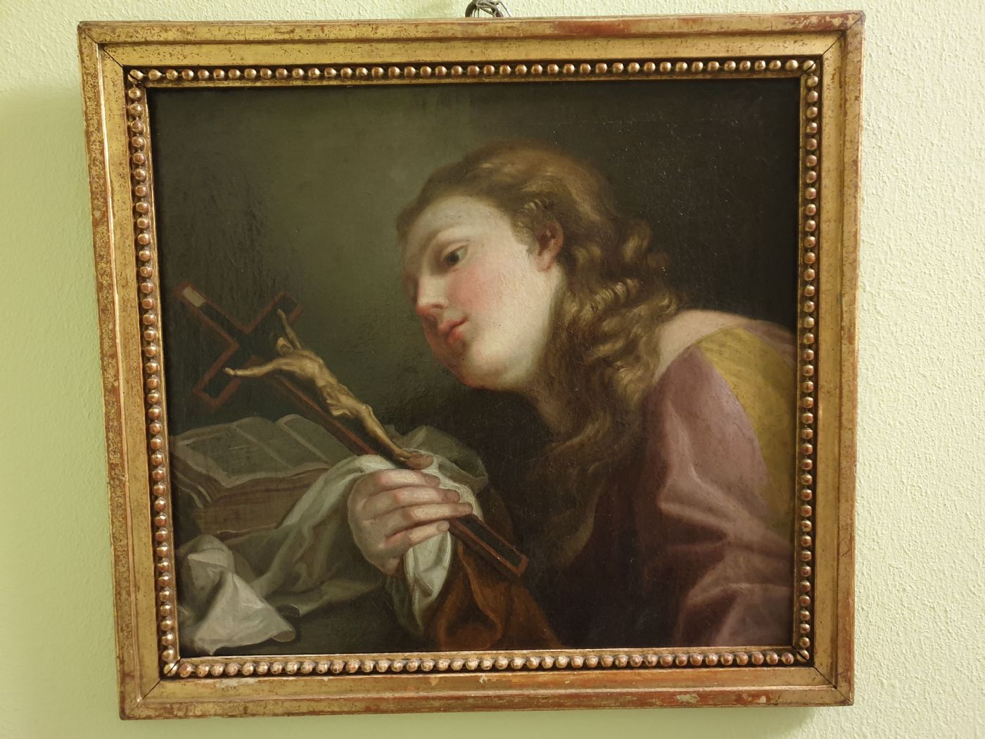 Di grandissima qualita' questo olio su tela di ambito sicuramente Emiliano, probabilmente di scuola Parmense, che colpisce per la delicatezza cromatica e la leggiadra stesura pittorica di questa Maddalena in preghiera. In perfetto stato, misura: 52x47 cm la sola tela e 60x54 cm tot con cornice antica dorata. Non si capisce se ancora in prima tela o se presenta un antico rintelo. Si tratta di una ripresa della figura diella Maddalena nella pala del Correggio raffigurante la Madonna col Bambino e santi (detta "il Giorno"), oggi alla Galleria Nazionale di Parma. Questa operazione di riscrittura del Correggio diventa di gran moda a Parma in ambiente accademico in quegli anni.