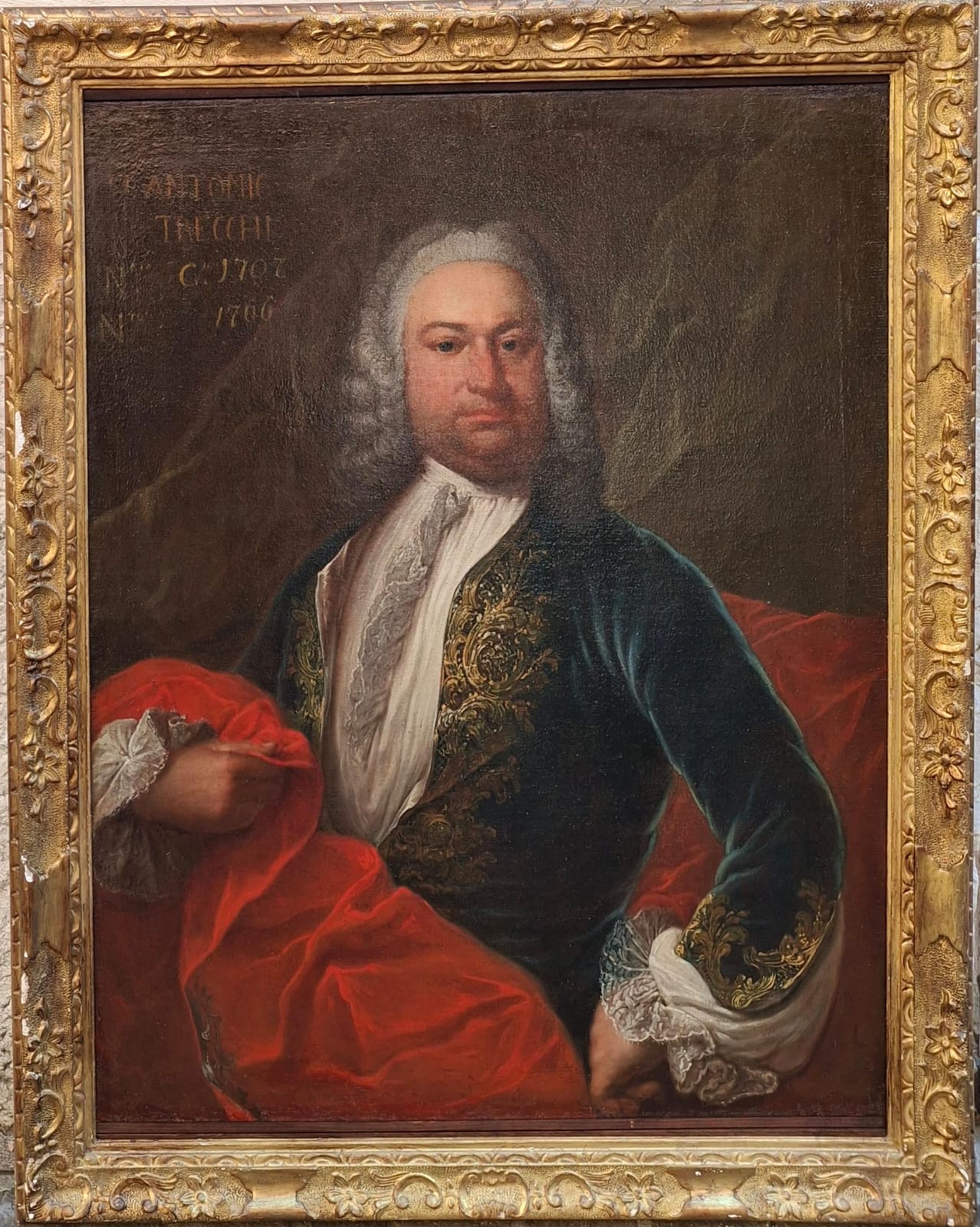Ritratto del marchese Antonio Trecchi di Maleo, pittore lombardo del XVIII secolo, olio su tela, misure 99x78 cm, con cornice misure 117x92 cm, in alto a sinistra riporta le iscrizioni inerenti al ritratto. http://www.oldpaintingsonline.com
