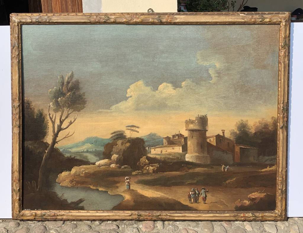 Francesco Tironi (Venezia 1745 - Venezia 1797) - Paesaggio veneto con pastori e armenti. 95 x 130 cm senza cornice, 107 x 140 cm con cornice. Dipinto antico ad olio su tela, in cornice in legno intagliato, laccato e dorato. - Il dipinto è attribuito con certezza alla mano di Francesco Tironi (Venezia 1745 - Venezia 1797) sulle base di confronti stilistici. Condition report: Tela foderata. Buono stato di conservazione della superficie pittorica, sono presenti segni di invecchiamento e usura. Francesco Tironi (Venezia 1745 - Venezia 1797) è stato un pittore e incisore veneziano noto per essere stato uno degli ultimi vedutisti attivi durante il XVIII secolo. Le informazioni su di lui sono relativamente scarse, ma Tironi è riconosciuto ed apprezzato dai collezionisti per il contributo significativo dato alla veduta veneziana del Settecento. Il suo stile riprende la lezione di Francesco Guardi, con l’utilizzo di una tavolozza cromatica contrastata che alterna i toni bruni a dei colpi di luce, il tutto a creare un effetto più atmosferico che calligrafico nei suoi dipinti. Questa coppia di grandi paesaggi rappresenta un raro esempio in cui il pittore non si è cimentato a dipingere Venezia, bensì a rappresentare la campagna veneta. Ritroviamo i colori e i toni tipici del Tironi, dalle nuvole del cielo alle “macchiette”, questa volta abbigliate a figurine di campagna invece che gondolieri. - Tutte le spedizioni in UE sono gratuite ed imballate professionalmente. - Ogni articolo viene venduto con certificato di autenticità con validità legale. - Ulteriori approfondimenti sul condition report sono disponibili su richiesta. - Viezzi Arte garantisce qualità e professionalità a prezzi competitivi, contattaci su info@viezziarte.it o via What’sApp al +39 3402841279. *Messaggio rivolto agli acquirenti non italiani: Tieni presente che quest'opera non ha ancora ottenuto il certificato di libera esportazione dall'Italia presso la Soprintendenza dei Beni Culturali. Questo documento attesta che l'opera non fa parte del patrimonio culturale italiano. Normalmente i tempi di rilascio degli attestati sono 40 giorni dalla data di appuntamento: La nuova normativa in vigore dal 2021 prevede, per importi dichiarati inferiori a 13.500€, tempi più brevi a discrezione della commissione di esperti. Tutti i costi di questa operazione sono inclusi.