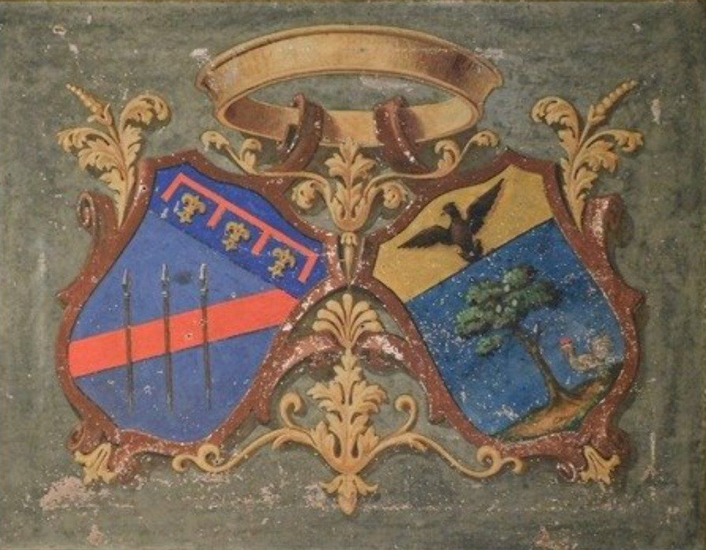 Antico Dipinto, Epoca '700. Opera Raffigurante Stemma Araldico, di bella mano pittorica. Arte in Prima Tela, realizzata con la tecnica: Olio su Tela. Scuola Bolognese La parte destra e' stata individuata ed appartiene alla casata ASTOLFI, seguono le ricerche per individuare la parte di sinistra. Importanti misure 97X118 cm