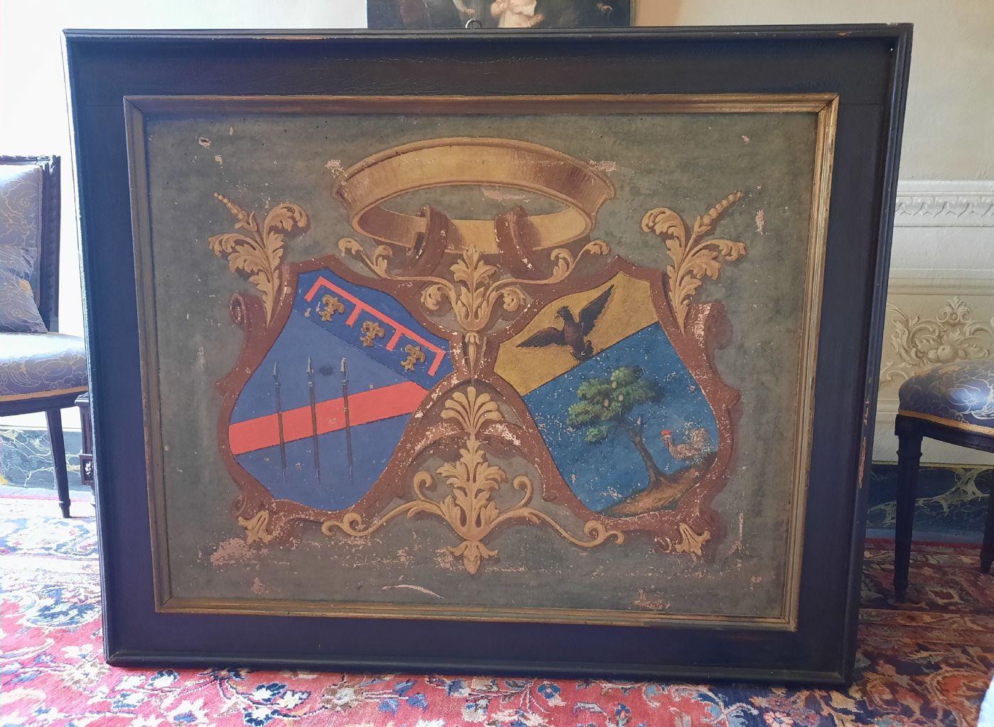 Antico Dipinto, Epoca '700. Opera Raffigurante Stemma Araldico, di bella mano pittorica. Arte in Prima Tela, realizzata con la tecnica: Olio su Tela. Scuola Bolognese La parte destra e' stata individuata ed appartiene alla casata ASTOLFI, seguono le ricerche per individuare la parte di...