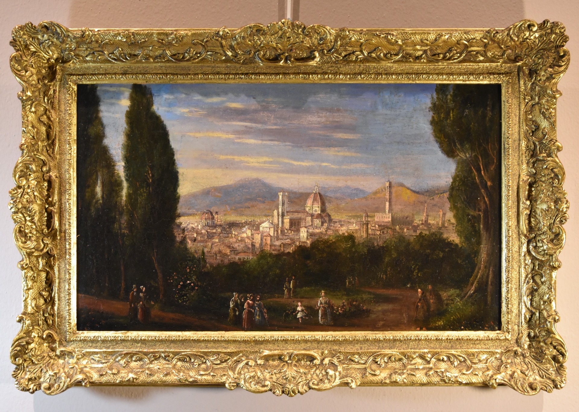 La veduta cattura l'essenza di una città senza tempo, offrendo uno sguardo panoramico su Firenze, immortalata da uno dei più suggestivi punti panoramici, molto probabilmente dai giardini di Boboli (o dai giardini Bardini), il grande parco con viali alberati voluto dalla famiglia Medici e realizzato a partire dalla seconda metà del Cinquecento, da sempre prediletto dai fiorentini per le loro passeggiate e dagli artisti per posizionare il proprio cavalletto e ritrarre una delle città più belle del Mondo.