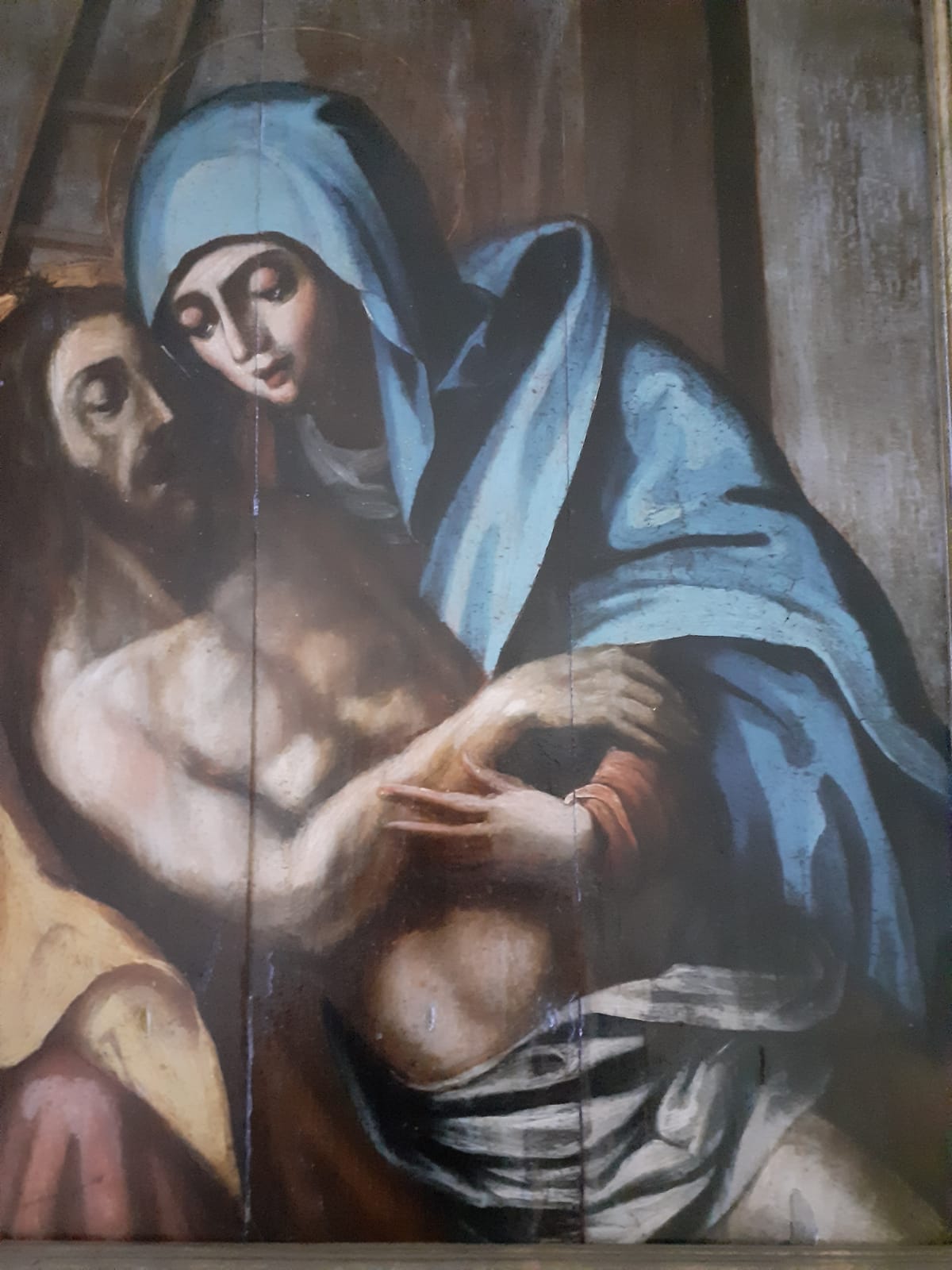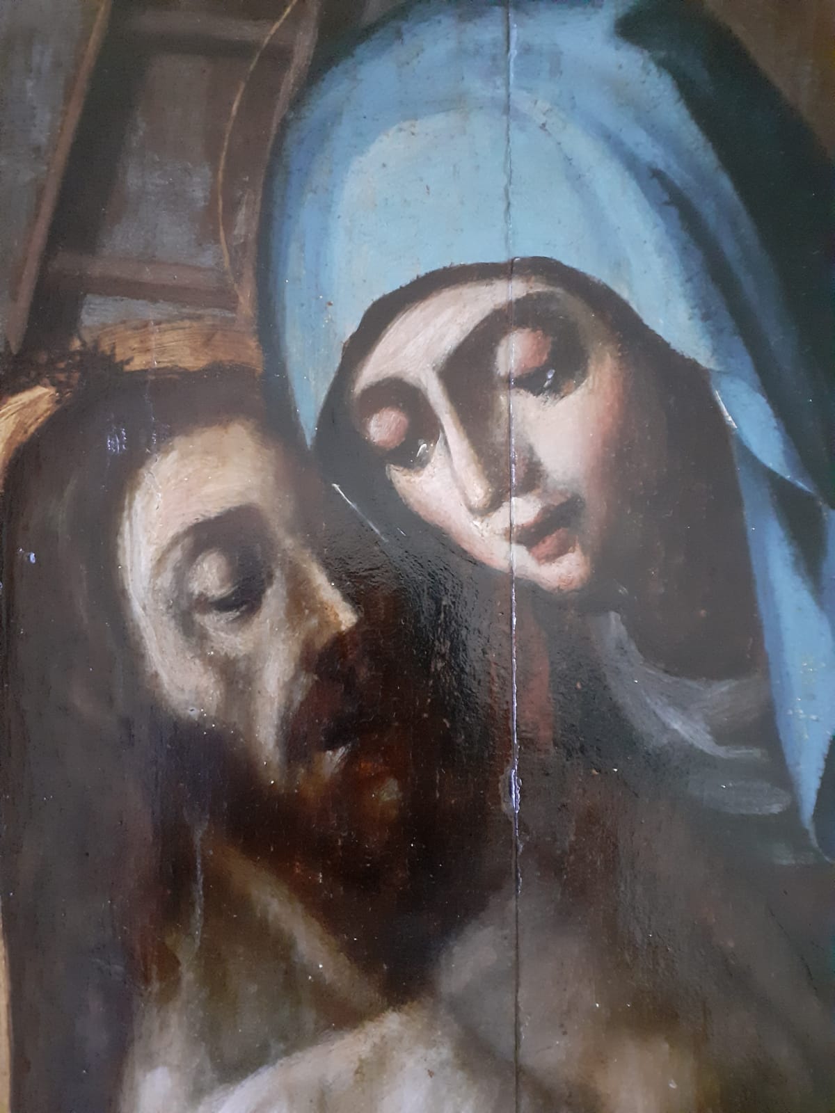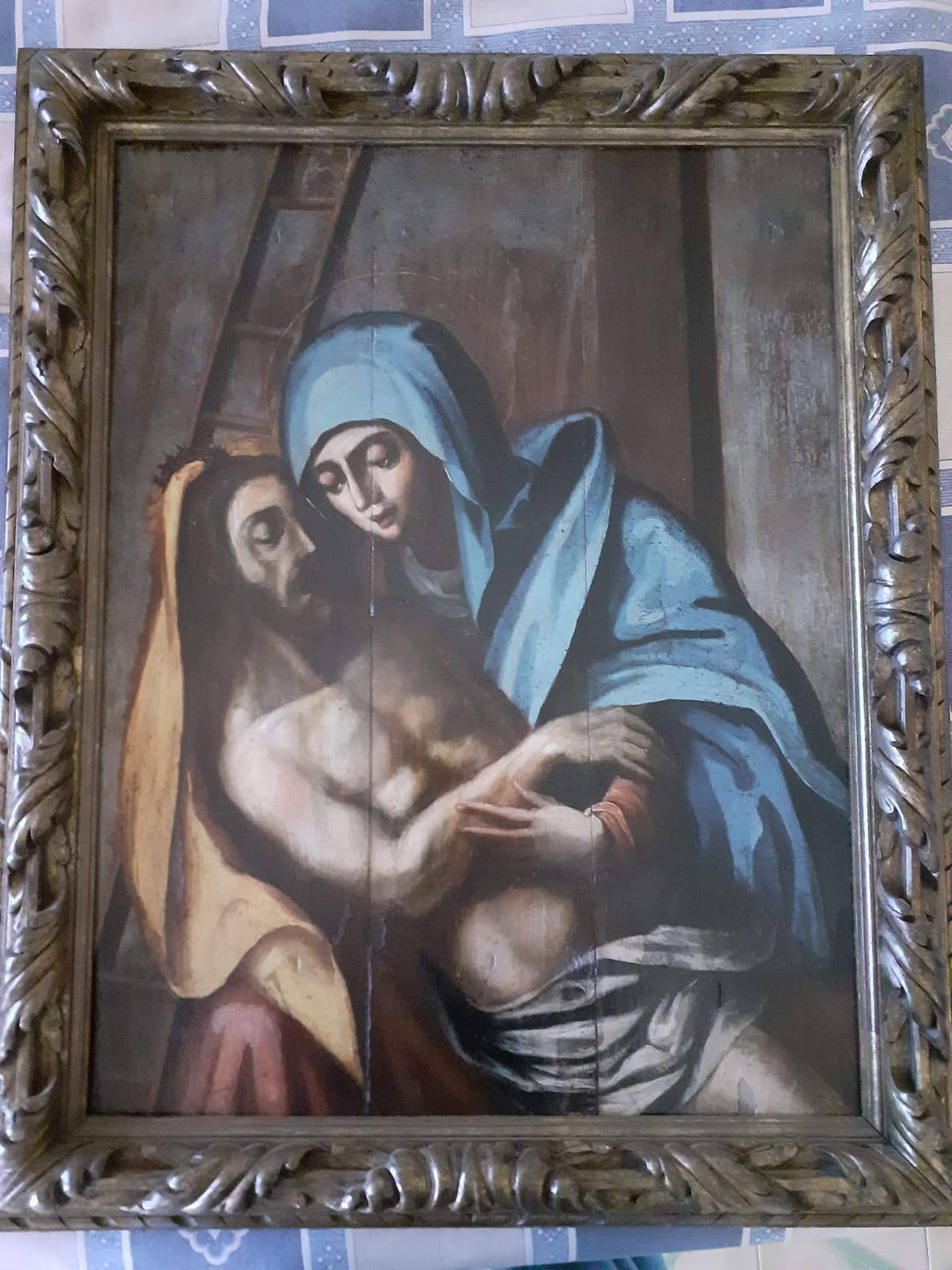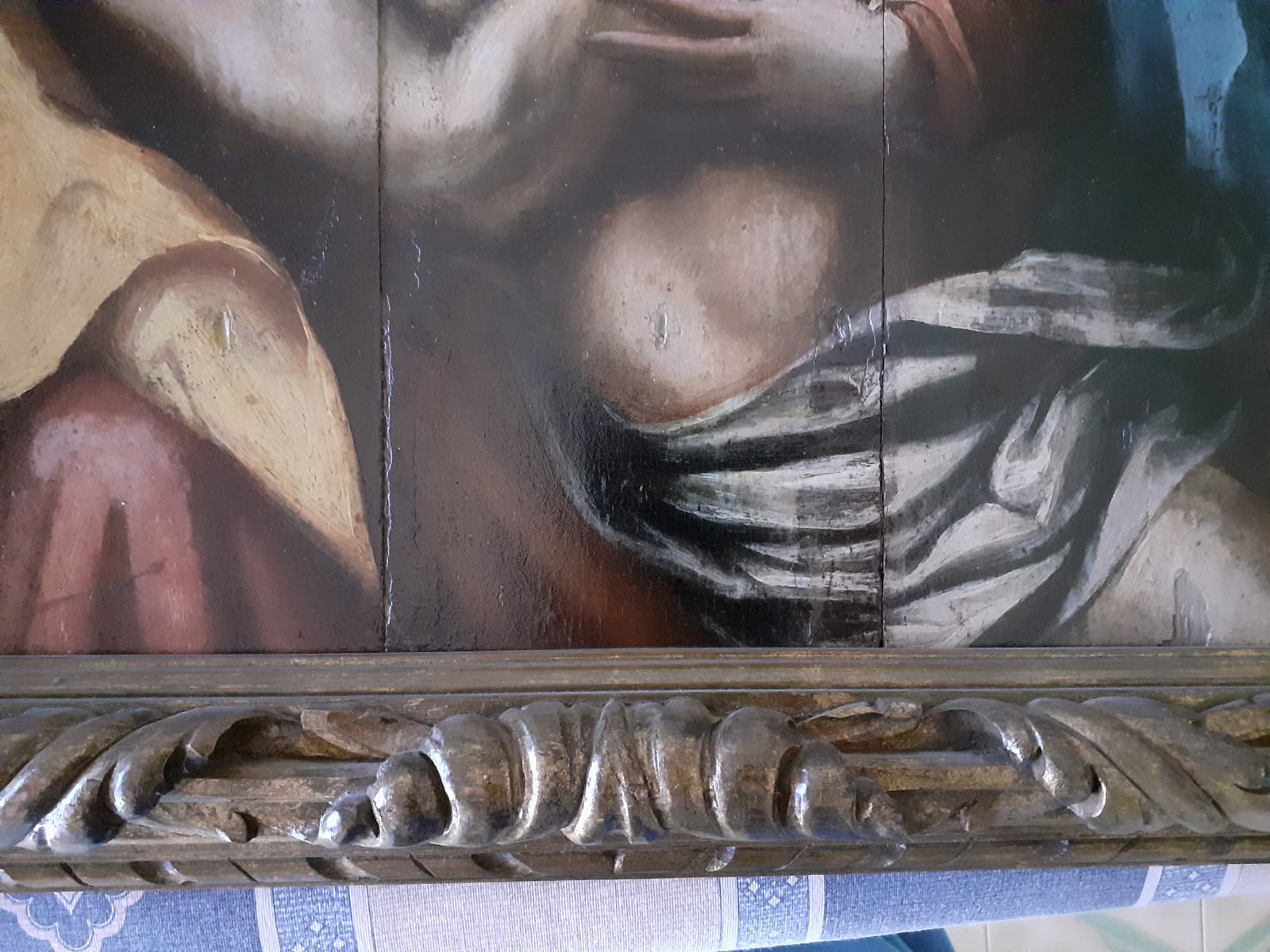 Dipinto su tavola del xv fiammingo alla maniera di l. morales pittore spagnolo 1570 con cornice coeva misura 77 cm