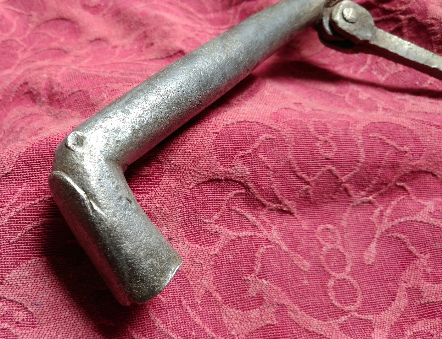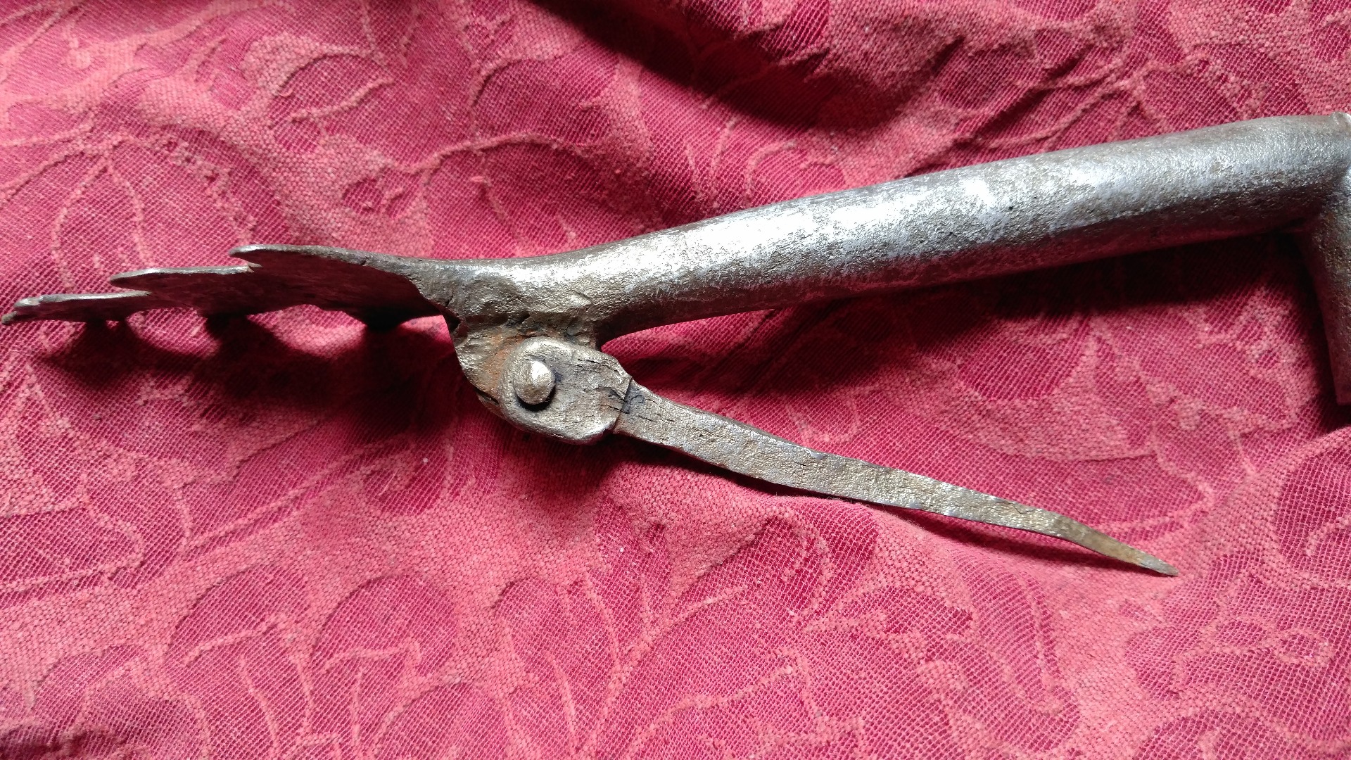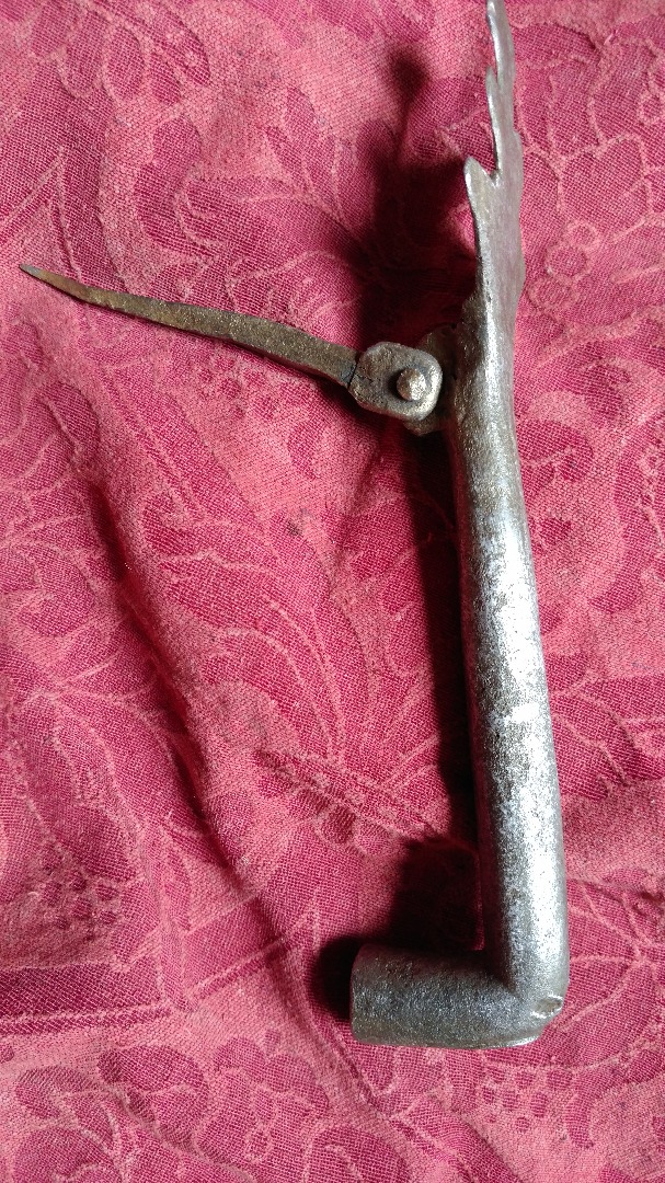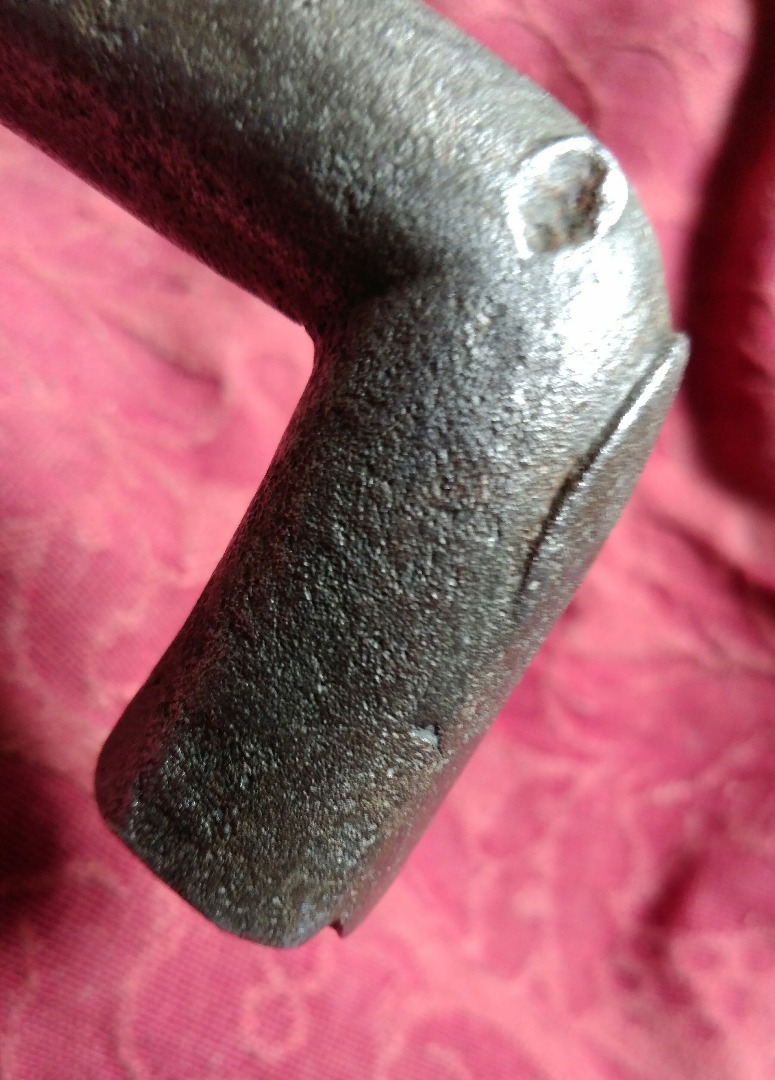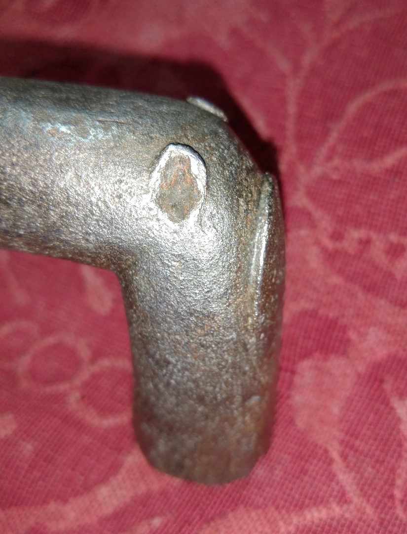 Battente in ferro zoomorfo. Lunghezza cm 30