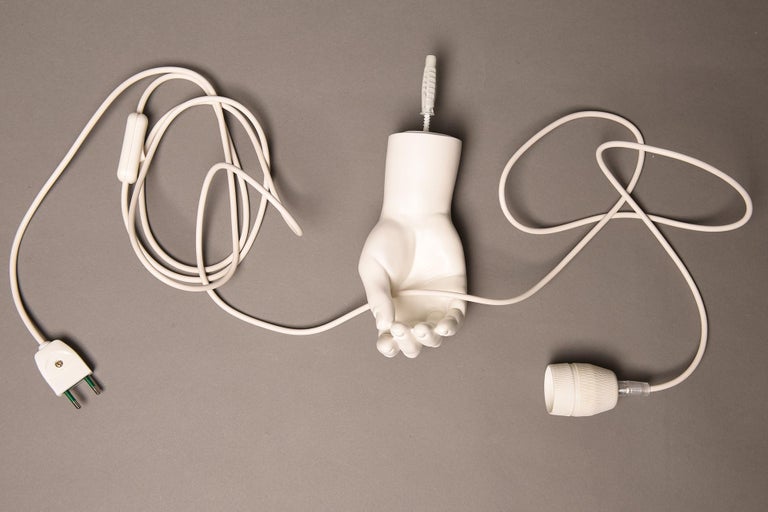 Originale applique italiana a forma di mano "M'illumino" : da applicare a parete (con tassello incorporato) e lungo filo per ambientarla dove si vuole.