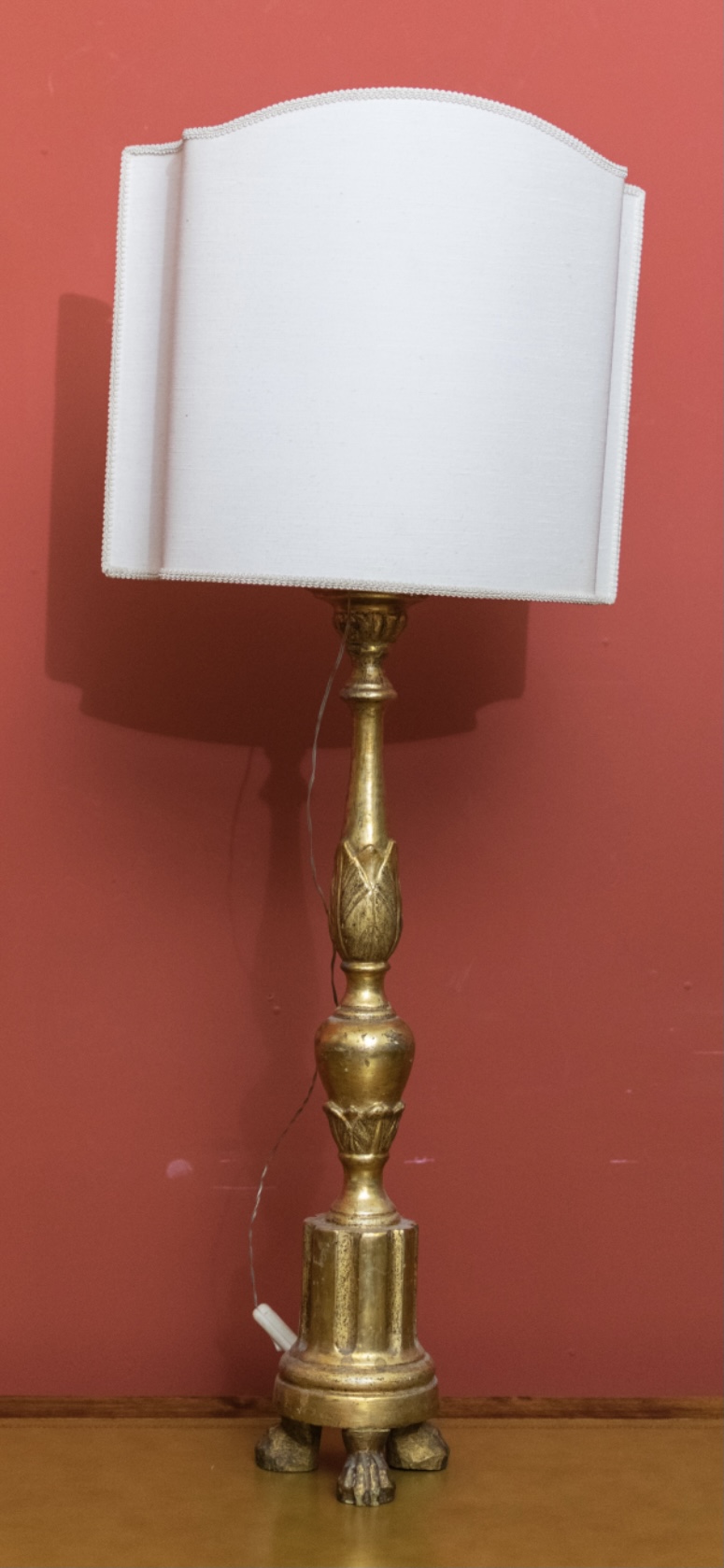 Lampada realizzata da antico torciere in legno intagliato e dorato Italiana