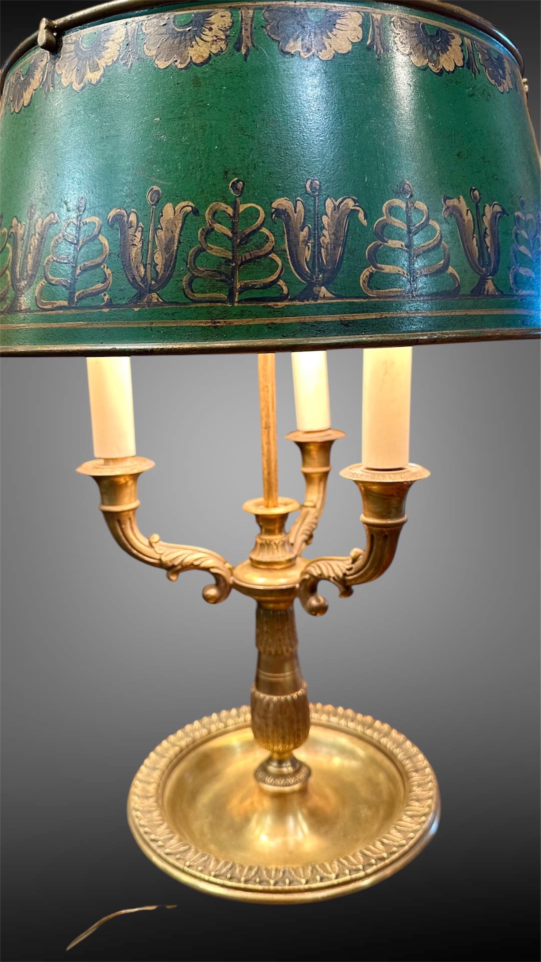 Lampada Bouillotte in bronzo dorato e paralume in metallo dipinto, primo '900.