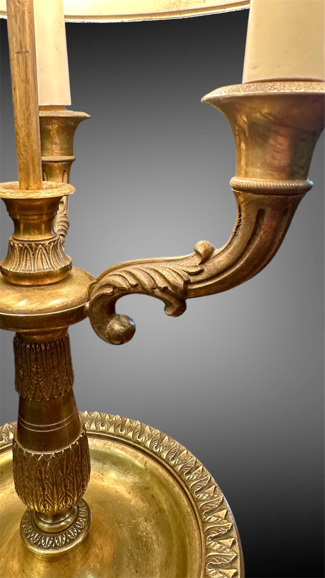 Elegante e grande lampada Bouillotte in bronzo dorato, Francia.