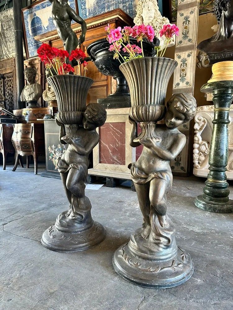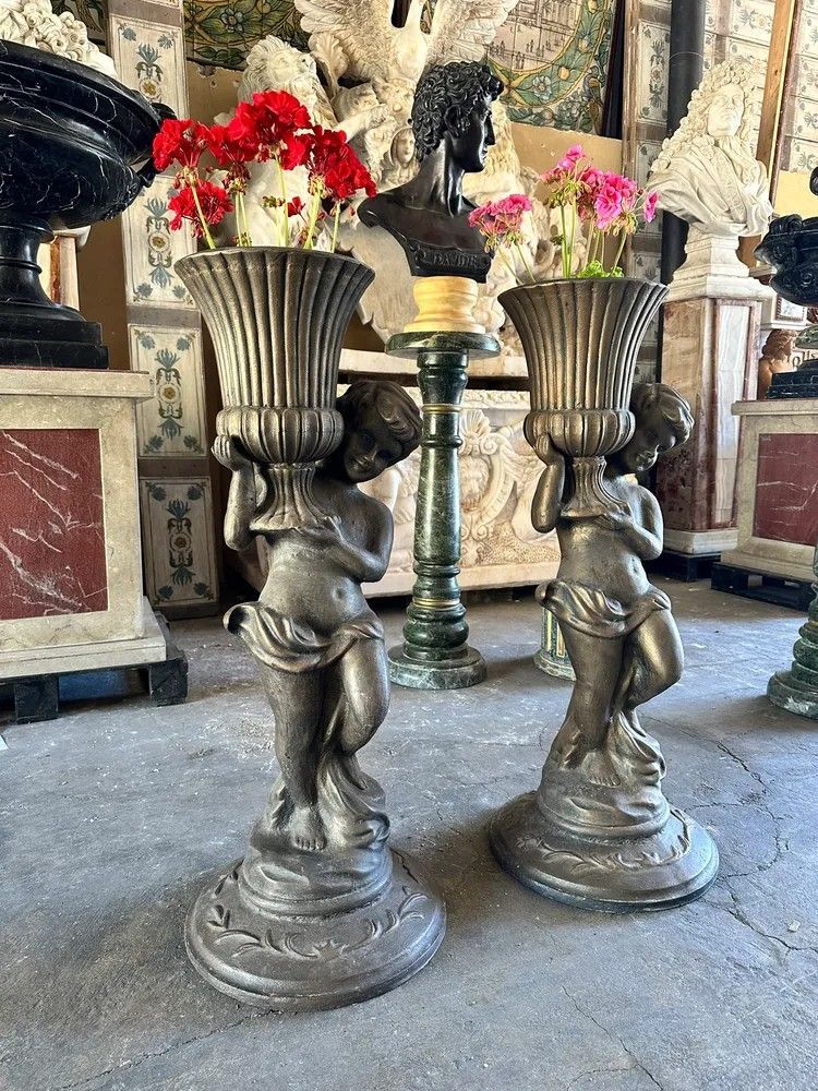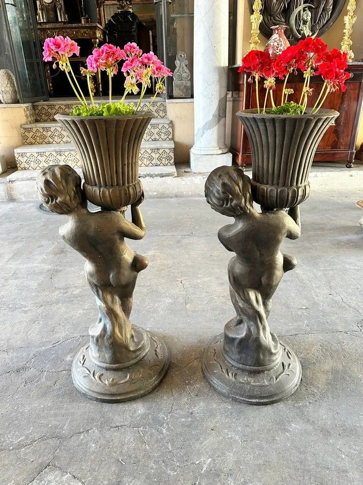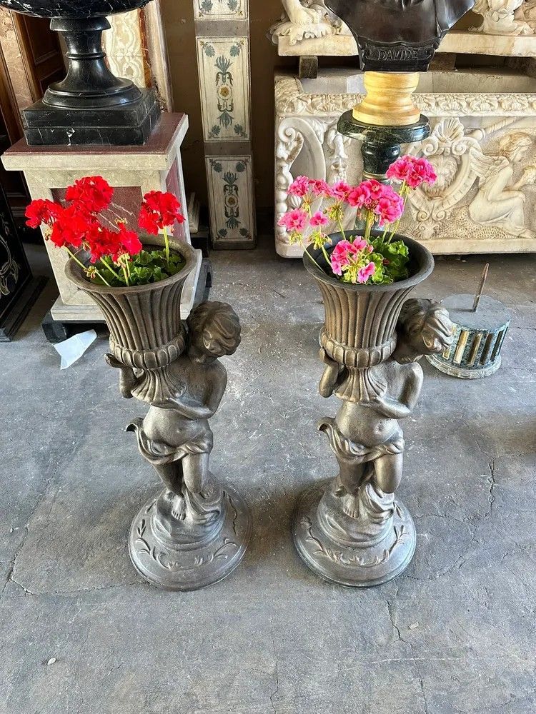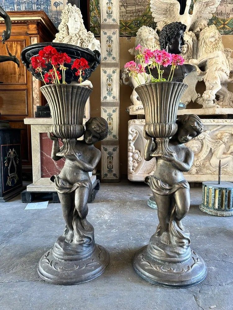 Lasciati sedurre dall'intramontabile eleganza di questa coppia di fioriere in ghisa, adornate con incantevoli putti risalenti ai primi del '900. Le fioriere sono perfette per donare un tocco di classe al tuo giardino e valorizzare i tuoi spazi esterni. Ogni dettaglio è realizzato con precisione artigianale per garantire un prodotto di alta qualità. Scopri perché queste fioriere sono un vero e proprio capolavoro di design antico:Realizzate in solida ghisa per una durata nel tempo senza pari.Decorazioni elaborate con putti che raccontano storie d'altri tempi.Adatte a diversi stili di arredamento grazie al loro design intramontabile. Non perdere l'opportunità di possedere un pezzo unico e di grande valore storico: trasformate i vostri spazi verdi con queste magnifiche fioriere.Materiale: GhisaAltezza (cm): 95Diametro: 40Epoca: XX Secolo - 1900