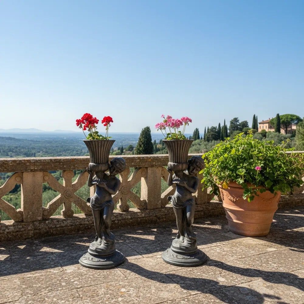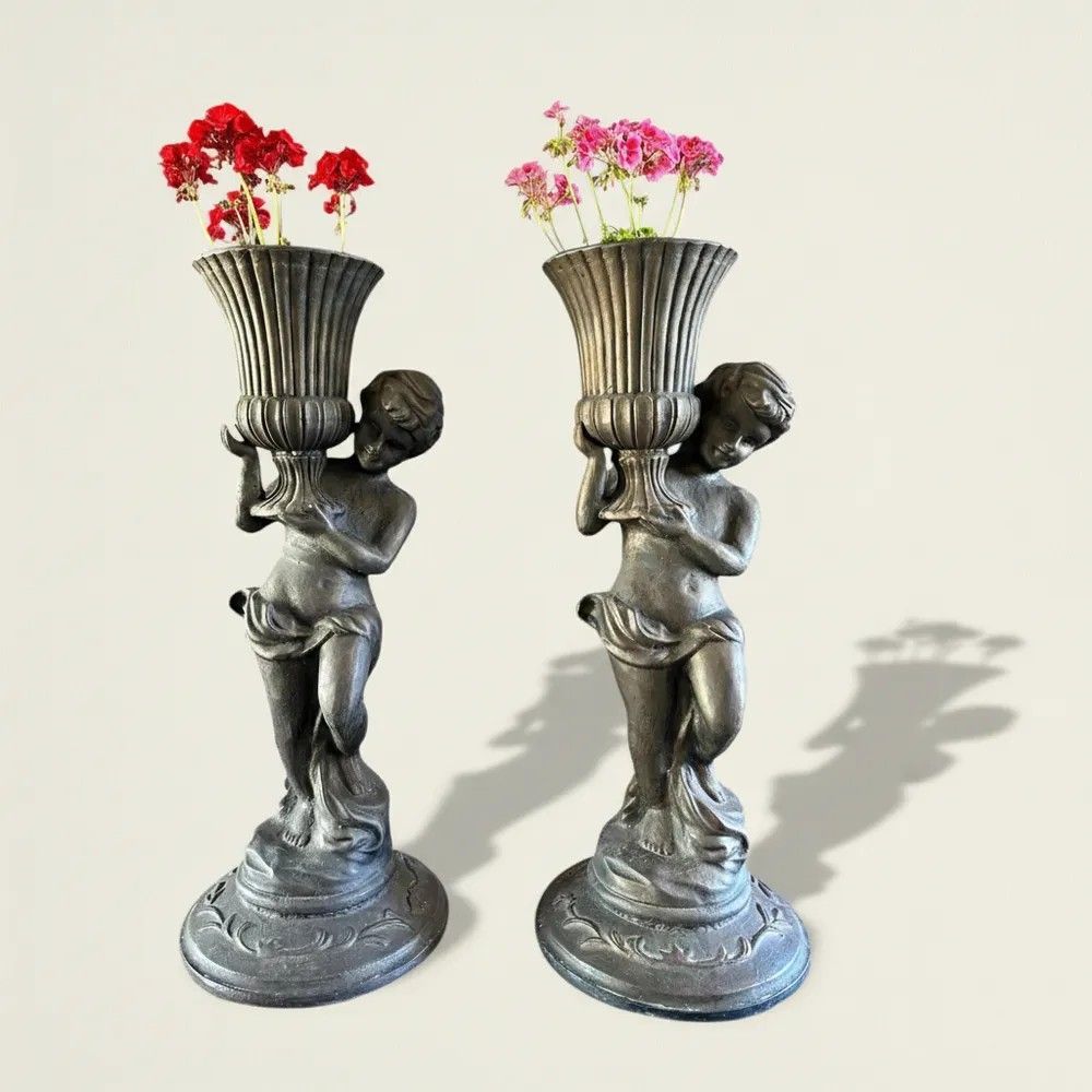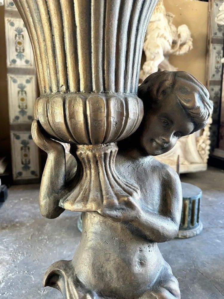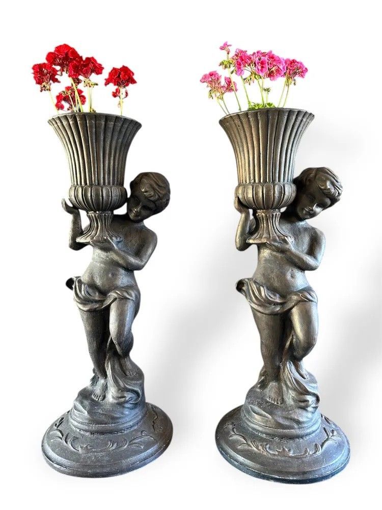 Lasciati sedurre dall'intramontabile eleganza di questa coppia di fioriere in ghisa, adornate con incantevoli putti risalenti ai primi del '900. Le fioriere sono perfette per donare un tocco di classe al tuo giardino e valorizzare i tuoi spazi esterni. Ogni dettaglio è realizzato con precisione artigianale per garantire un prodotto di alta qualità. Scopri perché queste fioriere sono un vero e proprio capolavoro di design antico:Realizzate in solida ghisa per una durata nel tempo senza pari.Decorazioni elaborate con putti che raccontano storie d'altri tempi.Adatte a diversi stili di arredamento grazie al loro design intramontabile. Non perdere l'opportunità di possedere un pezzo unico e di grande valore storico: trasformate i vostri spazi verdi con queste magnifiche fioriere.Materiale: GhisaAltezza (cm): 95Diametro: 40Epoca: XX Secolo - 1900