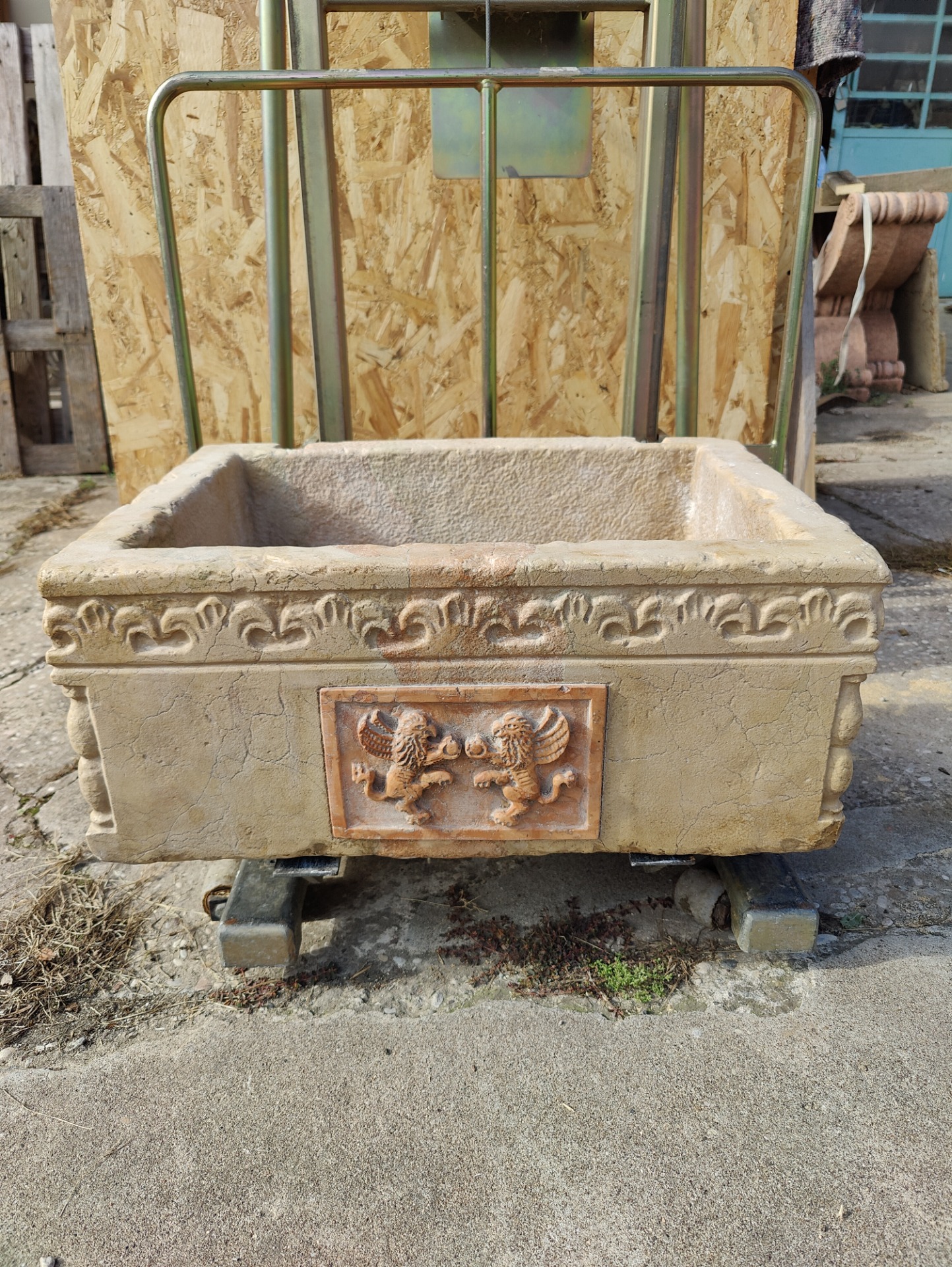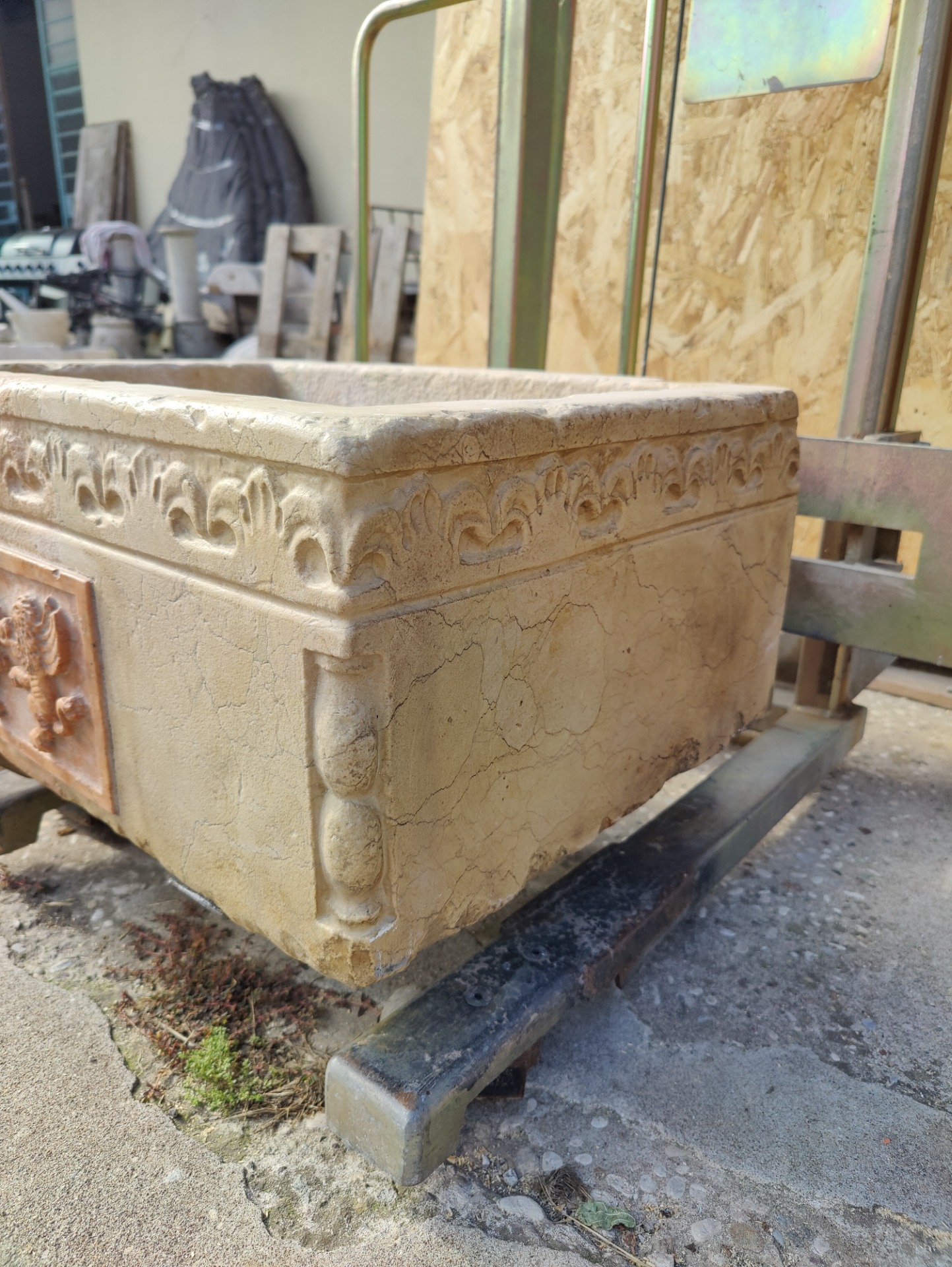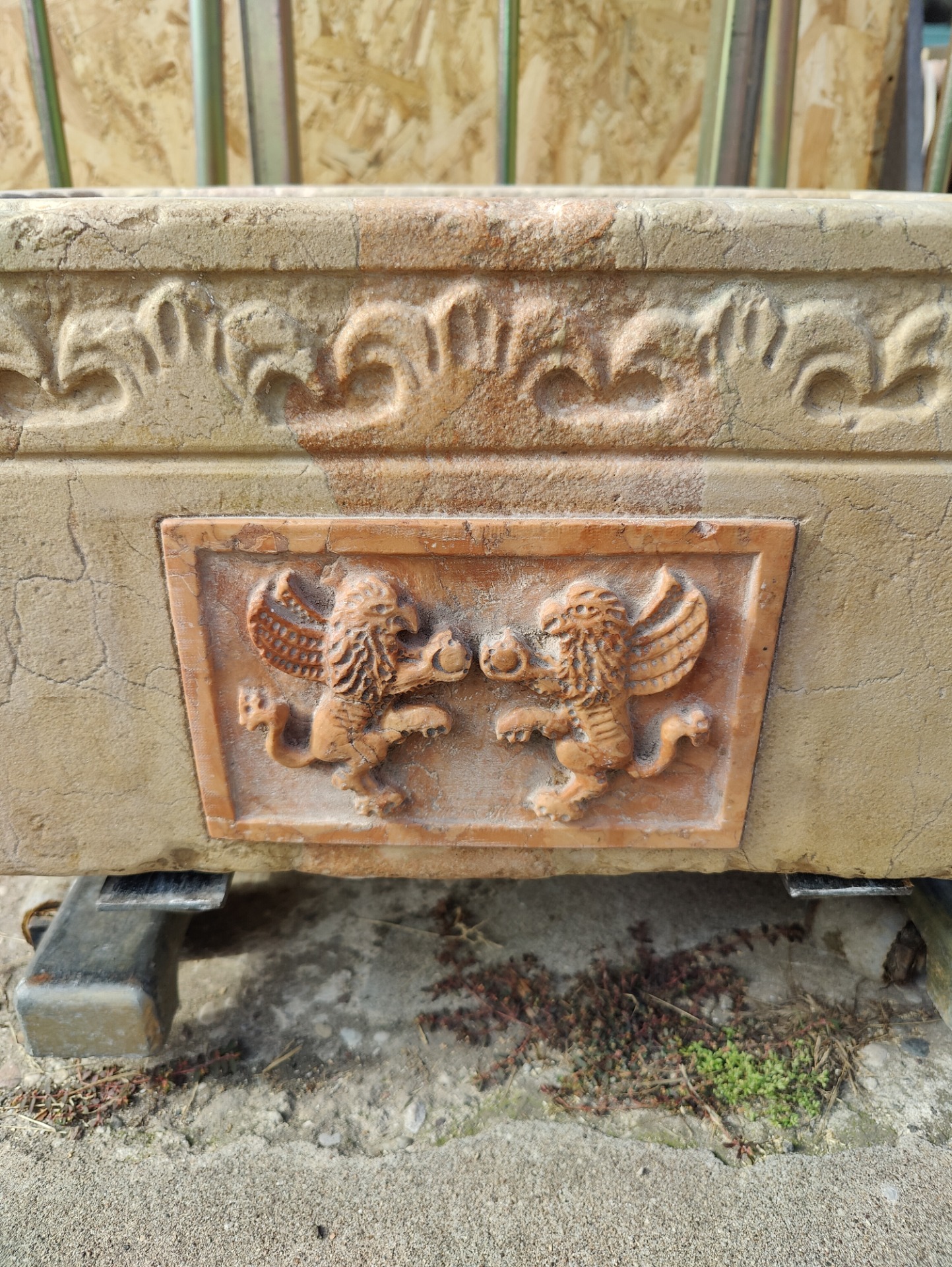 Favoloso Lavandino finemente scolpito in Marmo botticino con intarsio centrale in marmo rosso Verona, proveniente da Venezia, collezione privata. Magnifiche le decorazioni ed il particolare delle colonne sugli angoli. Oggetto di ottima fattura, raffinato ed elegante. Notevole l'intarsio che accompagna la particolare venatura rossa della parte frontale. Si predispone per essere adoperato come lavandino da esterno o anche da interno. Di medie/grandi dimensioni, proporzionato e di peso opportuno. E' già predisposto di foro. Bella la patina e la venatura del marmo. Si presenta in ottime condizioni, integro in tutte le sue parti. Sarà spedito con cassa di legno, spedizioni in tutto il Mondo a prezzi contenuti, in sicurezza e tracciabile. Disponibile anche il ritiro presso il nostro magazzino. Misure: - Larghezza 58 cm - Profondità 42 cm - Altezza 25 cm - Misure interne: 32 x 48 cm