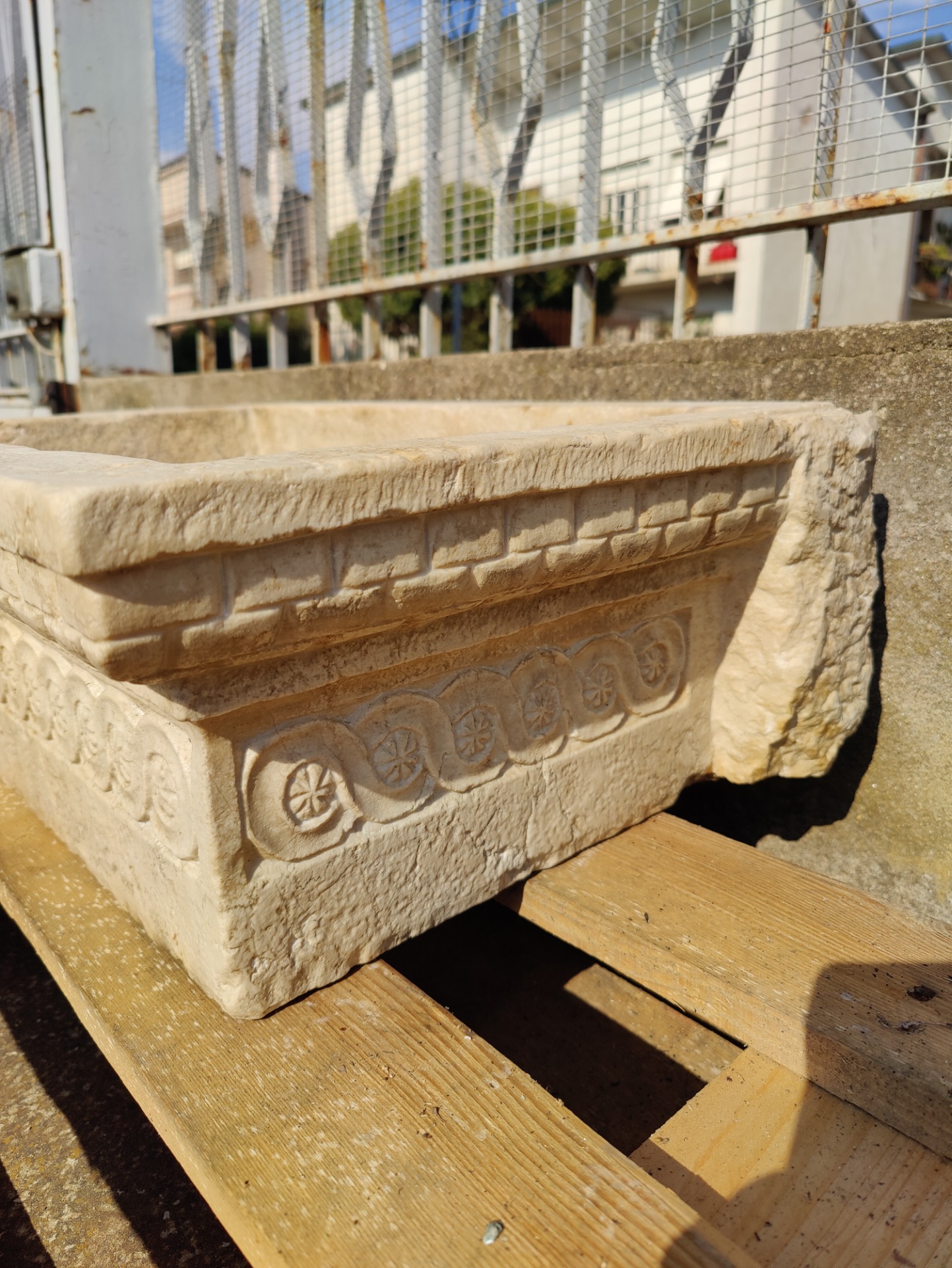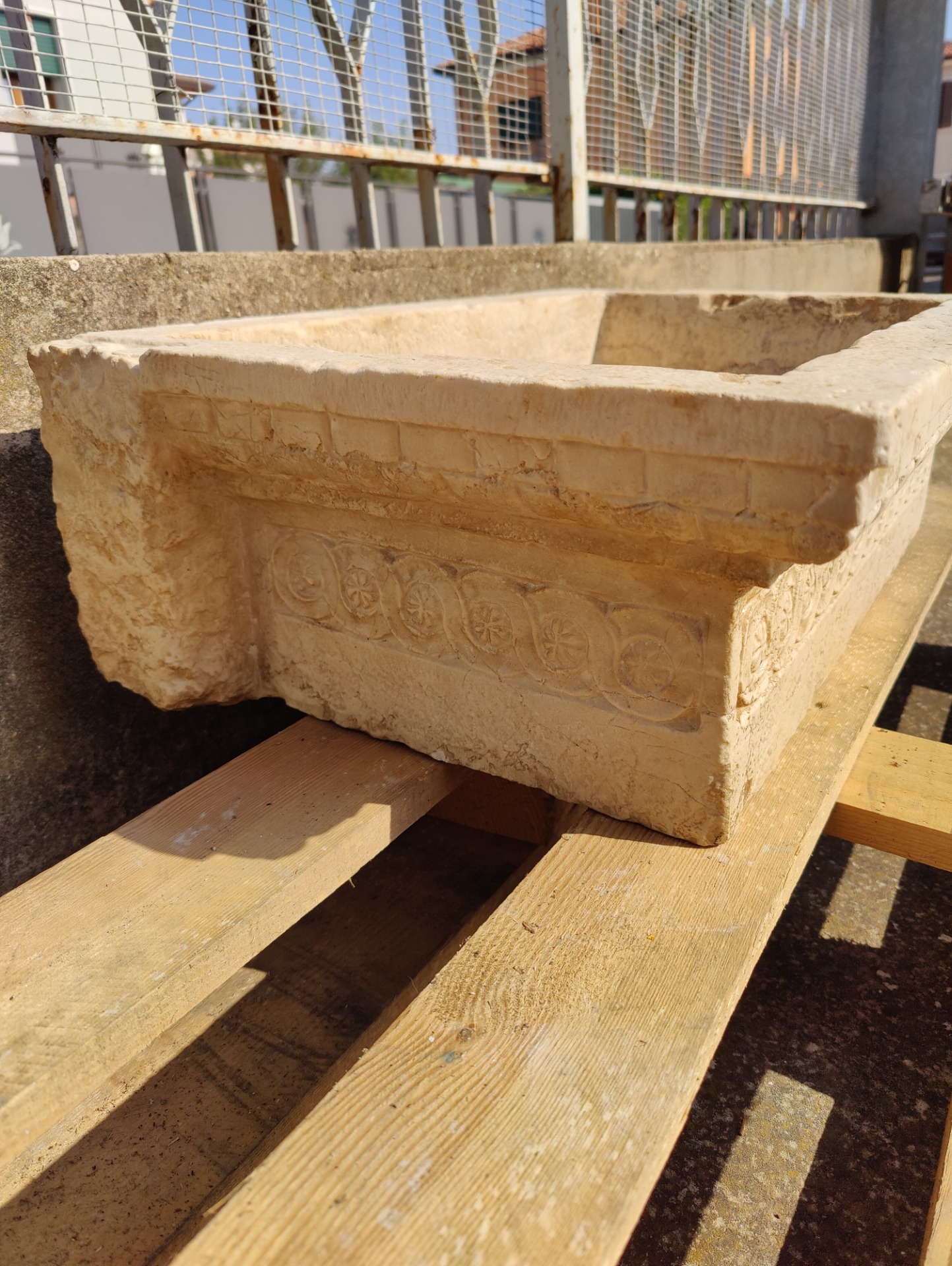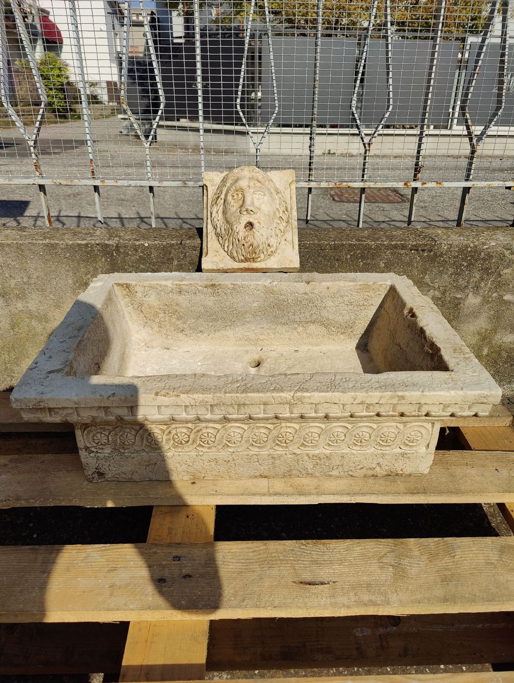 Raffinato lavandino in marmo rubbio finemente decorato, proveniente da Venezia, collezione privata. Accompagnato dal proprio mascherone nello stesso marmo. Magnifiche le decorazioni. Oggetto di ottima fattura, raffinato ed elegante. Si predispone per essere adoperato come lavandino da esterno o...