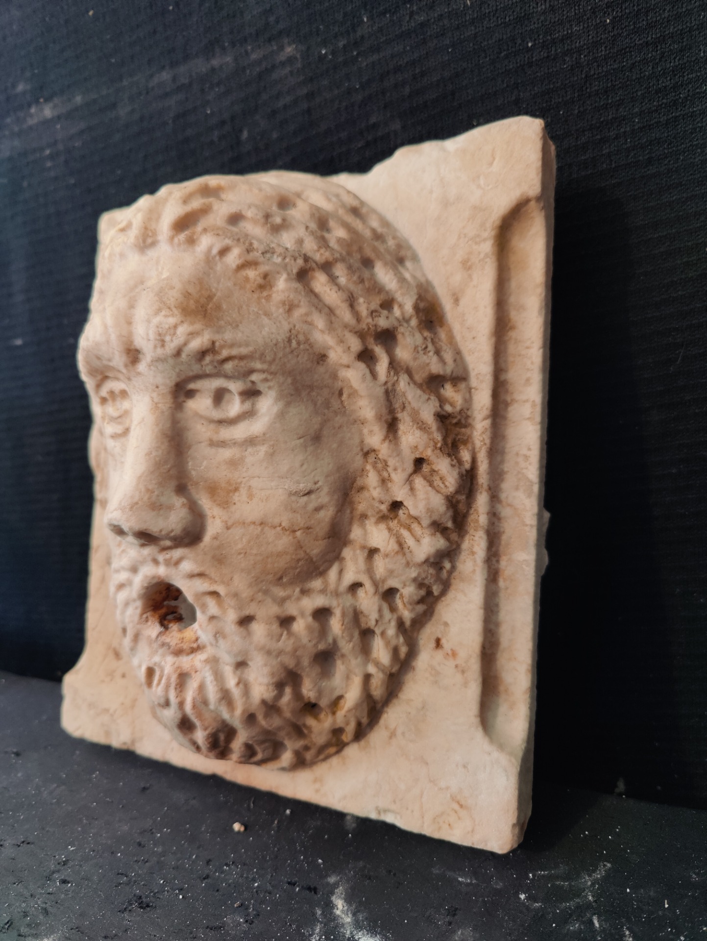 Raffinato lavandino in marmo Rubbio finemente decorato con mascherone - 64 x 42 cm