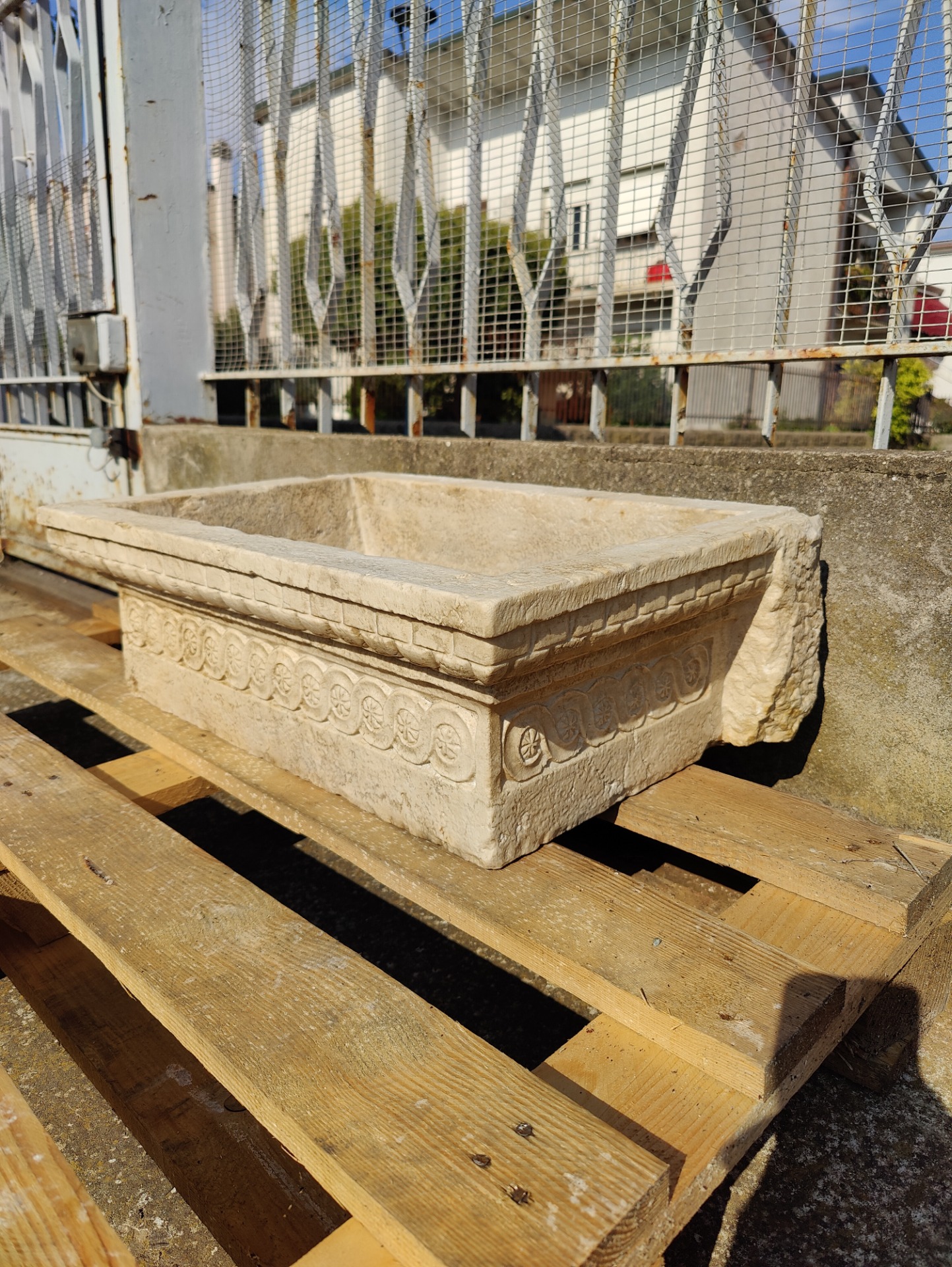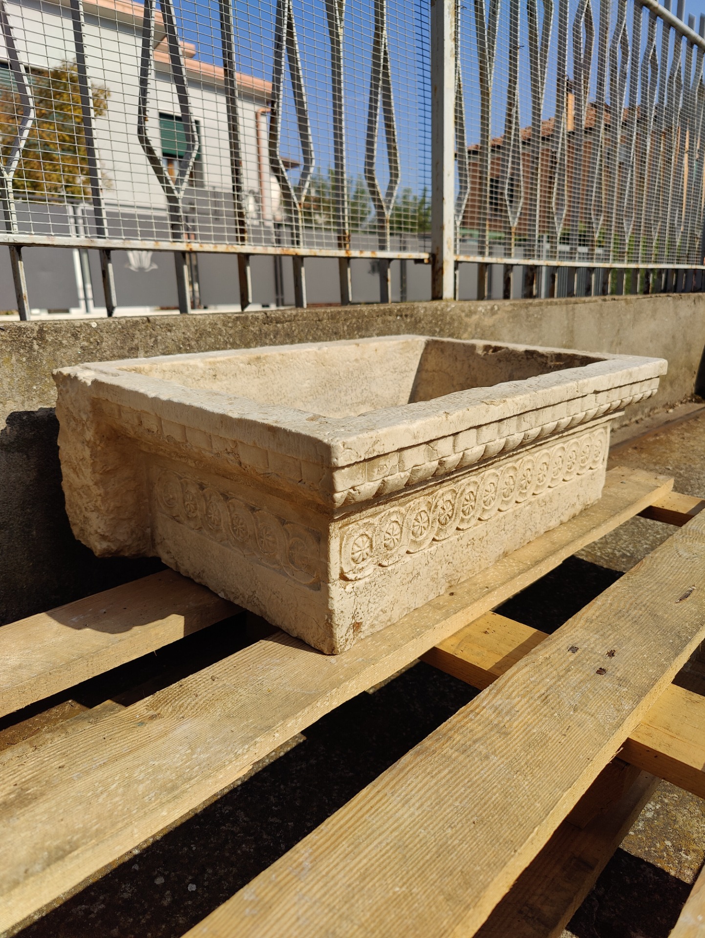 Raffinato lavandino in marmo rubbio finemente decorato, proveniente da Venezia, collezione privata. Accompagnato dal proprio mascherone nello stesso marmo. Magnifiche le decorazioni. Oggetto di ottima fattura, raffinato ed elegante. Si predispone per essere adoperato come lavandino da esterno o anche da interno. Di medie/grandi dimensioni, proporzionato e di peso opportuno. E' già predisposto di foro. Bella la patina e la venatura del marmo. Si presenta in perfette condizioni, completamente integro in tutte le sue parti. Sarà spedito con cassa di legno, spedizioni in tutto il Mondo a prezzi contenuti, in sicurezza e tracciabile. Disponibile anche il ritiro presso il nostro magazzino. Misure lavandino: - Larghezza 64 cm - Profondità 42 cm - Altezza 20 cm Misure interne: 31 x 53 cm Misure mascherone: 20 x 23 x 9 cm
