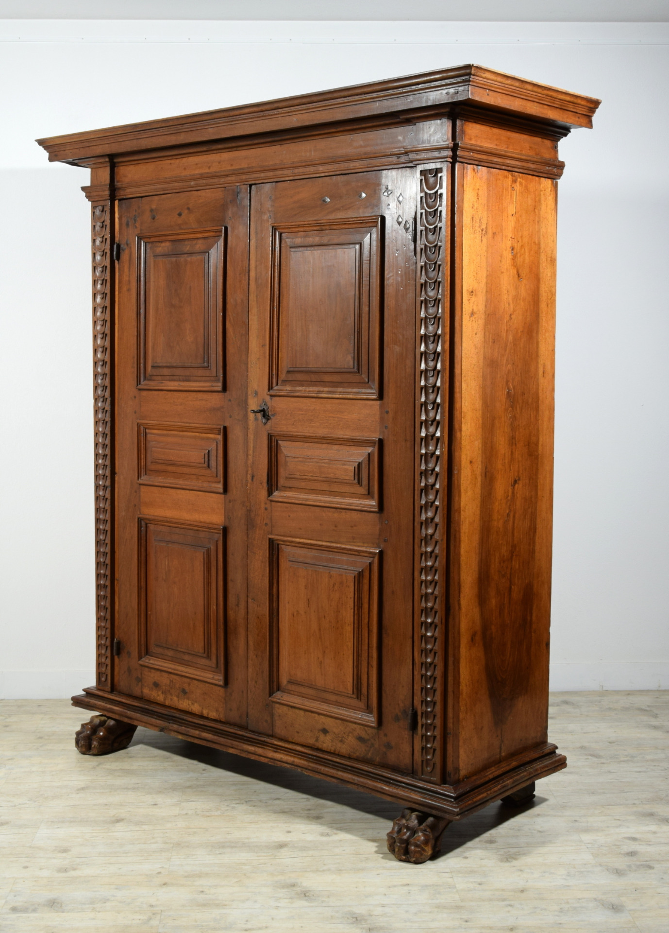 Armadio in legno di noce massello scolpito, Toscana, XVII secolo