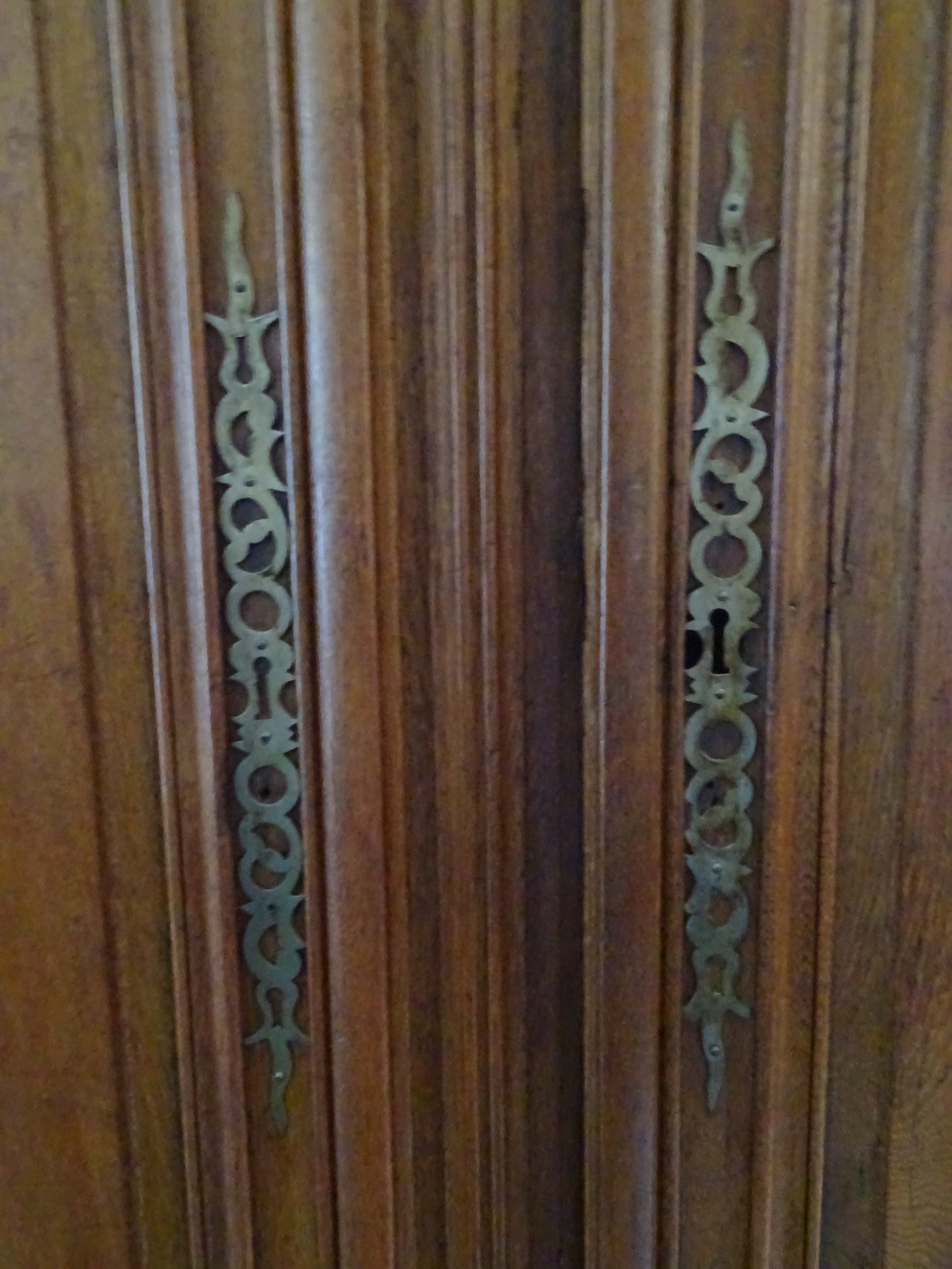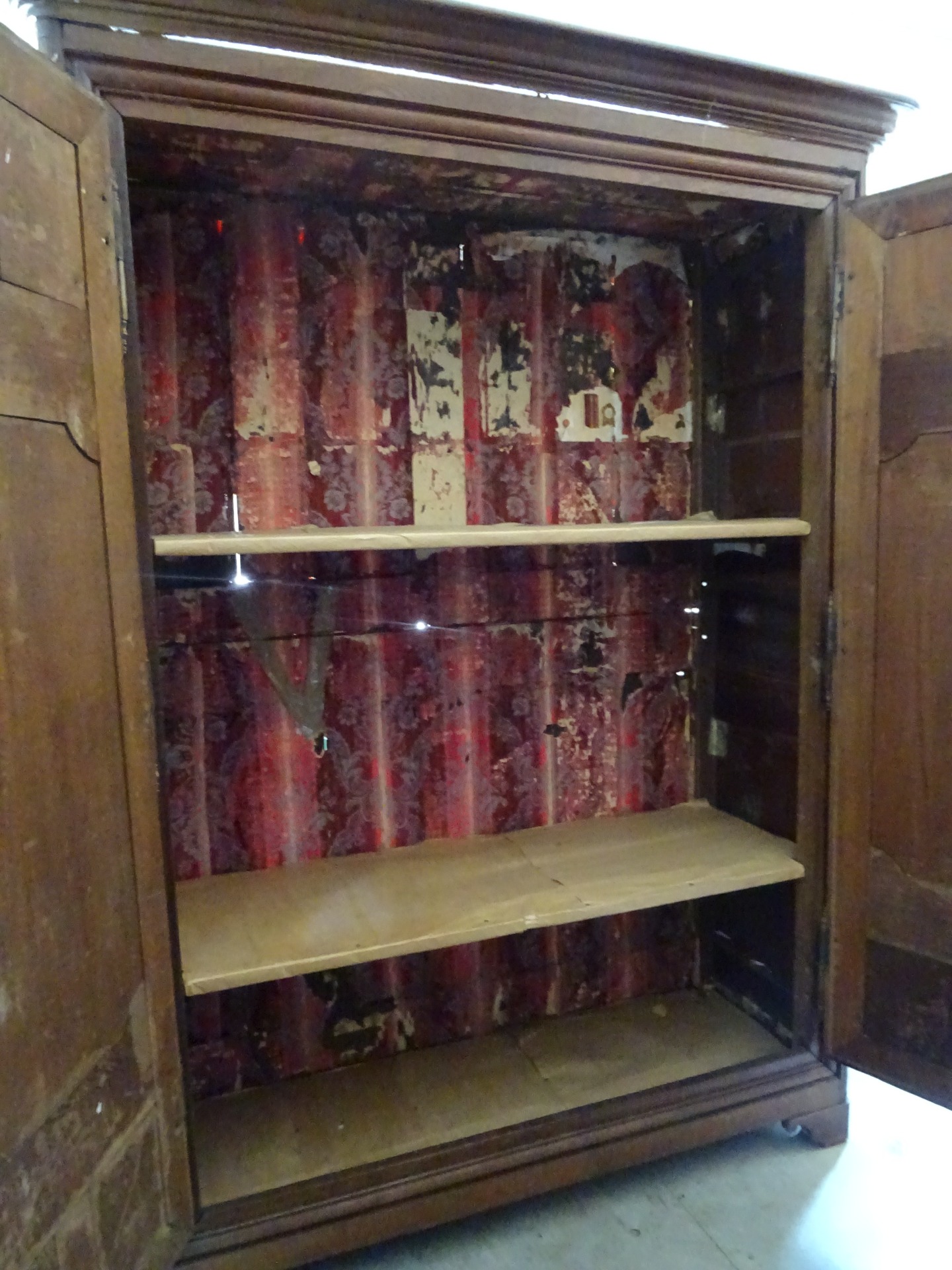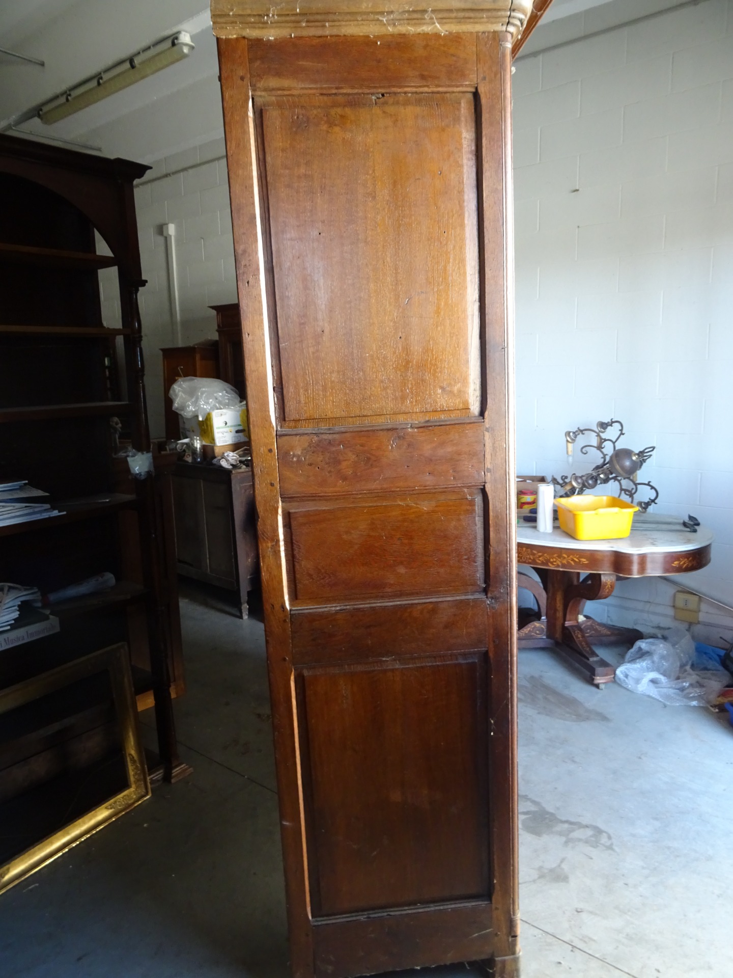 Elegante armadio in rovere massello. Epoca: Luigi XV, metà 1700, Francia. Dimensioni: 160 cm x 60 cm, altezza 235 cm, il cornicione sporge di 10 cm per lato. Per info 3486001479