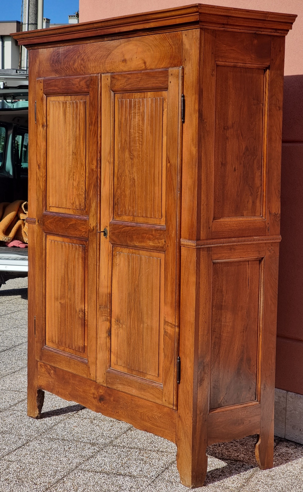 Armadio piemontese in noce con ante scanalate, fine XVIII secolo