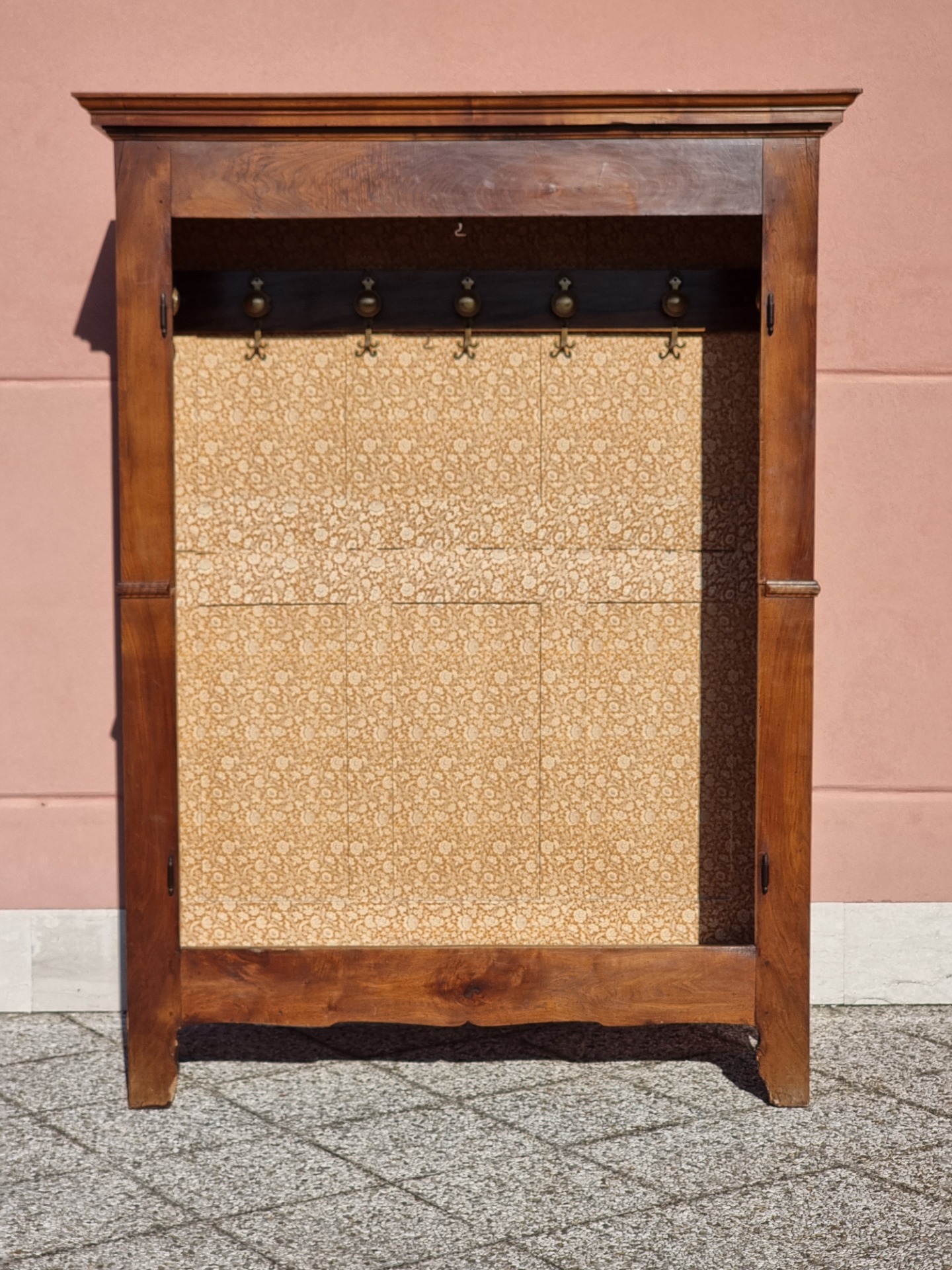 Solido armadio piemontese in noce massello, databile alla fine del Settecento (circa 1780–1790). Mobile di ottima fattura, caratterizzato dalle ante con eleganti pannellature verticali scanalate, tipiche della tradizione del Piemonte rurale tardo-settecentesco. La struttura presenta proporzioni ben equilibrate e una bella cimasa aggettante superiormente. Le ante, montate a telaio, conservano la serratura e la bocchetta originale in ferro battuto. L’interno offre ampio spazio contenitivo, ideale per biancheria, corredi o guardaroba. Il mobile è interamente smontabile in due parti, caratteristica funzionale tipica degli armadi di area alpina e padana del periodo, utile per facilitarne il trasporto e il posizionamento anche in abitazioni con accessi ridotti. Realizzato in noce massello di ottima qualità, il mobile conserva una patina autentica e gradevole. La struttura risulta solida e stabile, pronta per essere collocata. Epoca: Fine XVIII secoloProvenienza: Piemonte Stato di conservazione:Molto buono, con normali segni d’uso coerenti con l’età. Misure:Larghezza 160 cmProfondità 59 cmAltezza 211 cm Per ulteriori informazioni, altre fotografie o dettagli tecnici, non esitate a contattarci. Spedizioni disponibili in tutto il mondo con imballaggio professionale.