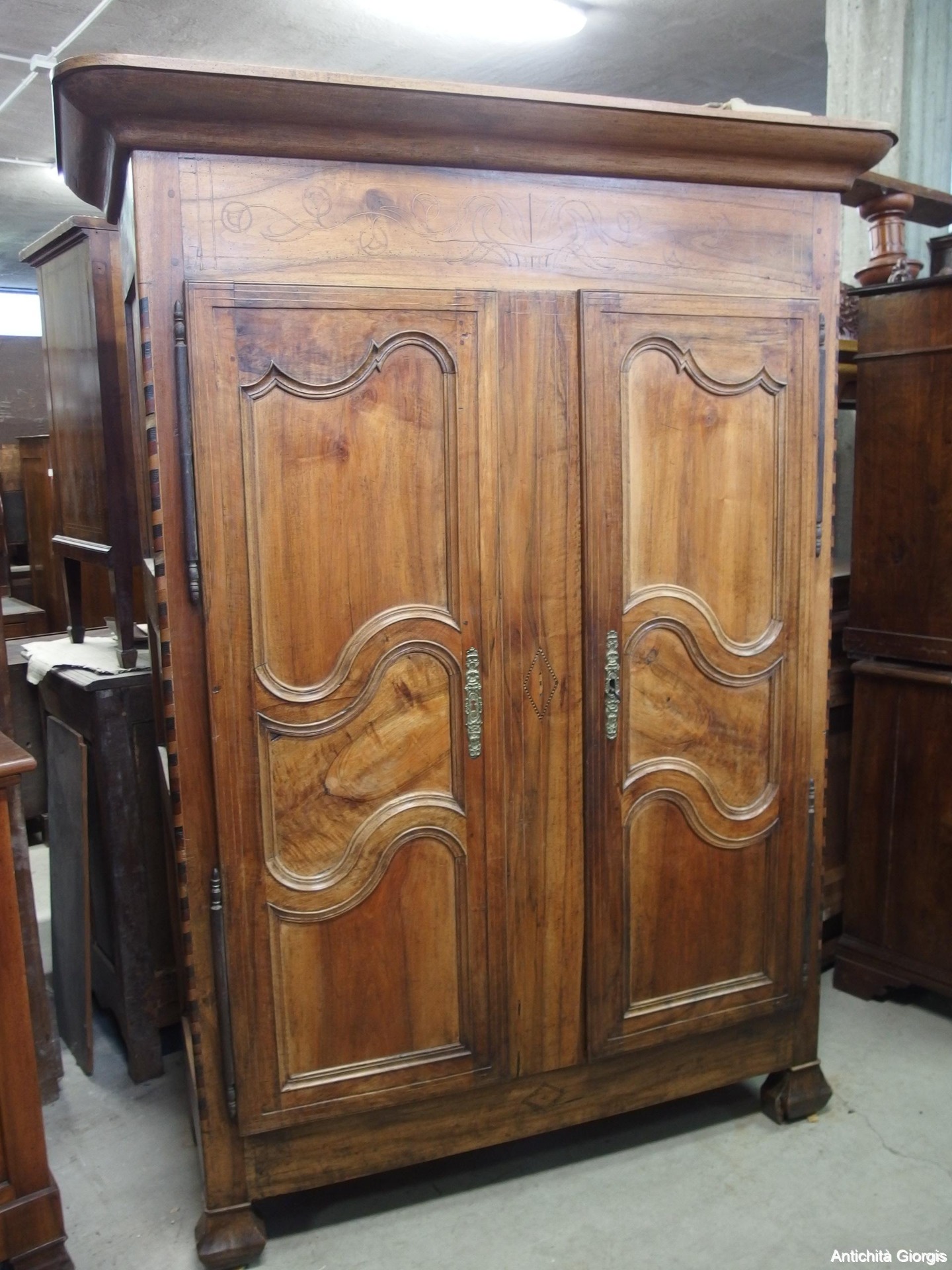 ARMADIO PROVENZALE IN NOCE CON FILETTATURE A DUE PORTE EPOCA PRIMI 800 cm L139xP50xH216