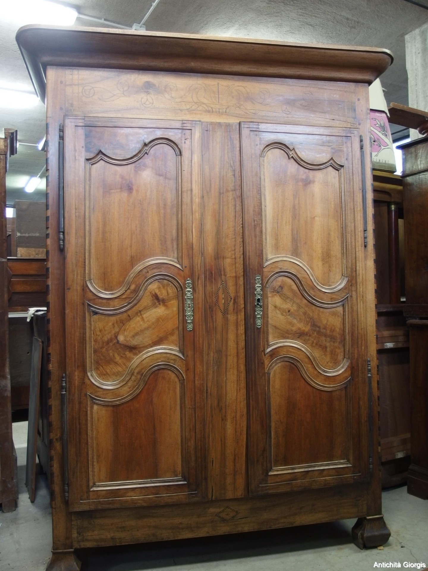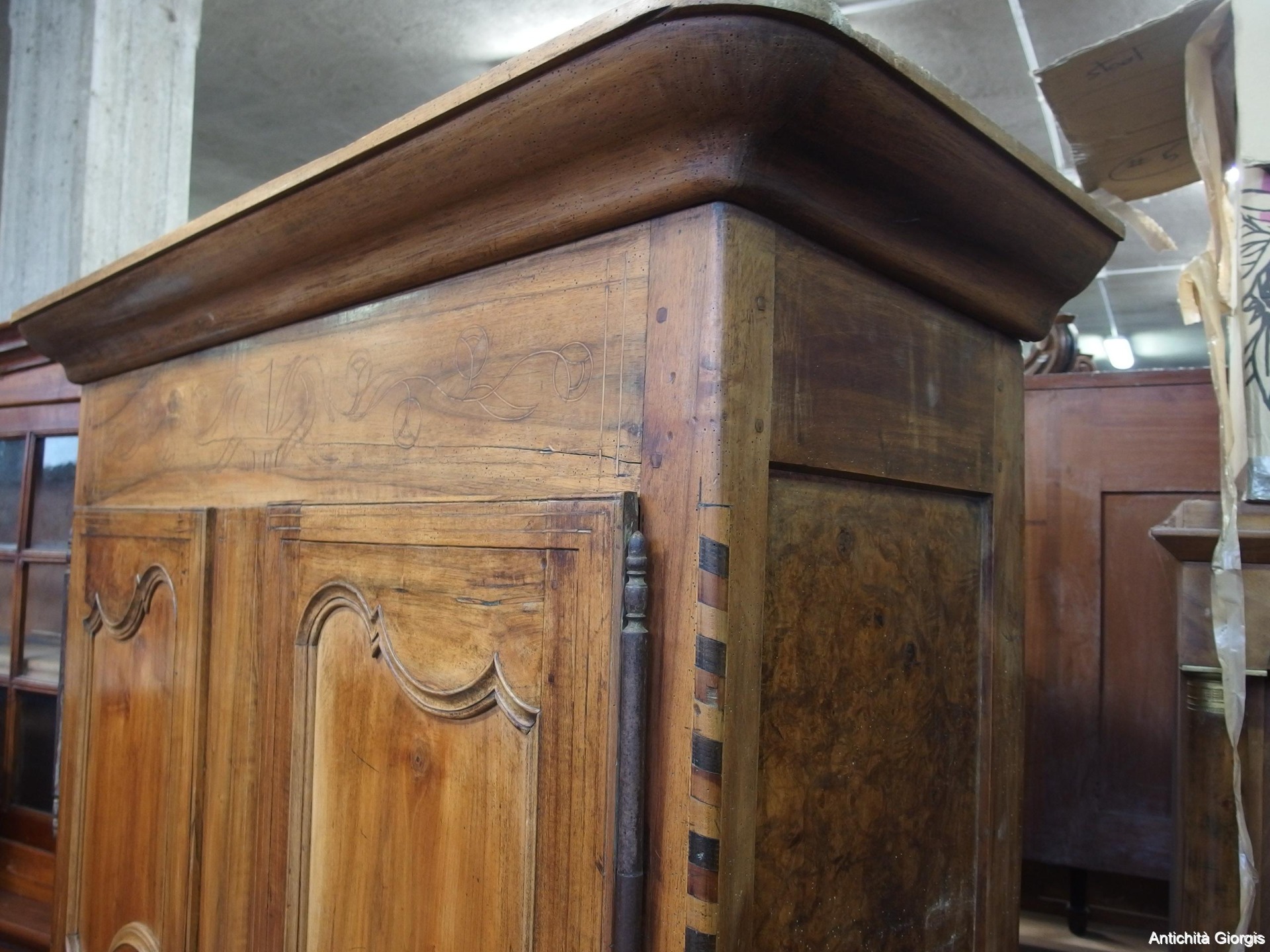 Bellissimo armadio in legno di noce con filettature a due porte stile provenzale di epoca primi 800 provenienza francese.
