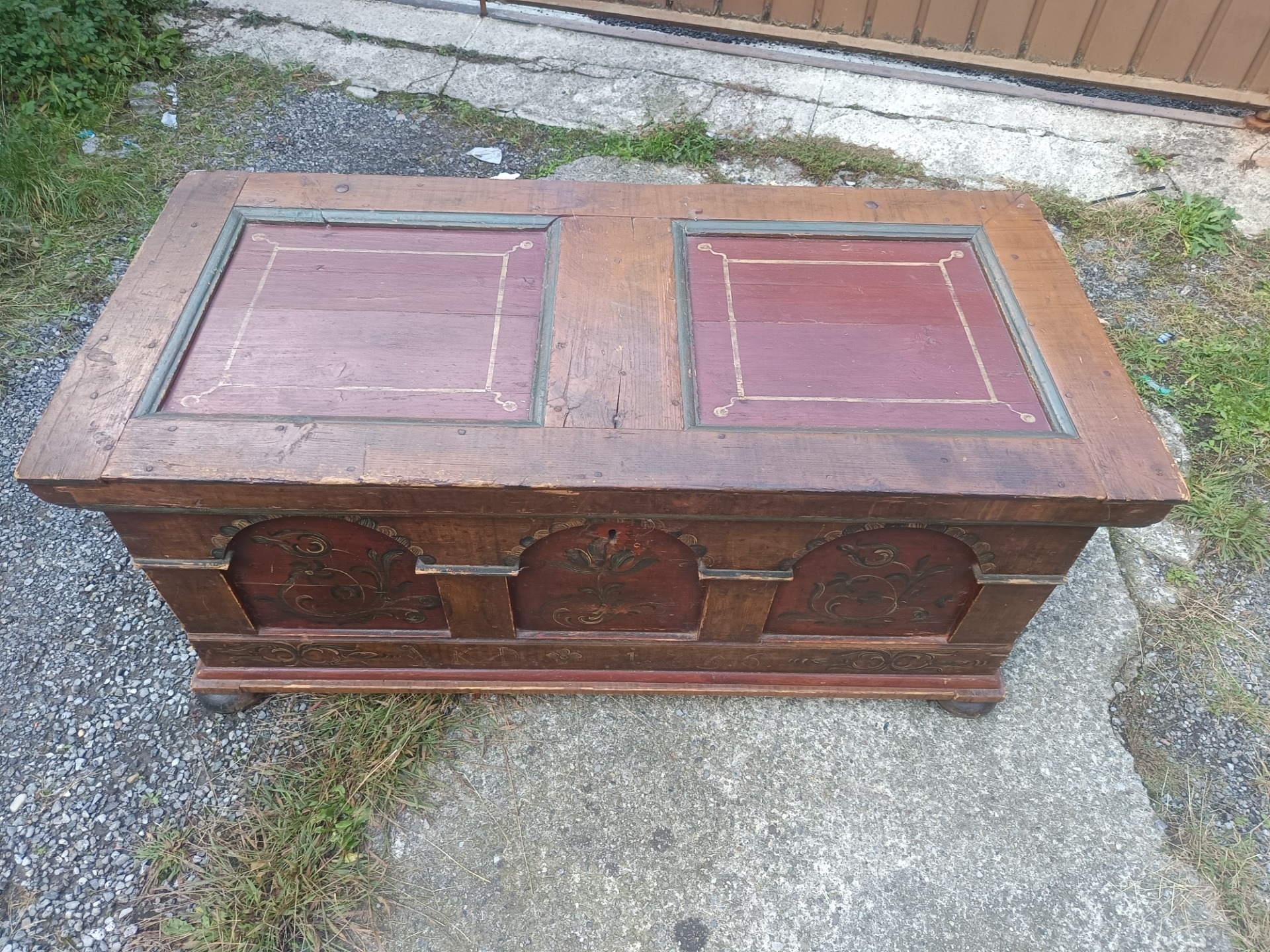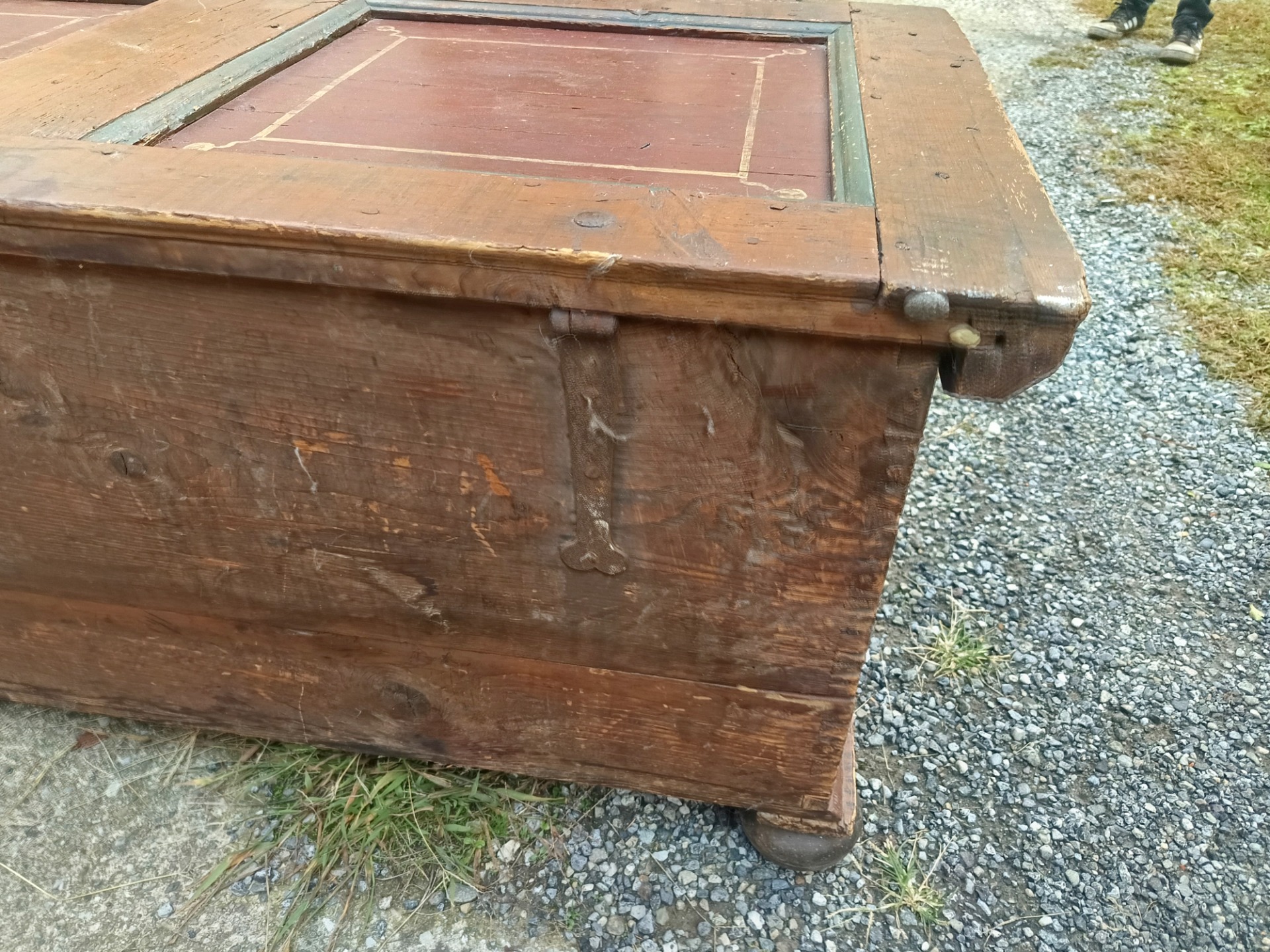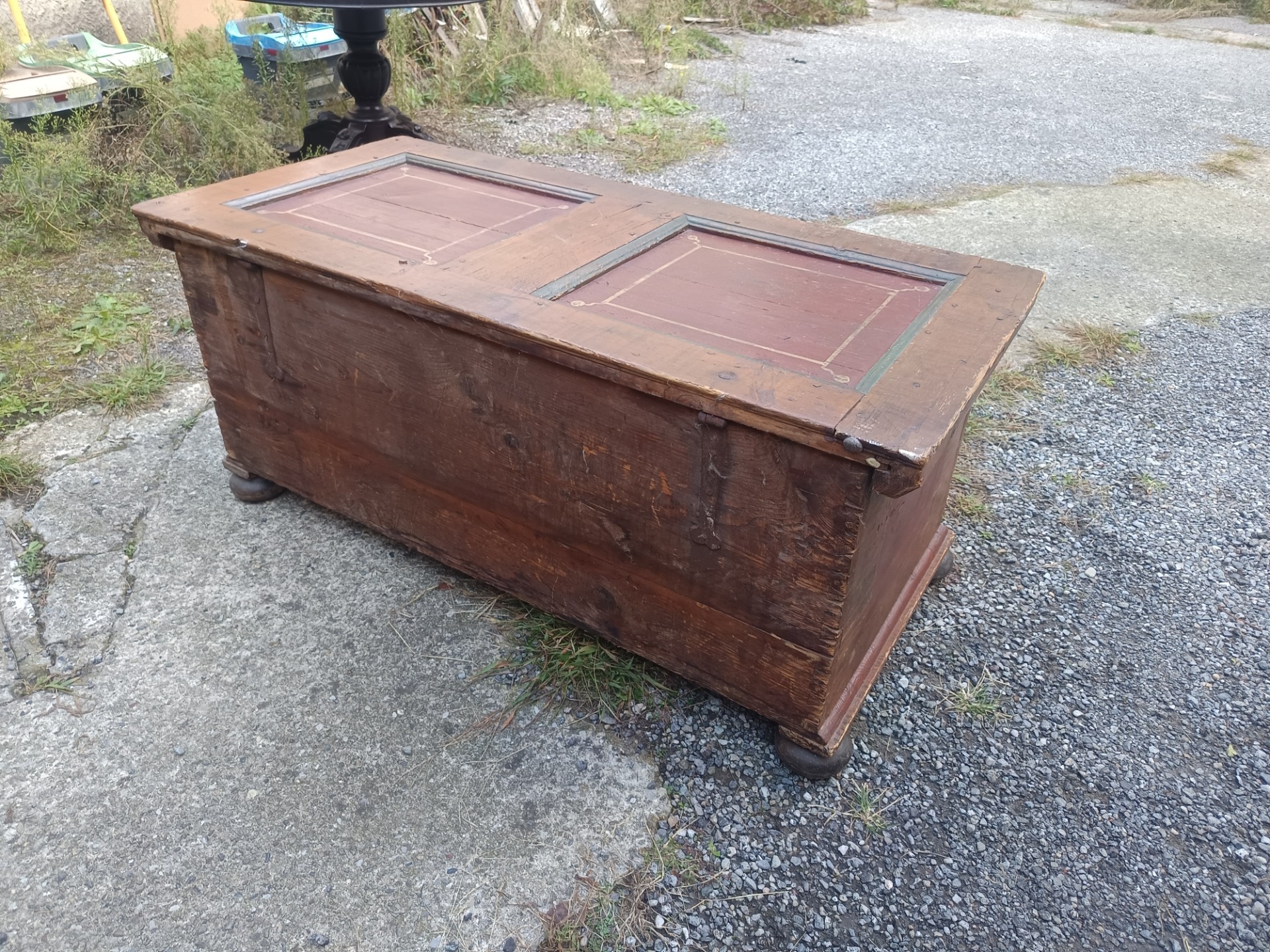Cassapanca o baule nuziale in larice della metà dell'ottocento. Il mobile è in ottime condizioni.Misura cm.130 x 62 x 57 di h.