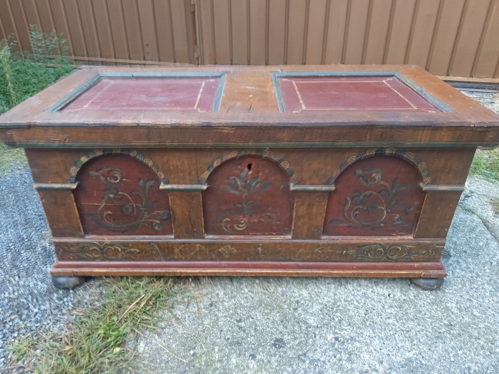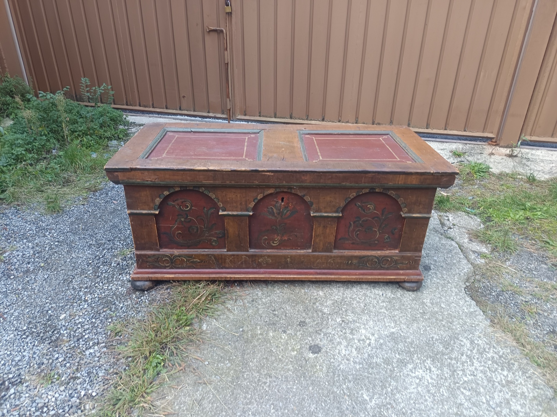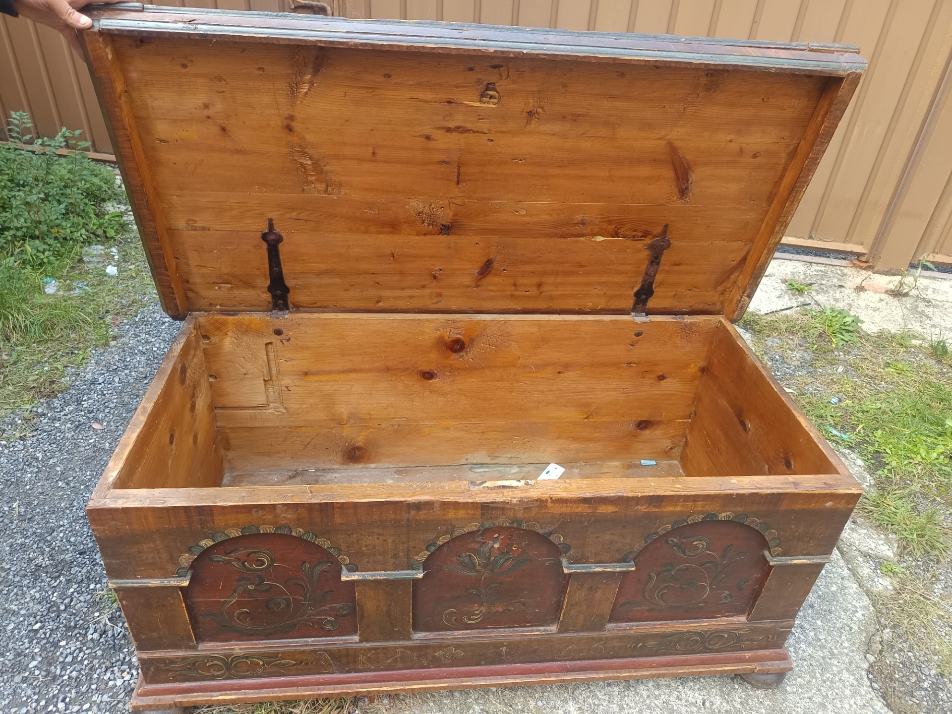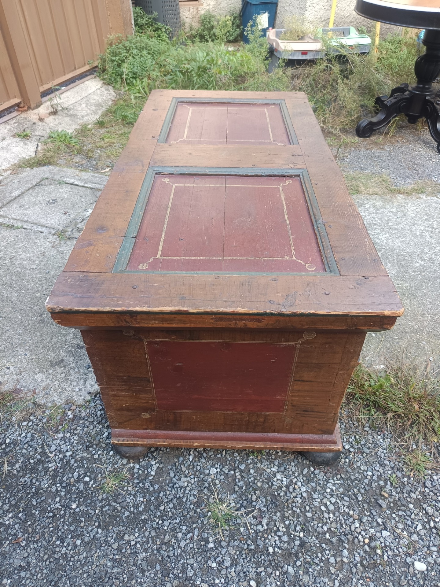 Cassapanca o baule nuziale in larice della metà dell'ottocento. Il mobile è in ottime condizioni.Misura cm.130 x 62 x 57 di h.