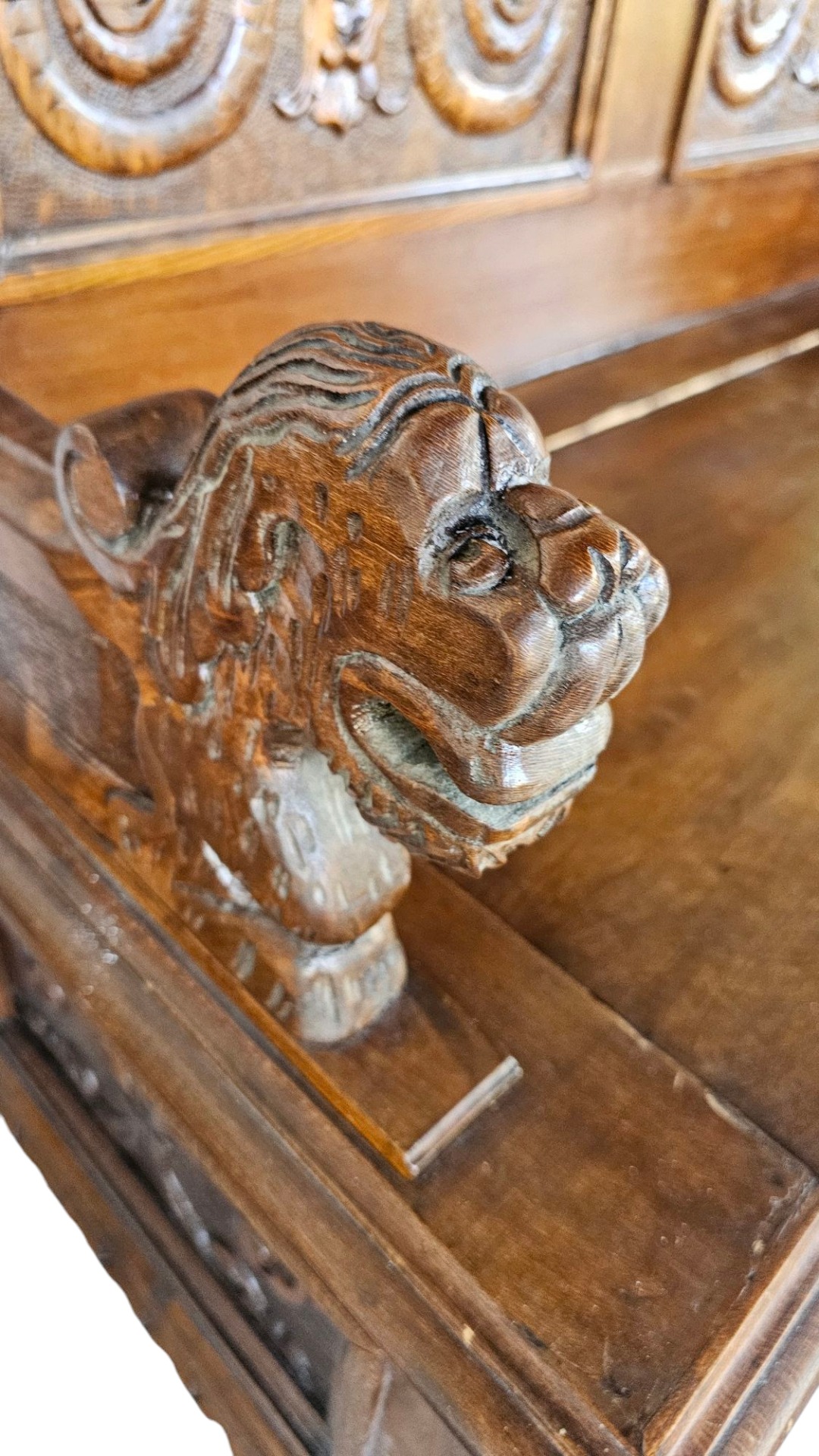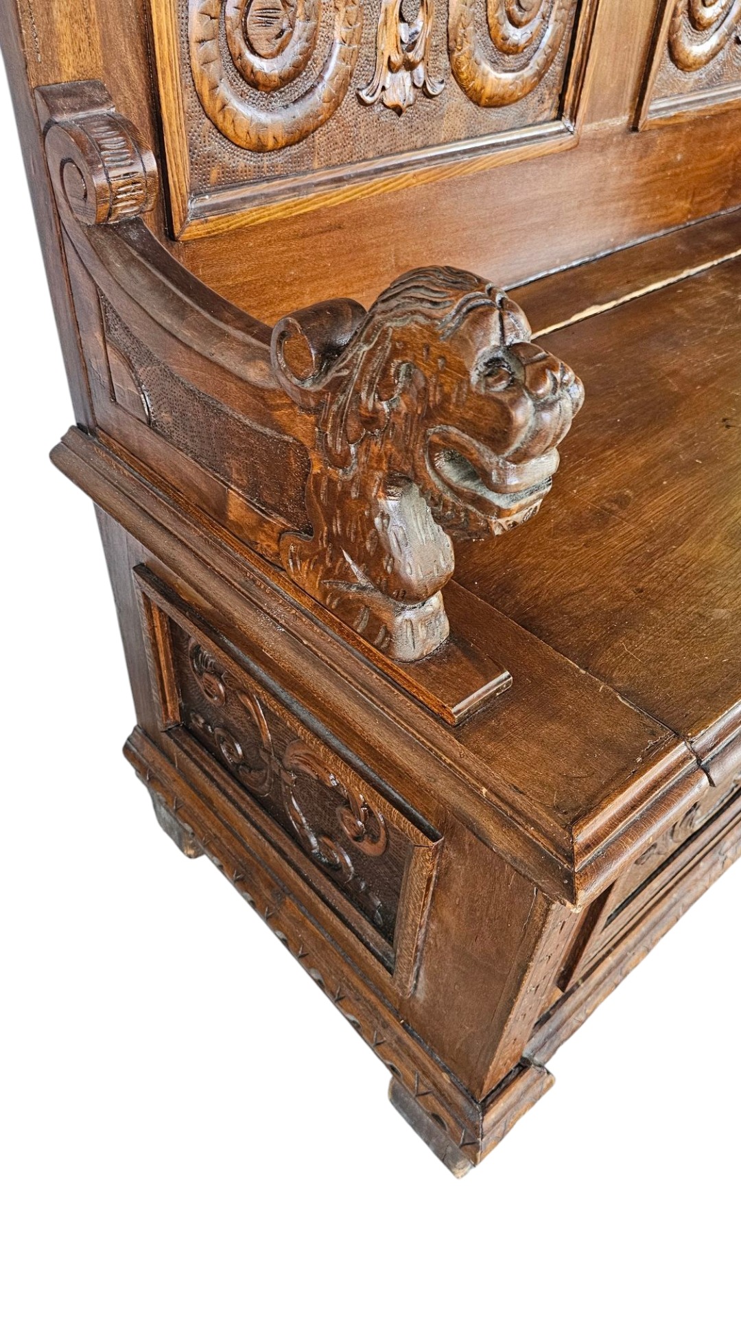 Panca rinascimento in noce con intagli epoca primi 900 mis 110x45 h 160