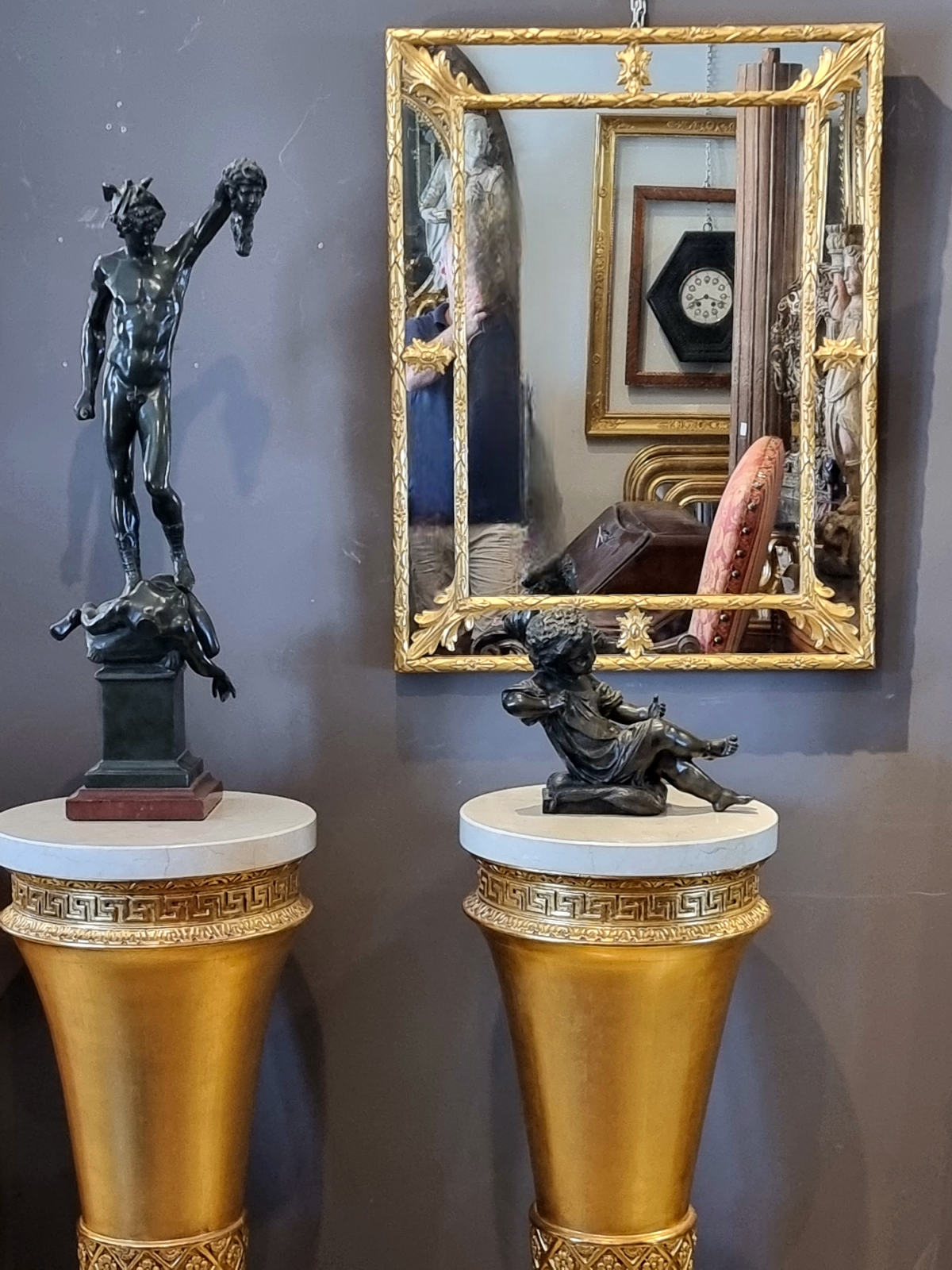 Coppia di colonne dorate in stile Impero – Italia, anni '80