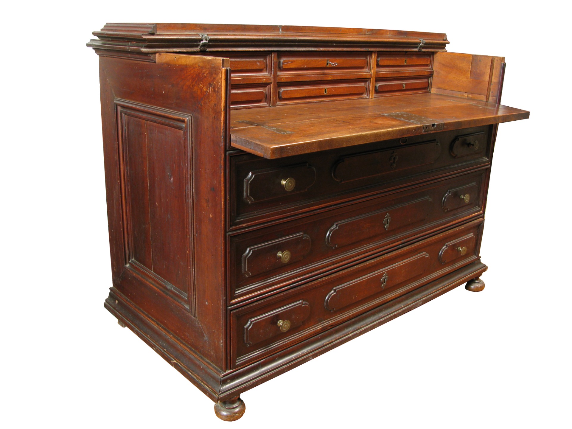 This type of chest of drawers, undoubtedly the most precious of the period, were often used as writing desks.