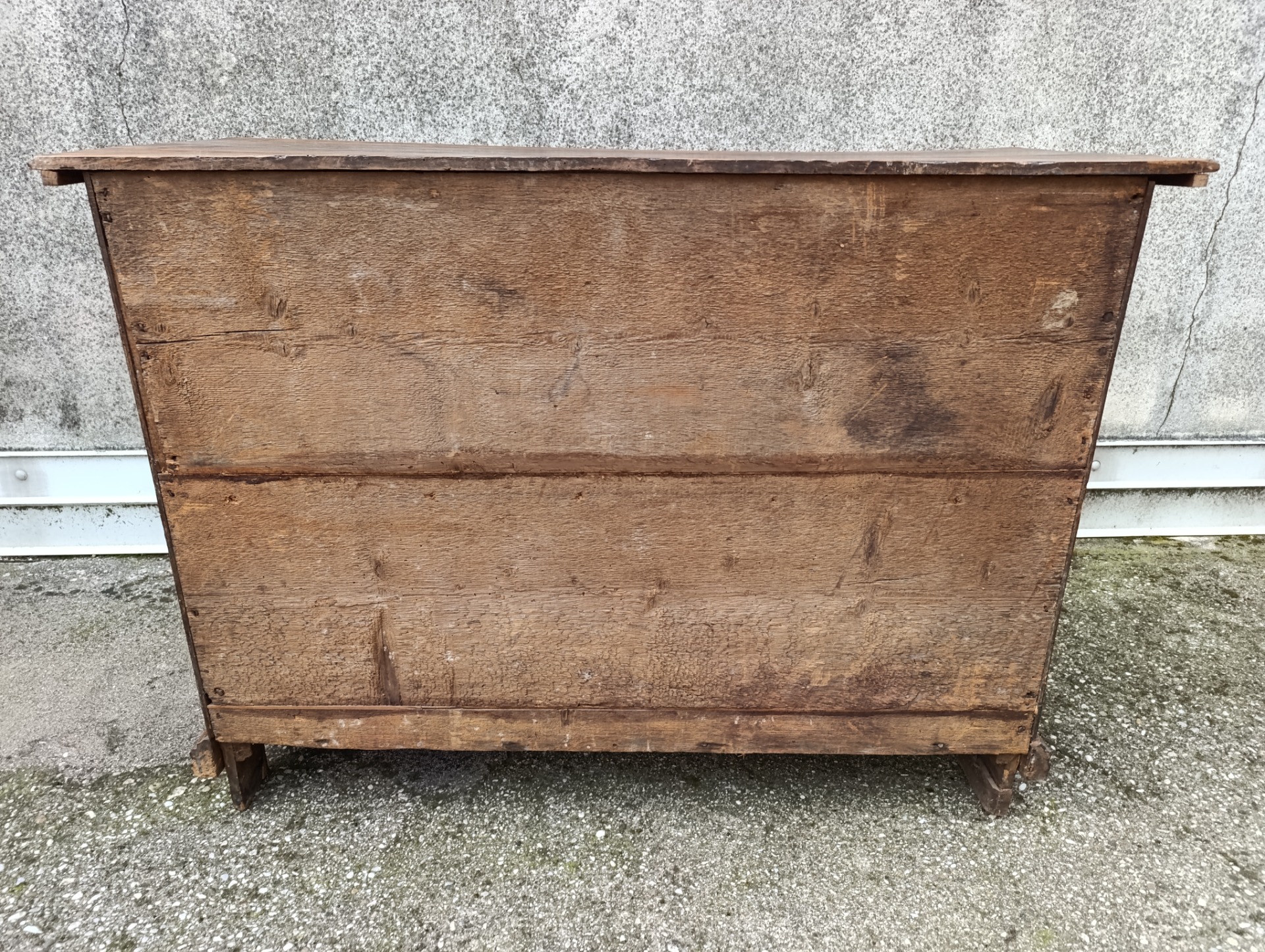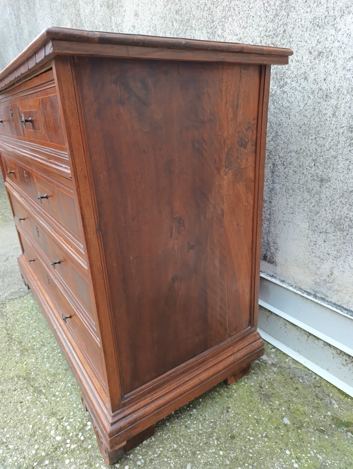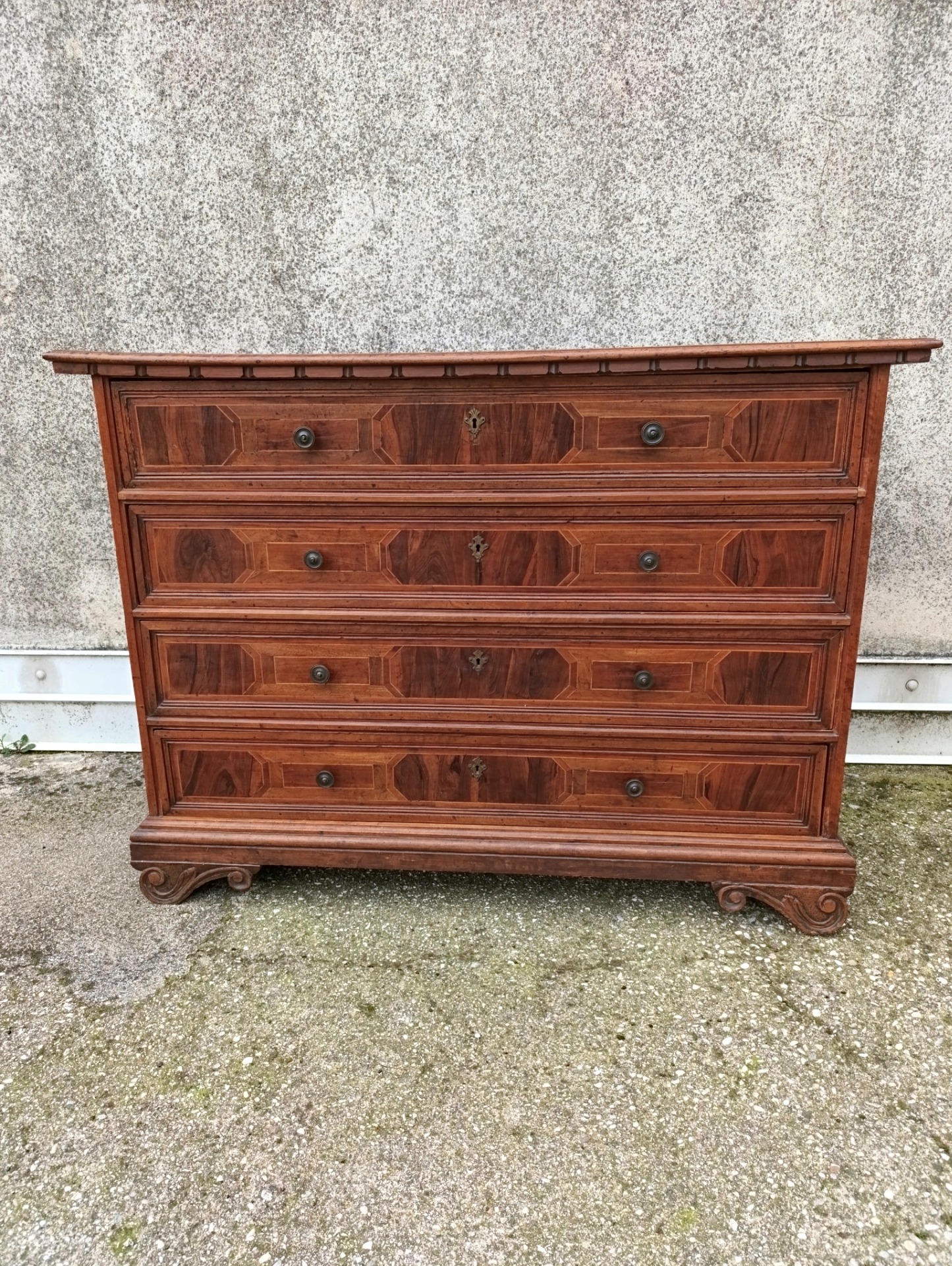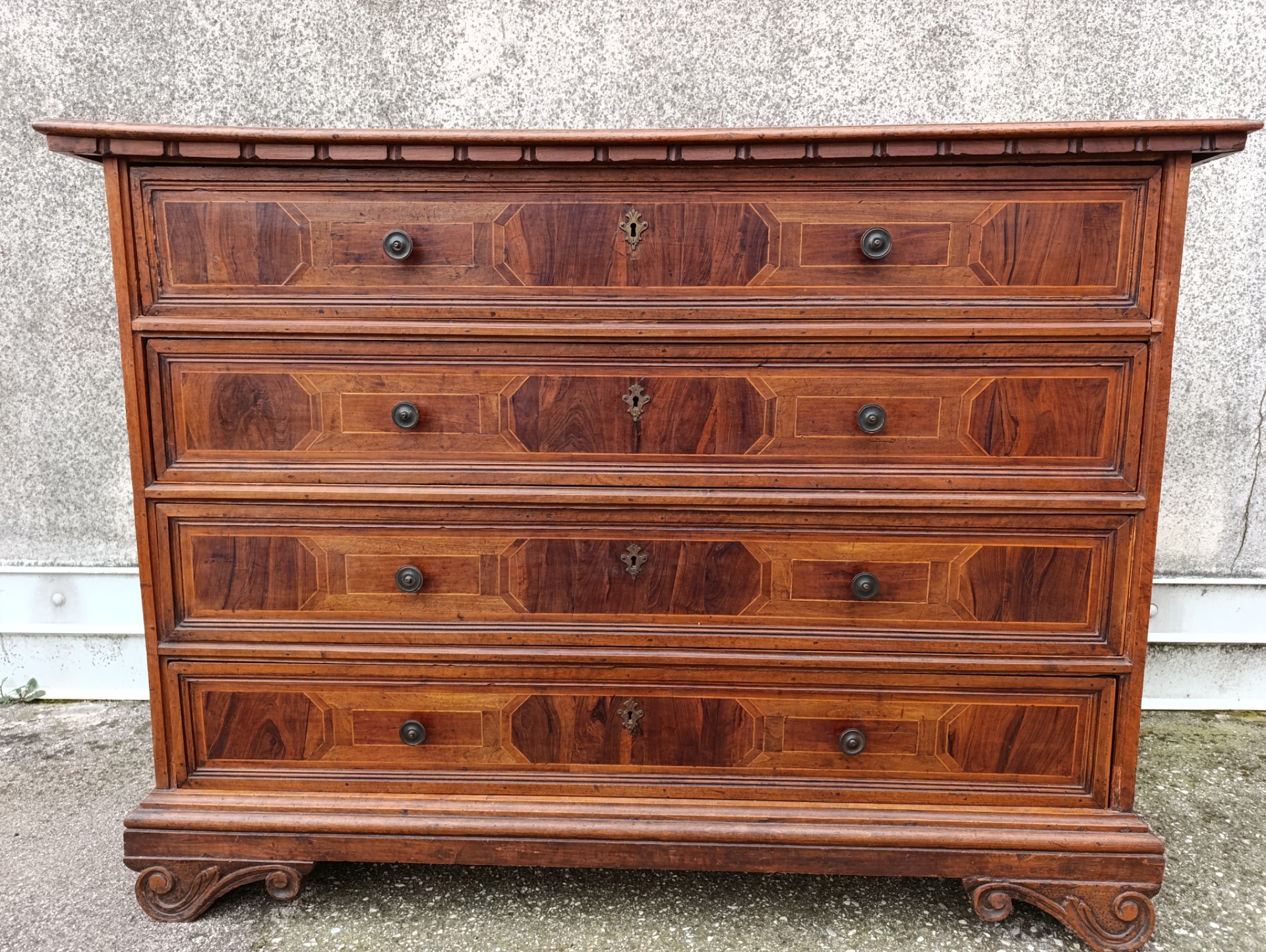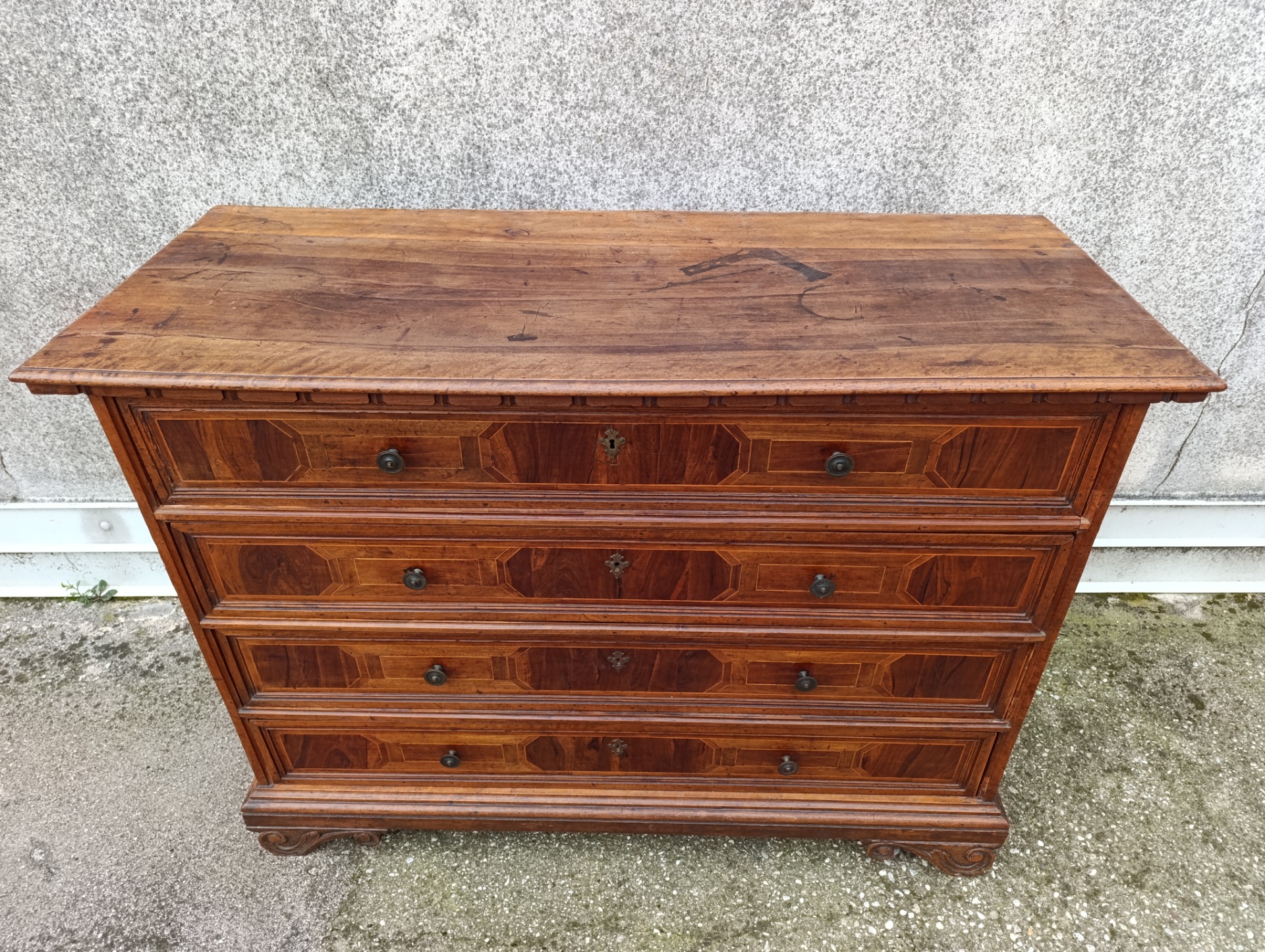 Canterano veronese epoca Luigi XIV in noce con filettatura in acero.Interventi di restauro dovuti all'epoca.