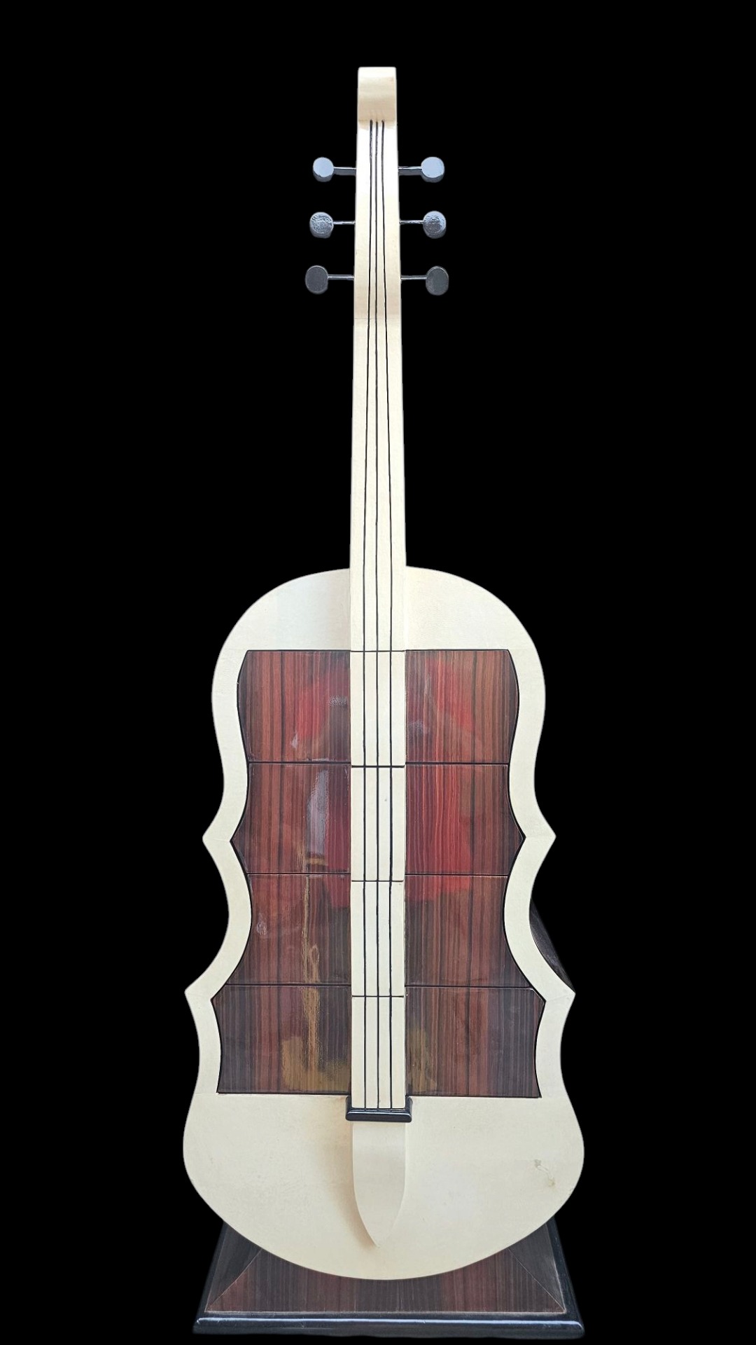 Cassettiera a Forma di violoncello. Con cassetti. Essenza. Pergamena è palissandro. Mobile stupendo. Misura larghezza 50 profondità 40 altezza 1 e. Quaranta