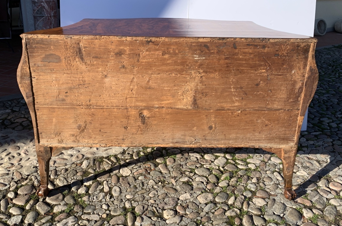 Cassettone bombato lastronato in noce e radica di noce. Veneto, XVIII sec. 140 x 68 x h 95 cm. Interamente lastronato in noce e radica di noce e filettato in bois de rose. Piano sagomato, fronte e fianchi mossi con maniglie in bronzo dorato. Piedini ad artiglio reggente una sfera. - Tutte le spedizioni in UE sono gratuite ed imballate professionalmente. - Ogni articolo viene venduto con certificato di autenticità con validità legale. - Ulteriori approfondimenti sul condition report sono disponibili su richiesta. - Viezzi Arte garantisce qualità e professionalità a prezzi competitivi, contattaci su info@viezziarte.it o via What’sApp al +39 3402841279. *Messaggio rivolto agli acquirenti non italiani: Tieni presente che quest'opera non ha ancora ottenuto il certificato di libera esportazione dall'Italia presso la Soprintendenza dei Beni Culturali. Questo documento attesta che l'opera non fa parte del patrimonio culturale italiano. Normalmente i tempi di rilascio degli attestati sono 40 giorni dalla data di appuntamento: La nuova normativa in vigore dal 2021 prevede, per importi dichiarati inferiori a 13.500€, tempi più brevi a discrezione della commissione di esperti. Tutti i costi di questa operazione sono inclusi.