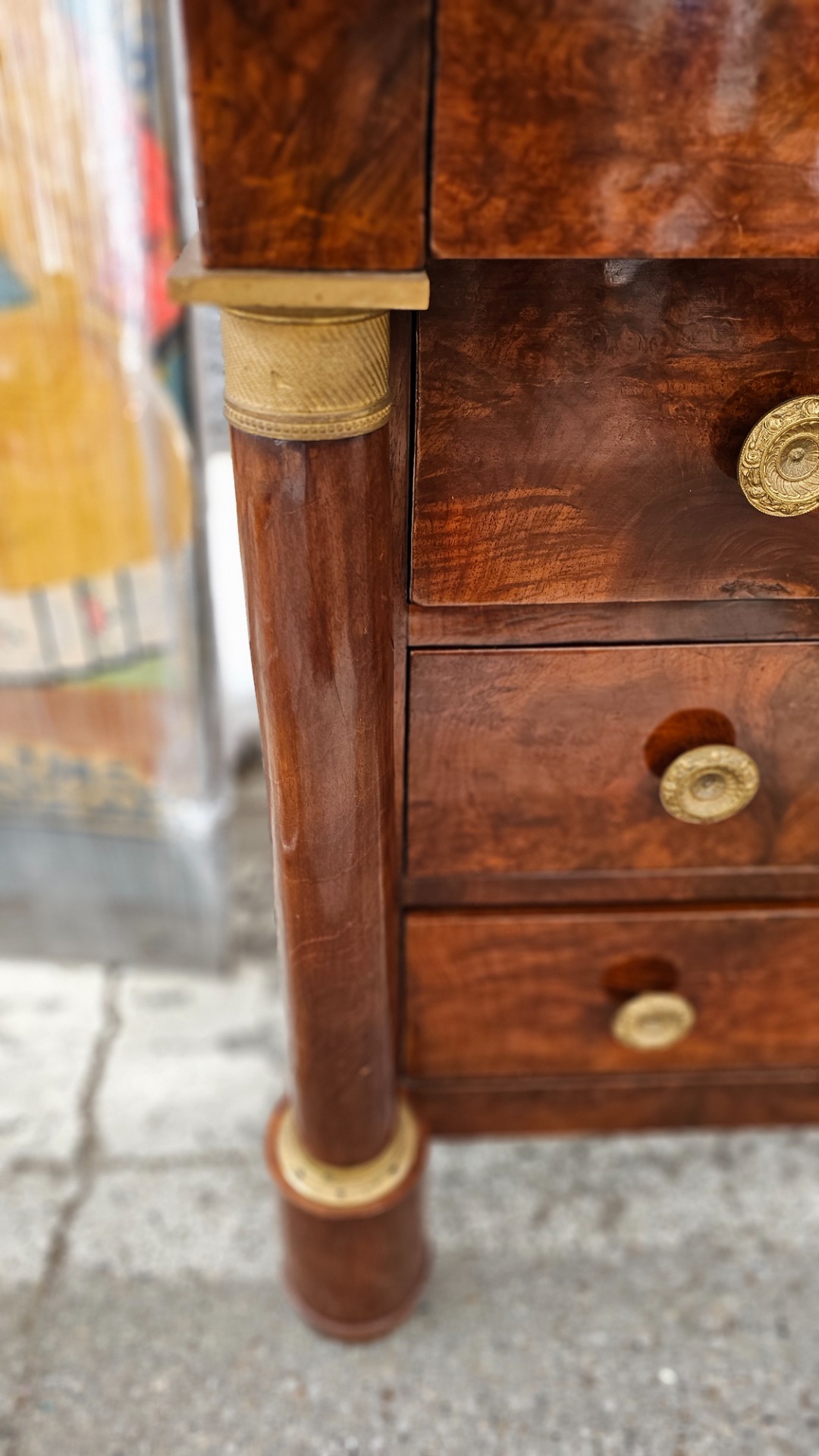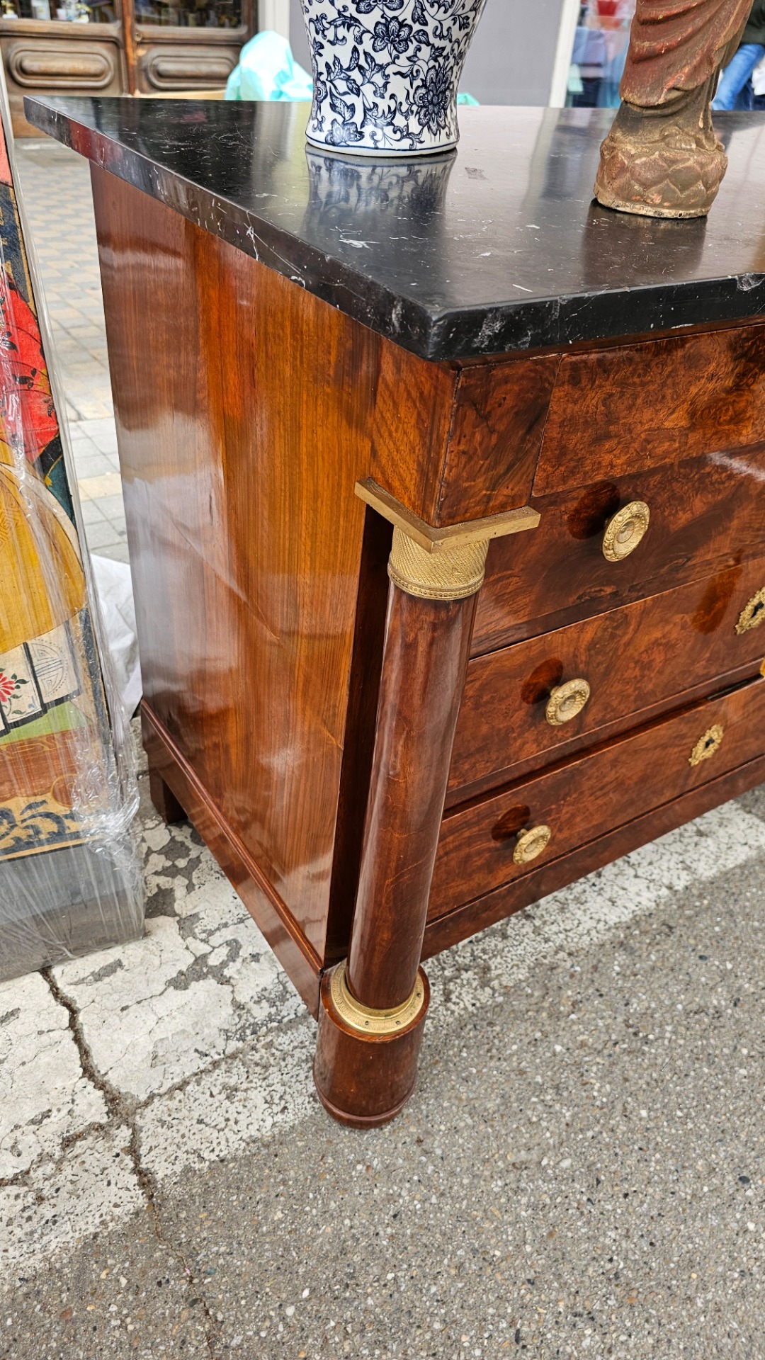 Cassettoni Impero, in radica di noce con bronzi dorati, colonna tornita piena. Piano in marmonero del Belgio. Epoca premio ottocento mobile perfetto. Misura. Larghezza. Centoventi. Profondità sessanta. Altezza Ottantotto