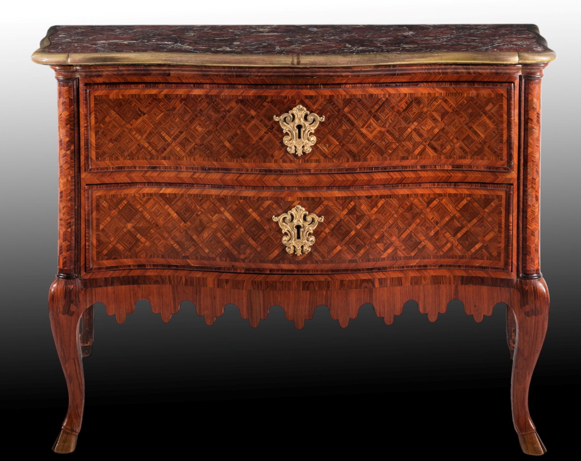 Cassettone intarsiato a marqueterie in legni diversi, Roma, terzo quarto del XVIII secolo