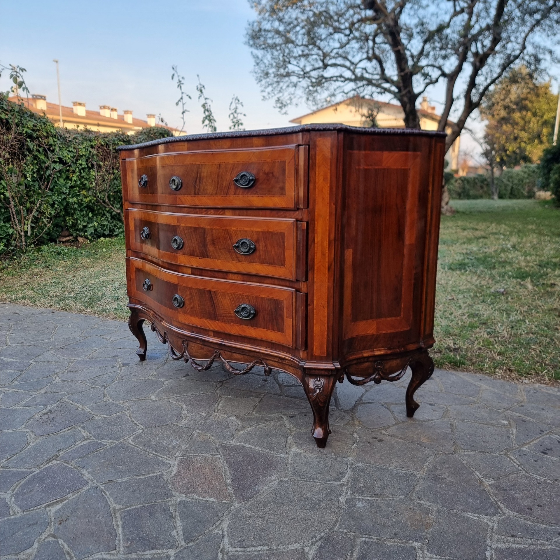 Cassettone Veneziano in Noce dell’800 con Intarsi in Palma