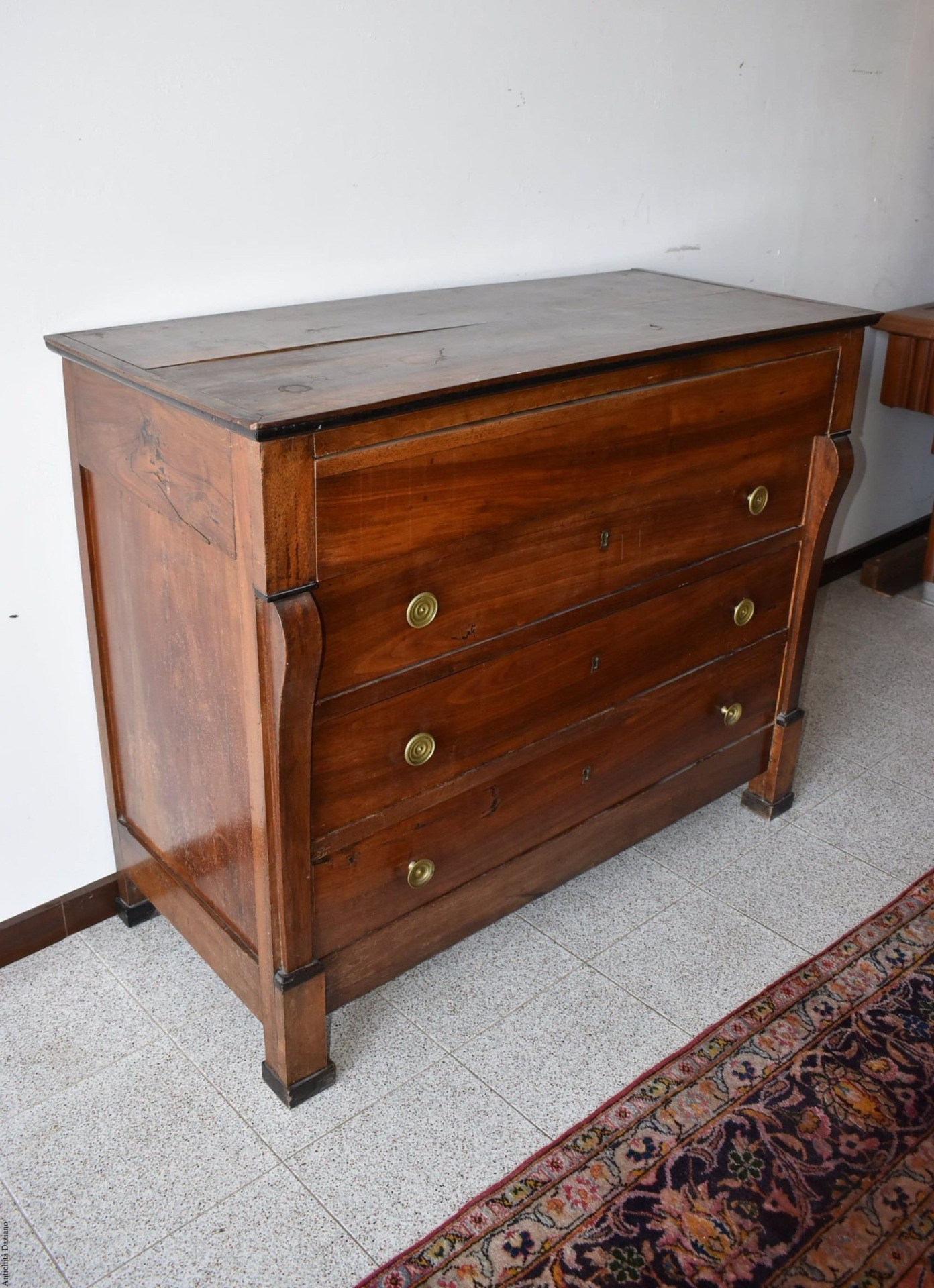 Descrizione: Comò Impero a bretella, in noce. Dimensioni: H 100 cm - Larghezza 123 cm - Profondità 55 cm. Spese di spedizione a carico cliente. Per maggiori informazioni: info@antichitadaziano.com