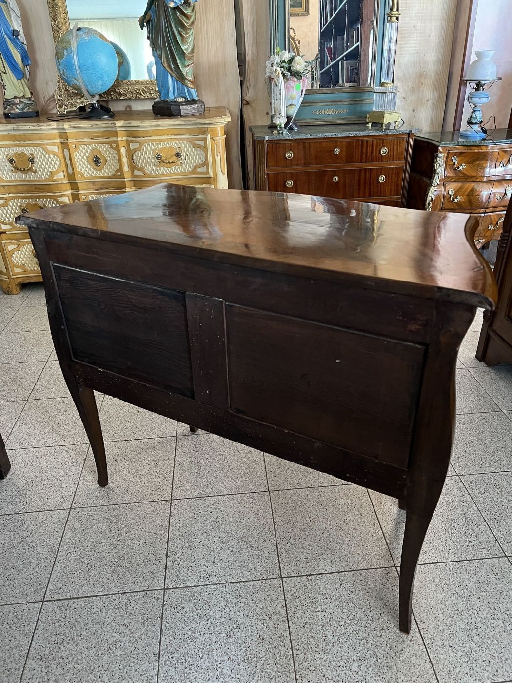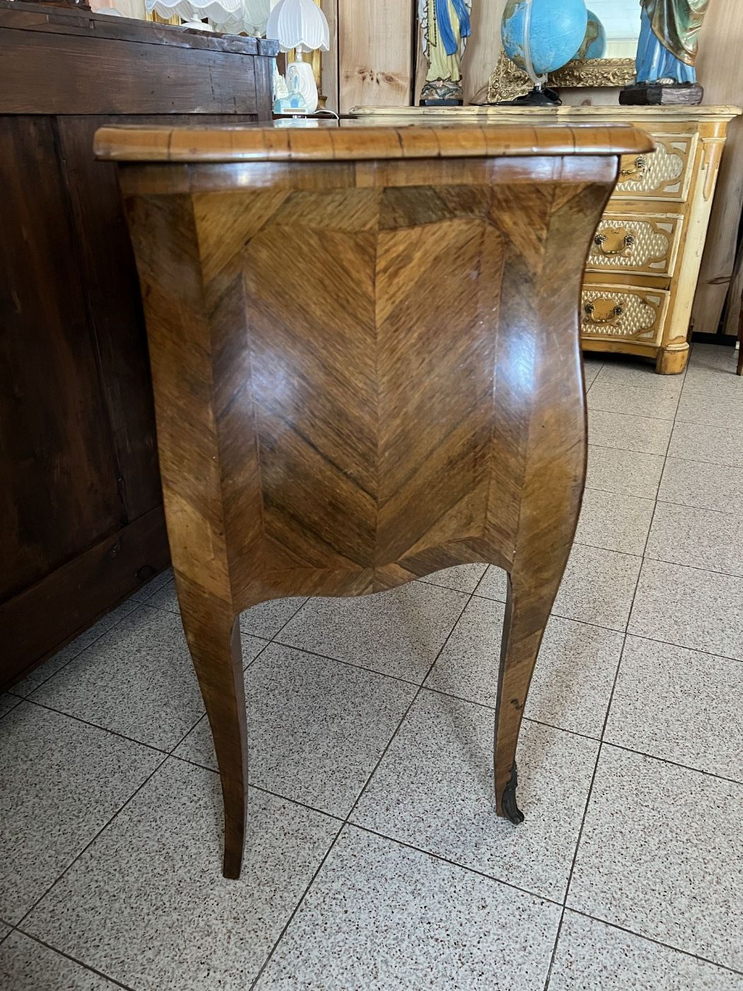Stile Luigi XV, in mogano, con bronzi, restuarato. Dimensioni: L. 106 cm, L. 87 cm parte davati del piano, P. 48 cm, H. 87 cm. Spese di spedizione a carico dell'acquirente.